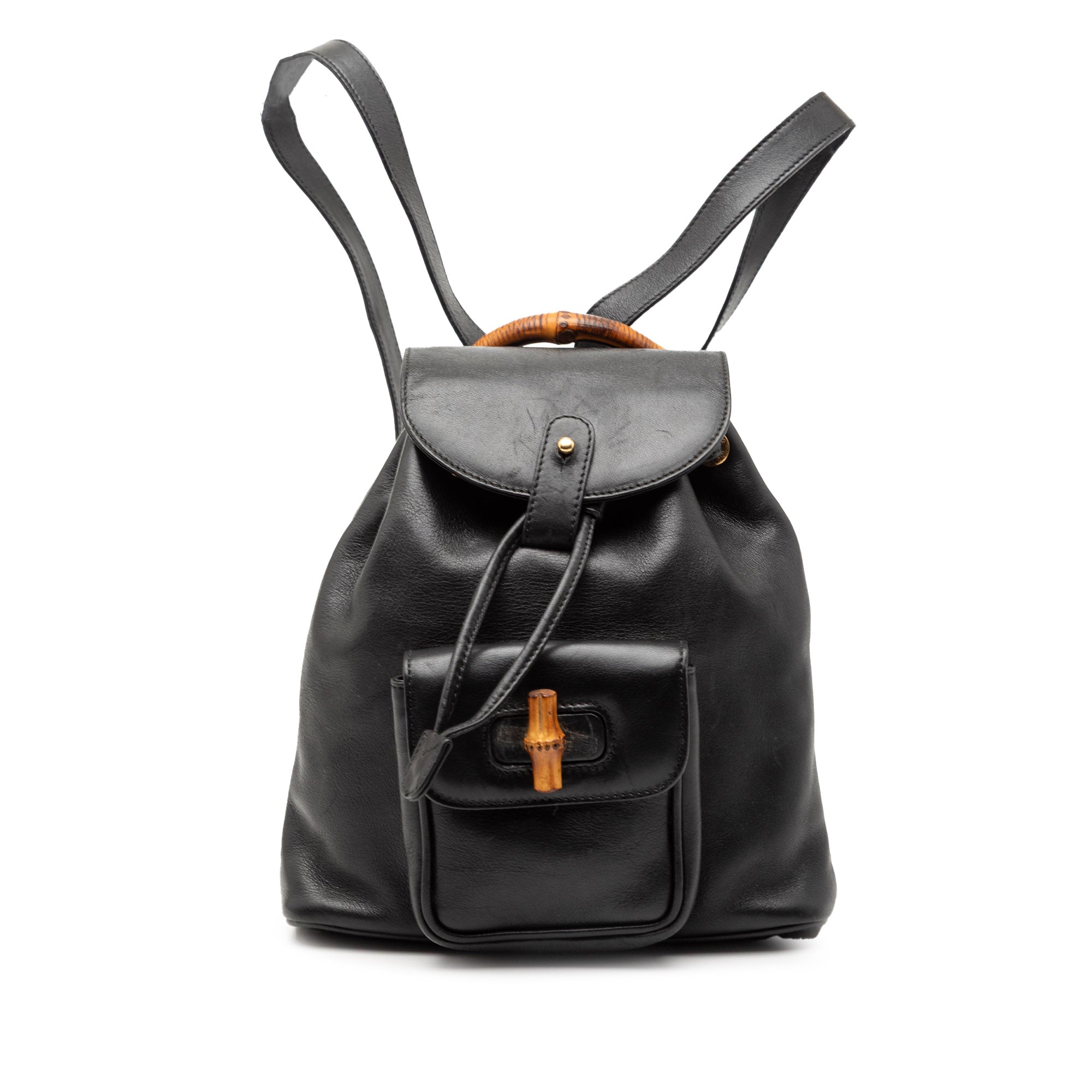 Please note this is a pre-owned item that may display signs of wear consistent with the condition listed above and shown in photos. Designer Revival guarantees this is an authentic Black Gucci Leather Bamboo Backpack or 100% of your money back. Learn more about our authentication process.