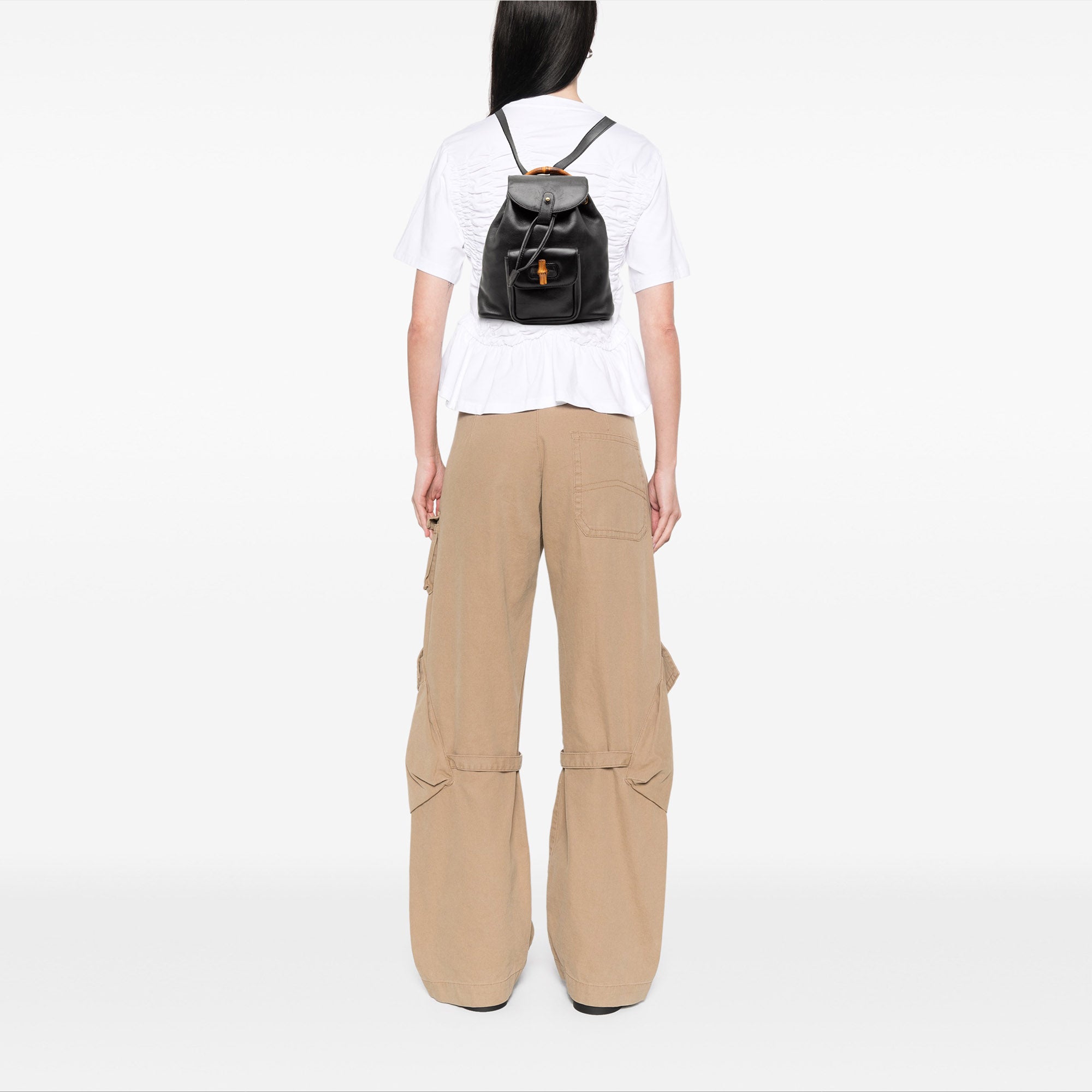 Black Gucci Leather Bamboo Backpack