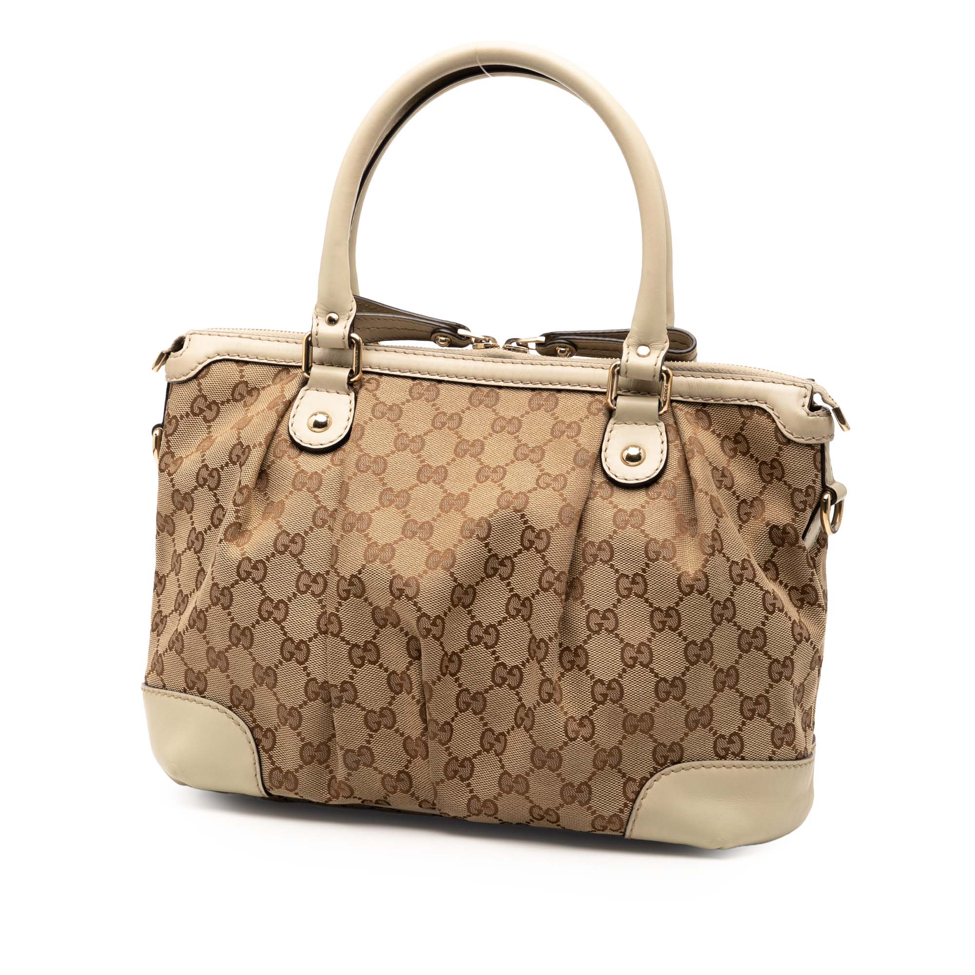 Please note this is a pre-owned item that may display signs of wear consistent with the condition listed above and shown in photos. Designer Revival guarantees this is an authentic Brown Gucci GG Canvas Sukey Satchel or 100% of your money back. Learn more about our authentication process.