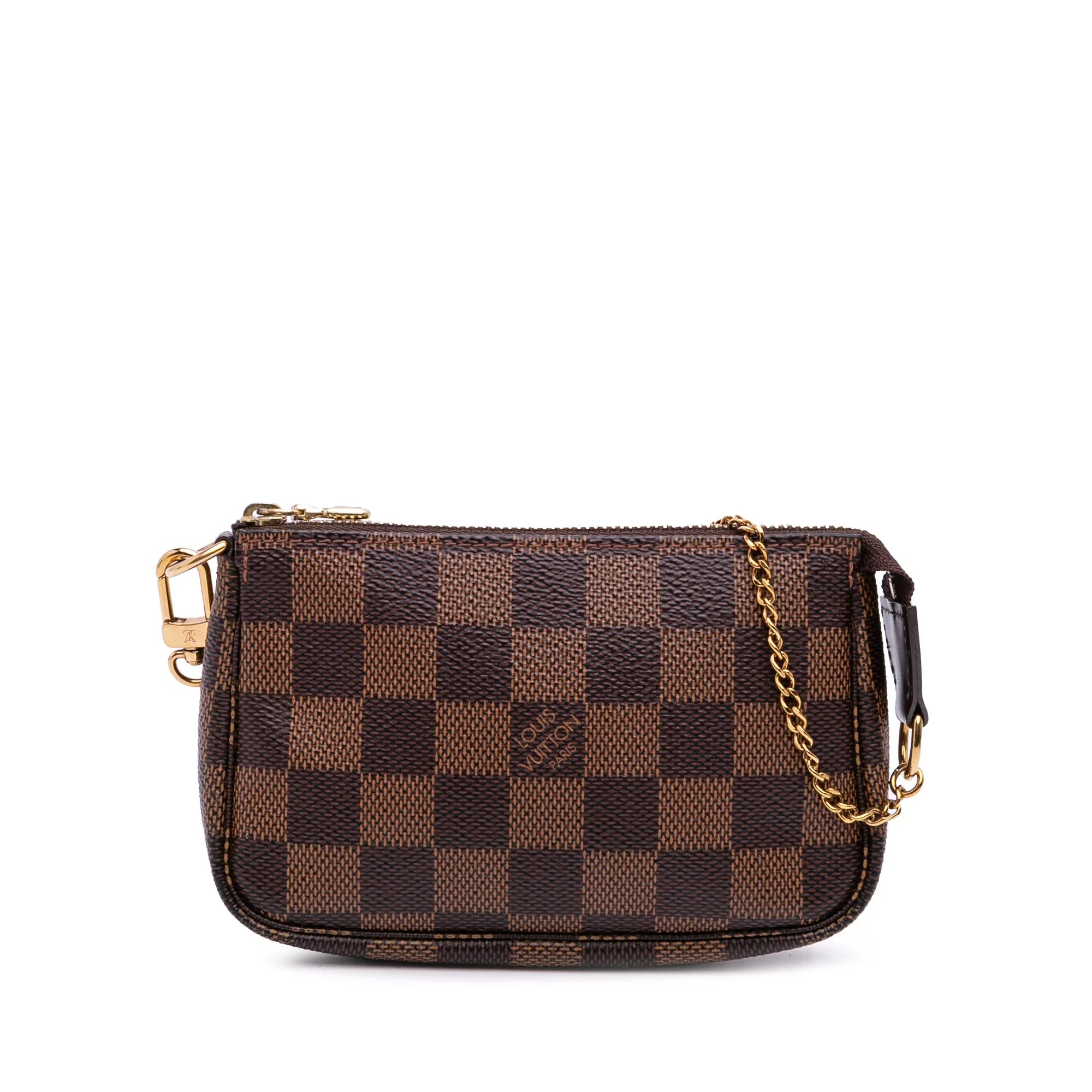 Brown Louis Vuitton Damier Ebene Mini Pochette Accessoires Handbag - Designer Revival Brown Louis Vuitton Damier Ebene Mini Pochette Accessoires Handbag - Designer Revival