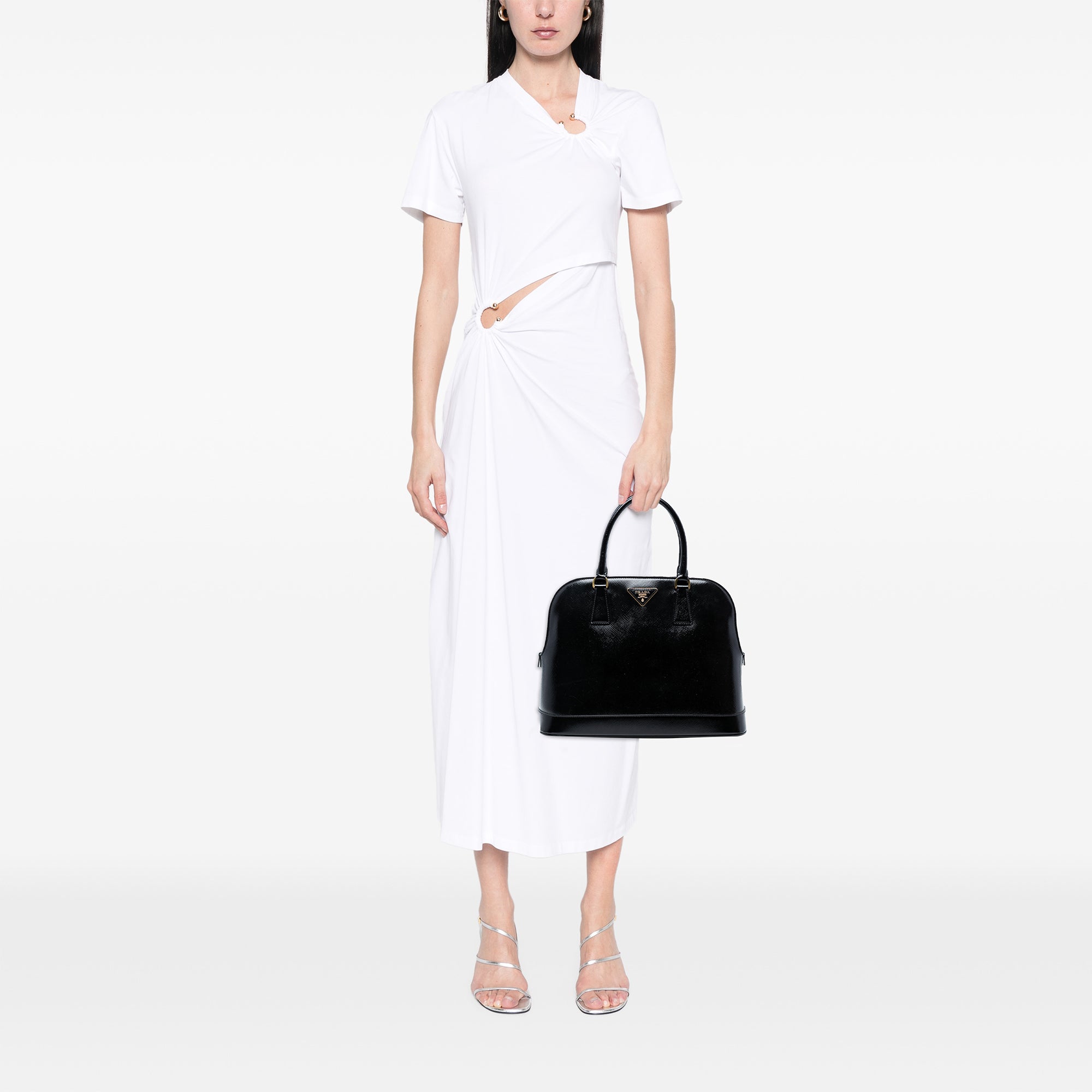 Black Prada Saffiano Vernice Promenade Dome Satchel