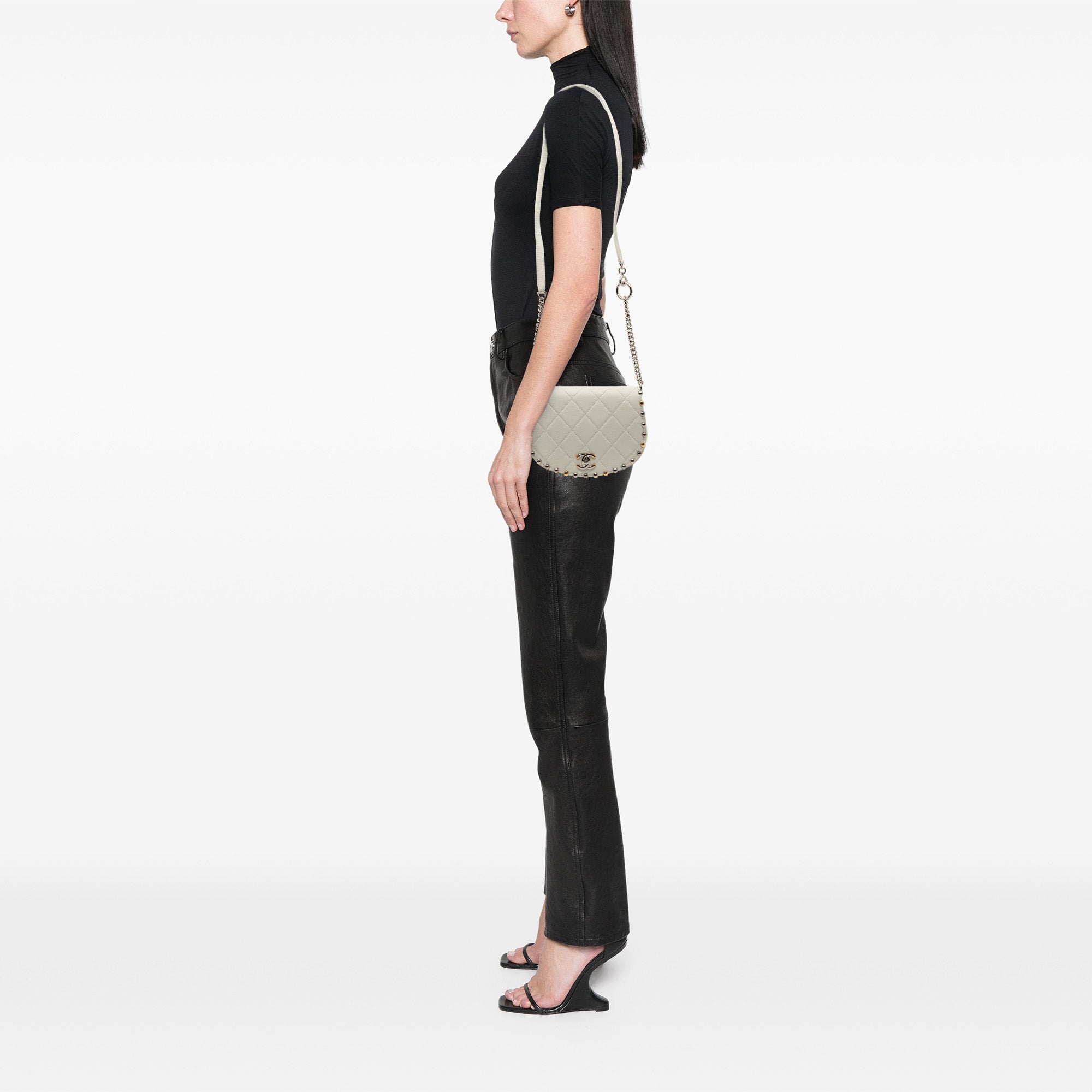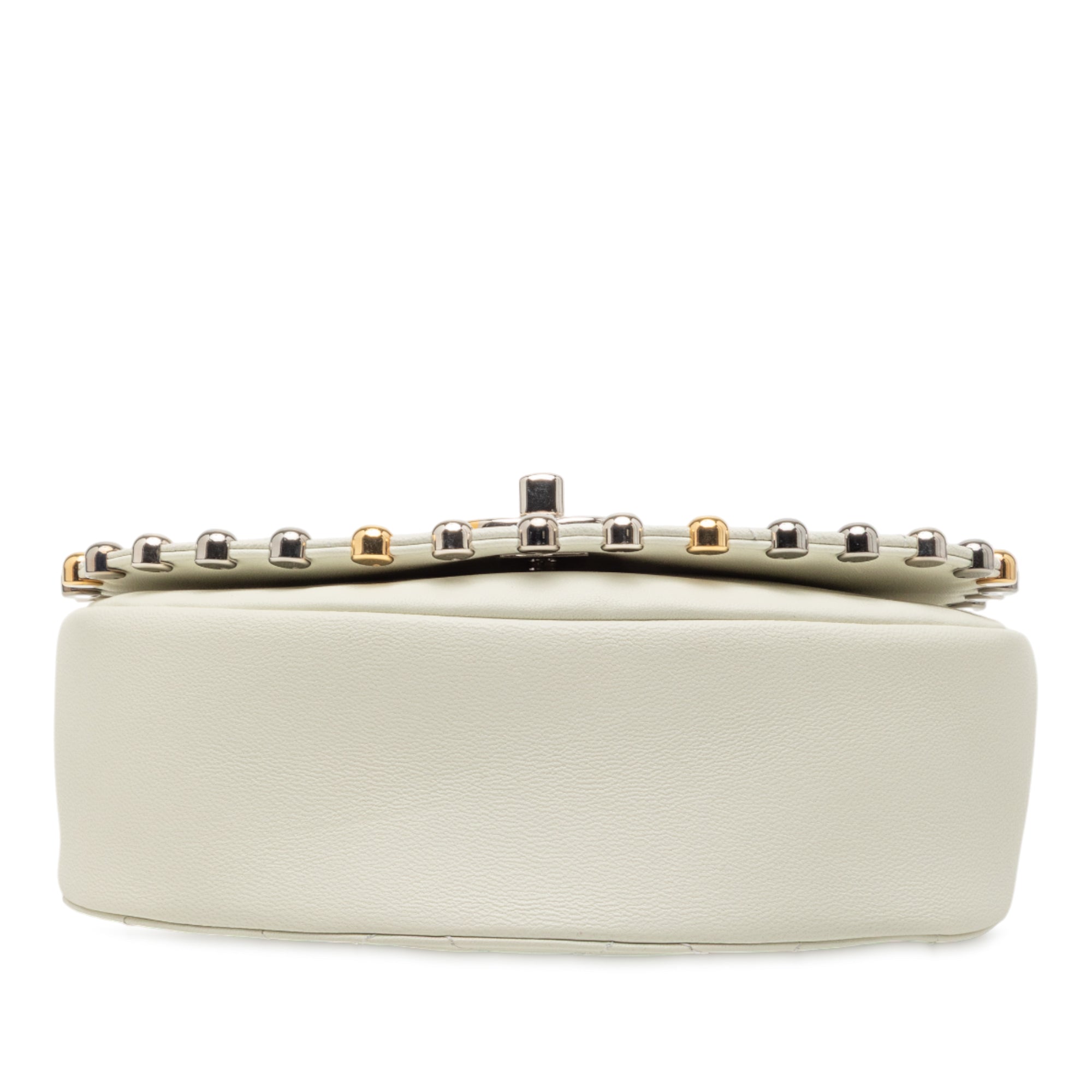 White Chanel Small Quilted Lambskin Studded Bubble Flap Crossbody Bag