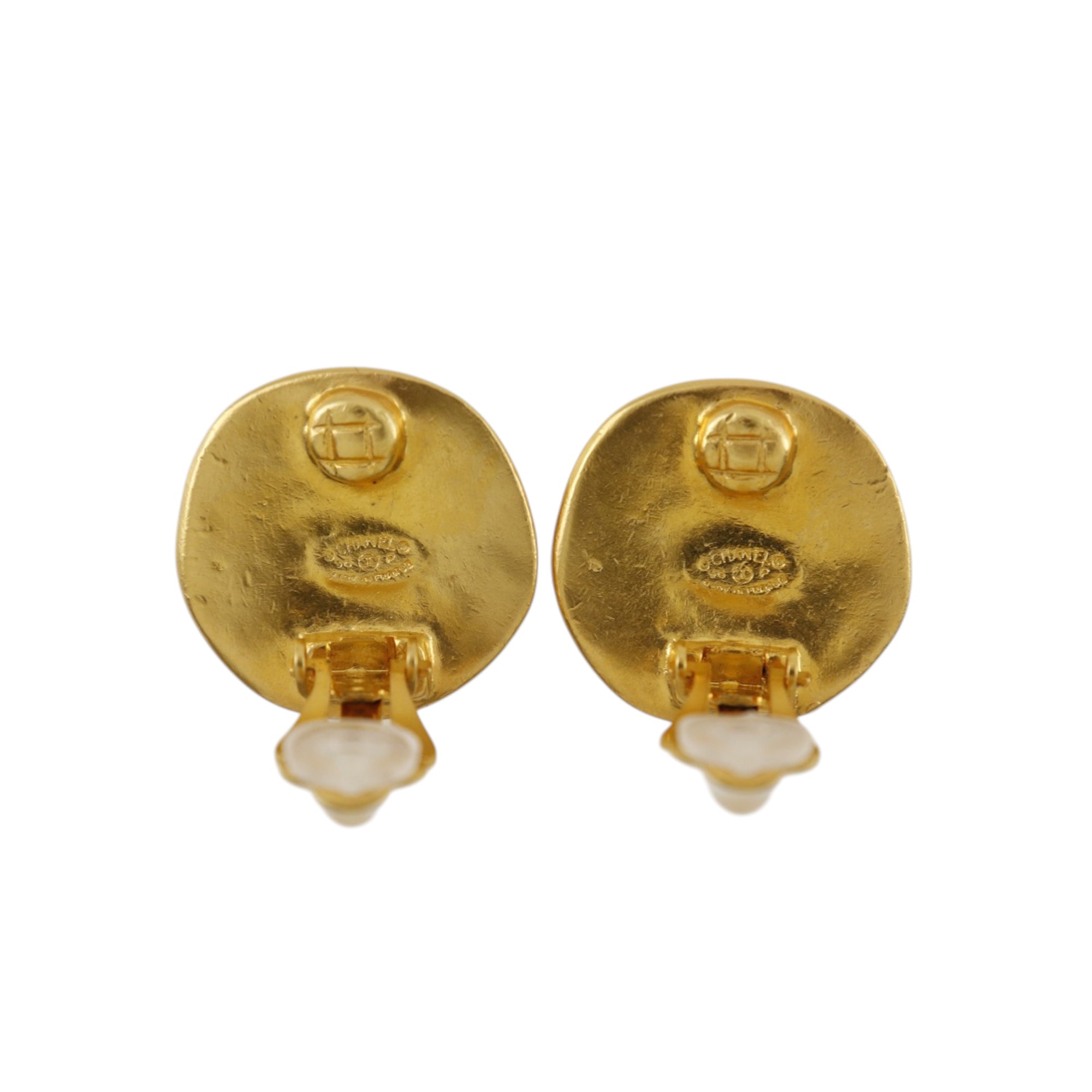 Gold Chanel CC Gold Plated Round Clip On Earrings