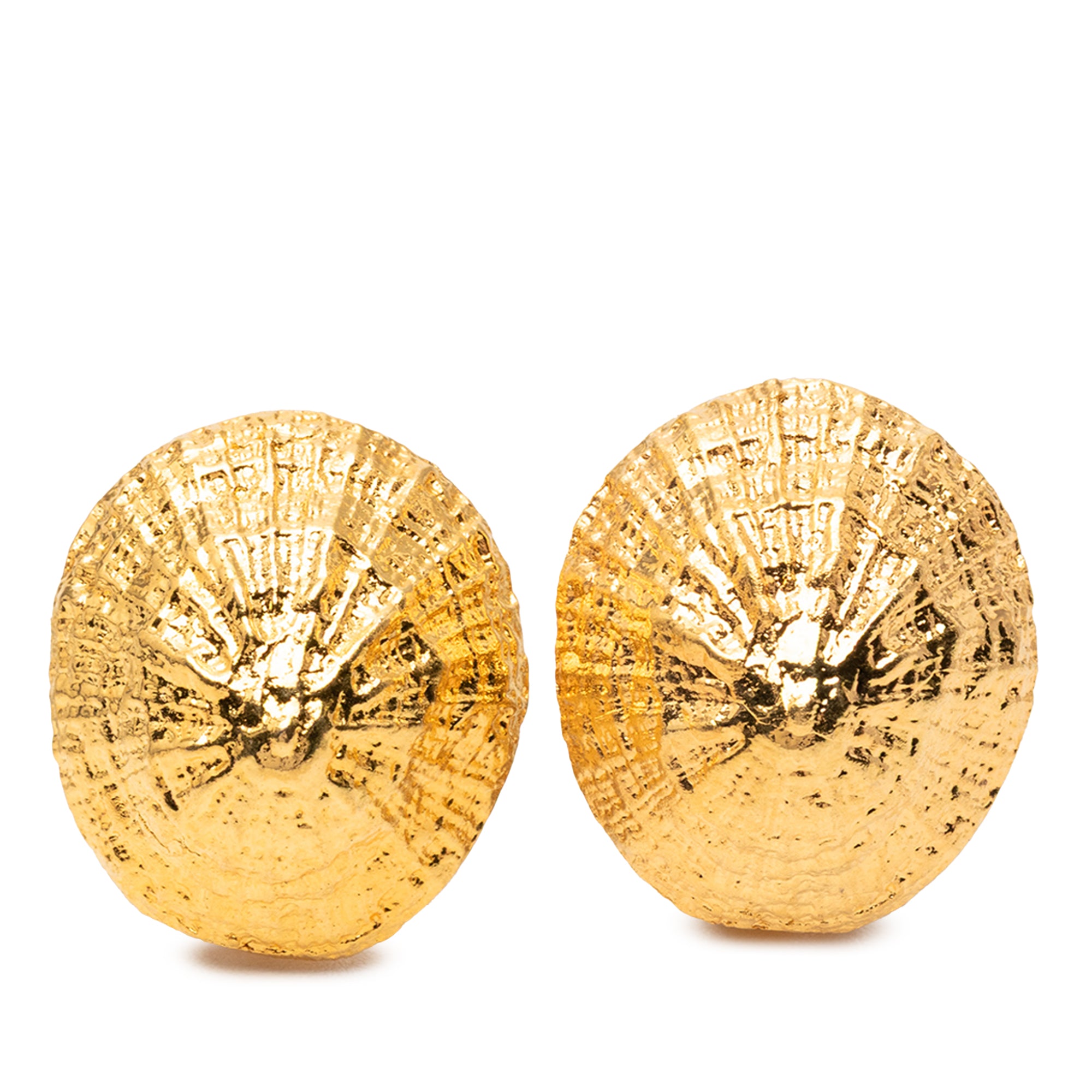 Gold Hermès Gold Plated Shell Shaped Clip On Earrings
