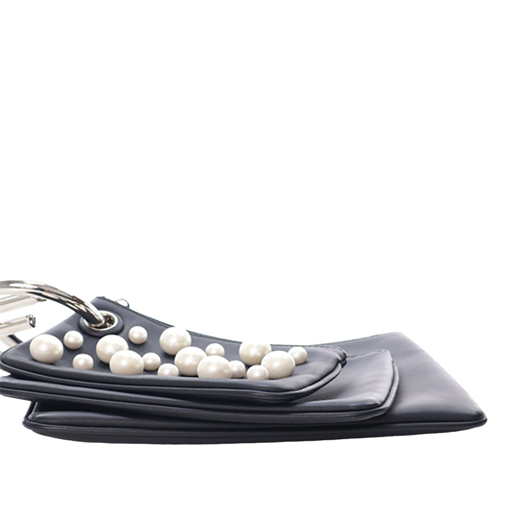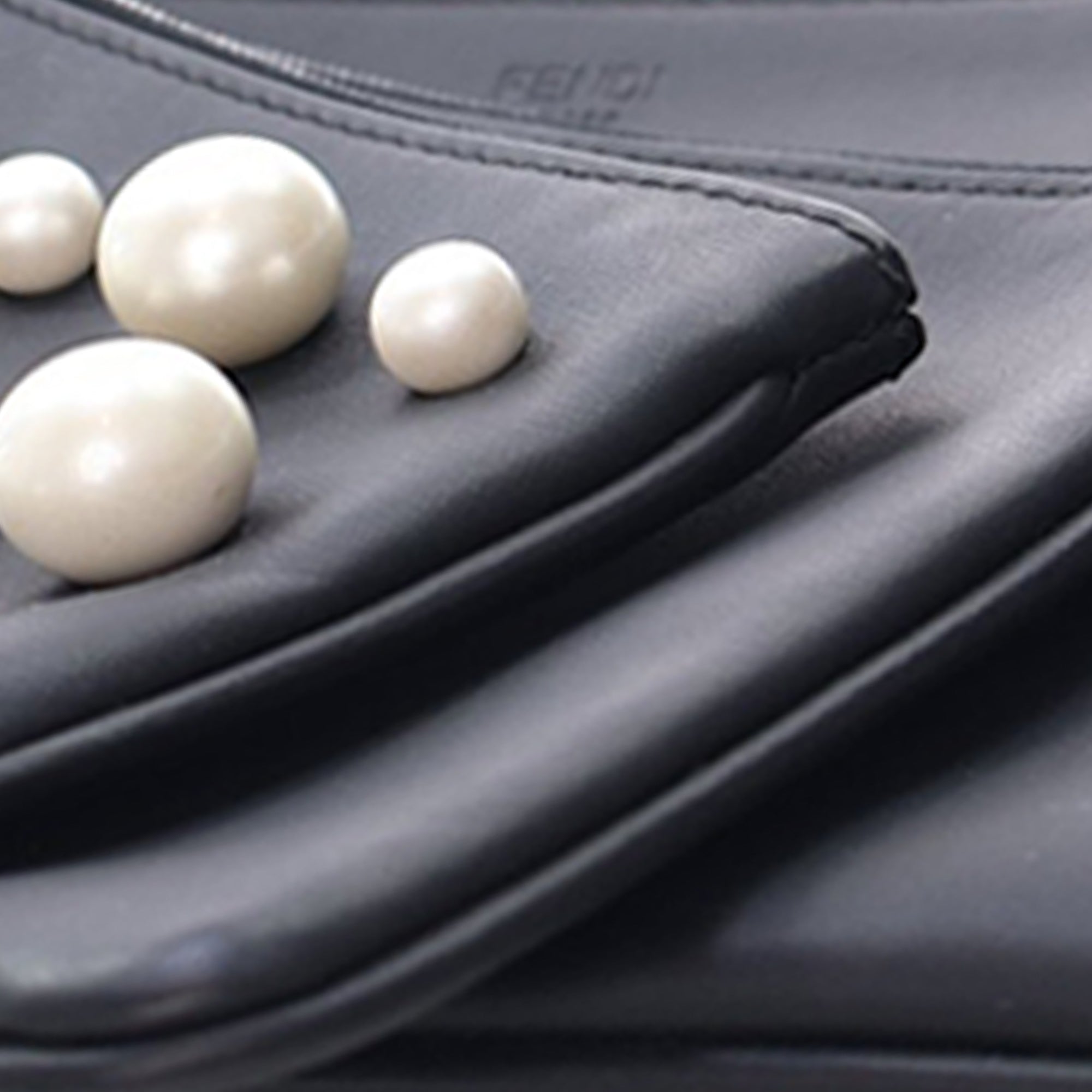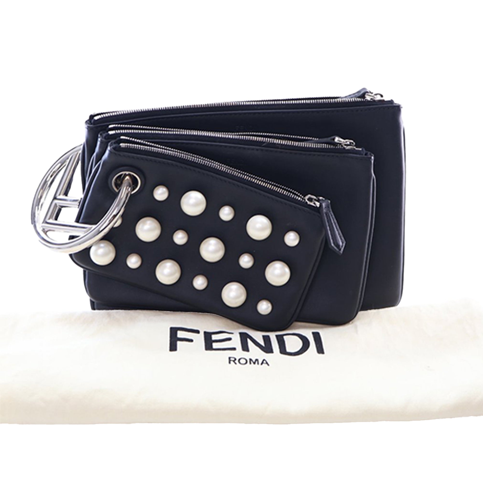 Black Fendi Leather Pearl Studded Triplette Clutch
