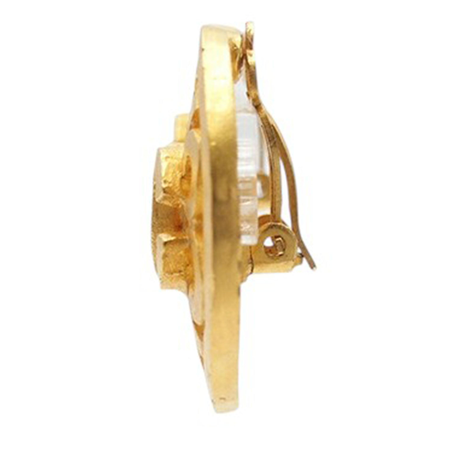 Gold Chanel CC Gold Plated Flower Clip On Earrings