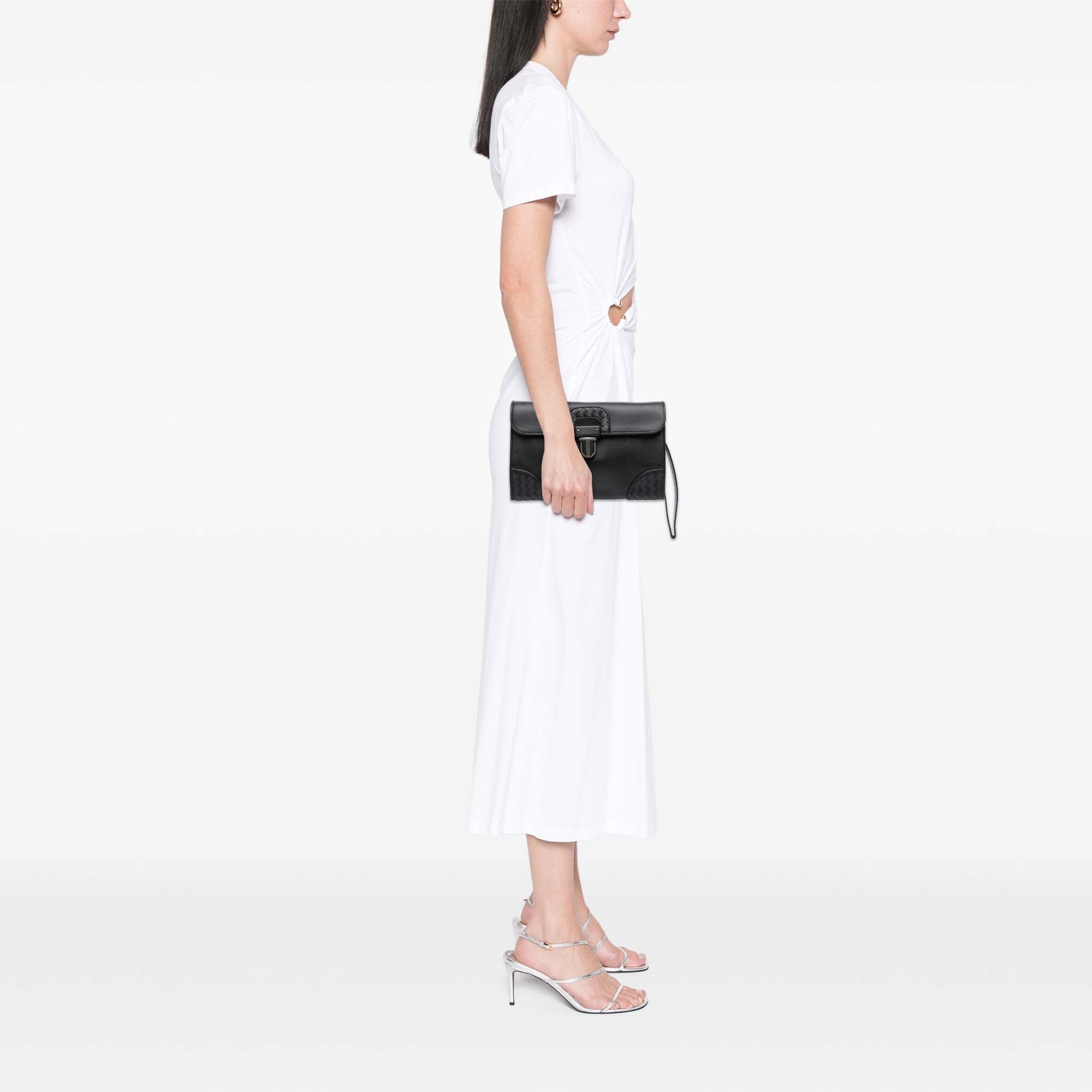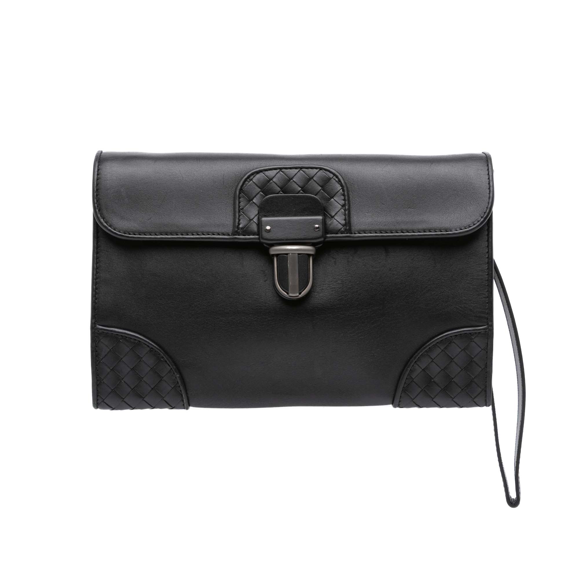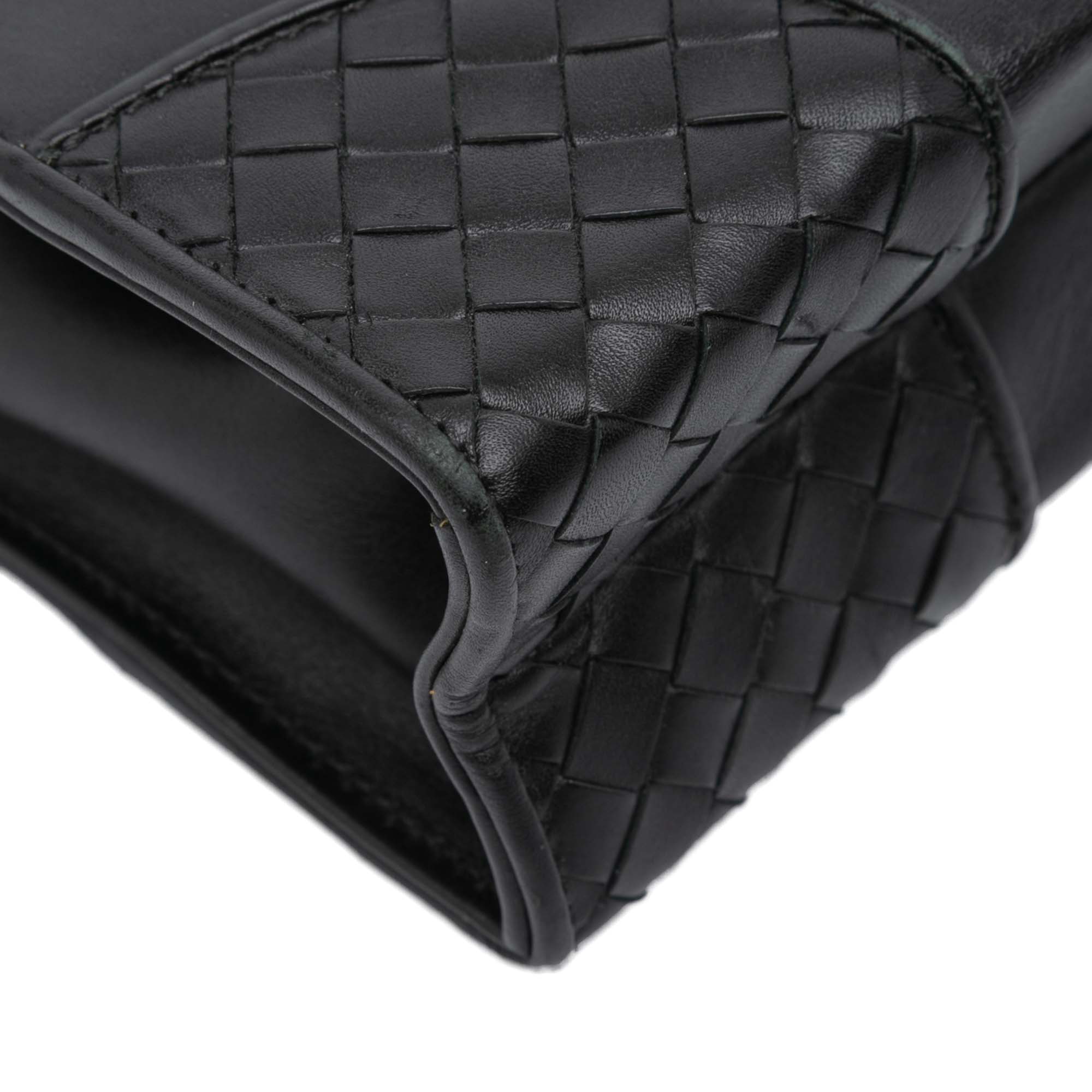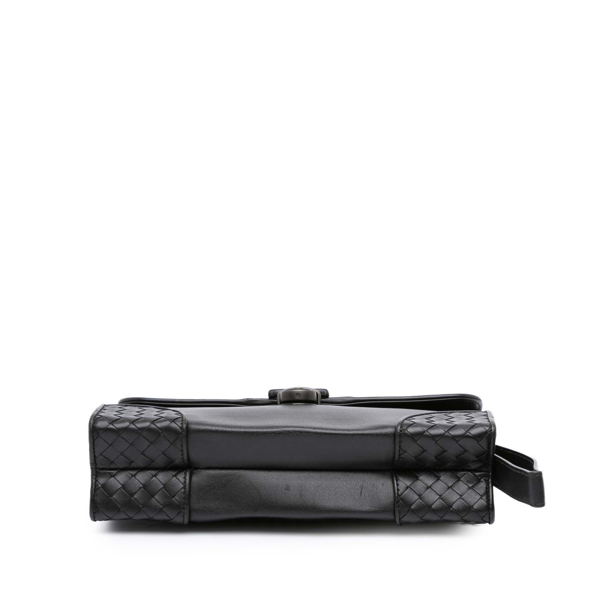 Black Bottega Veneta Intrecciato Trimmed Nappa Slide Lock Clutch