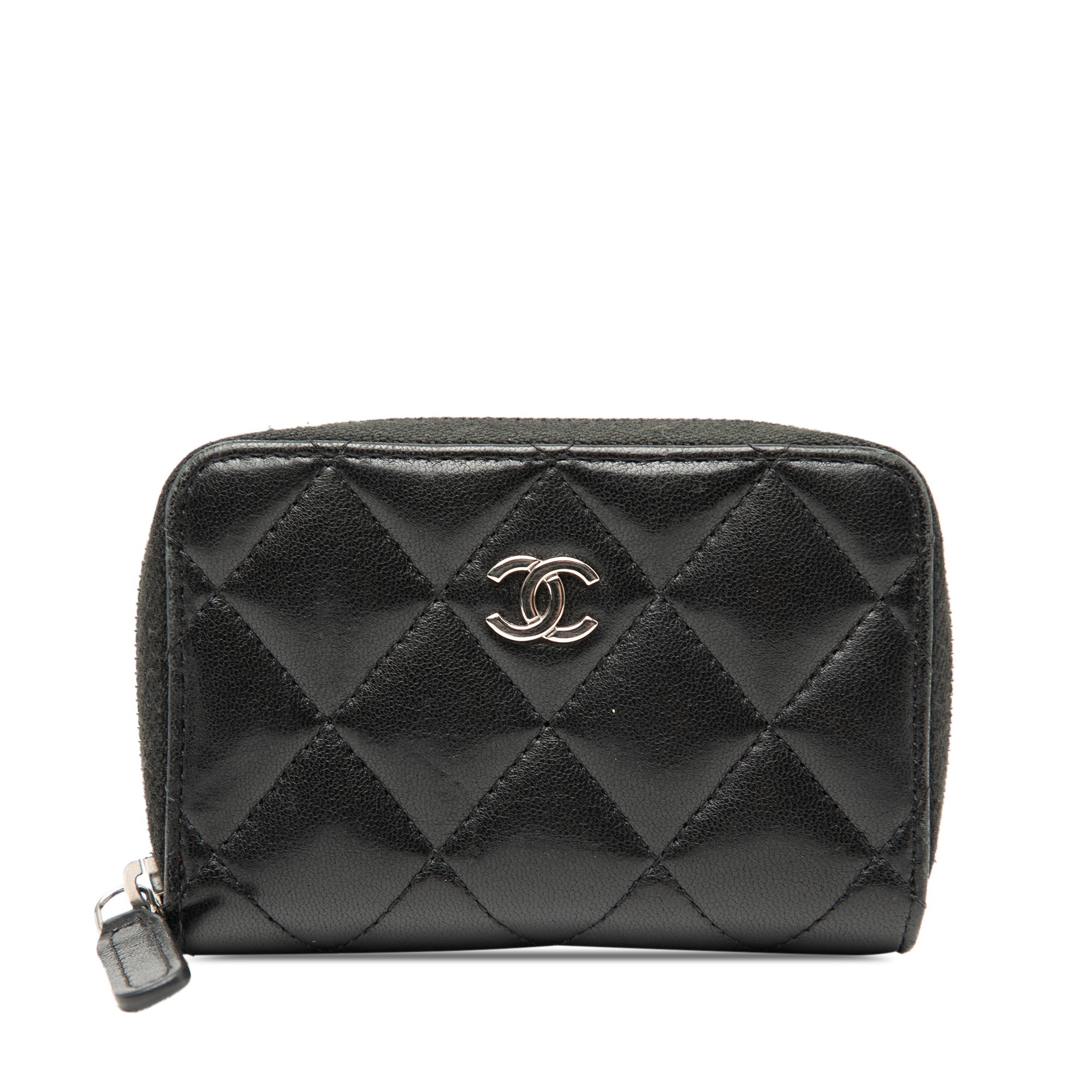 Black Chanel CC Quilted Lambskin Zip Coin Pouch