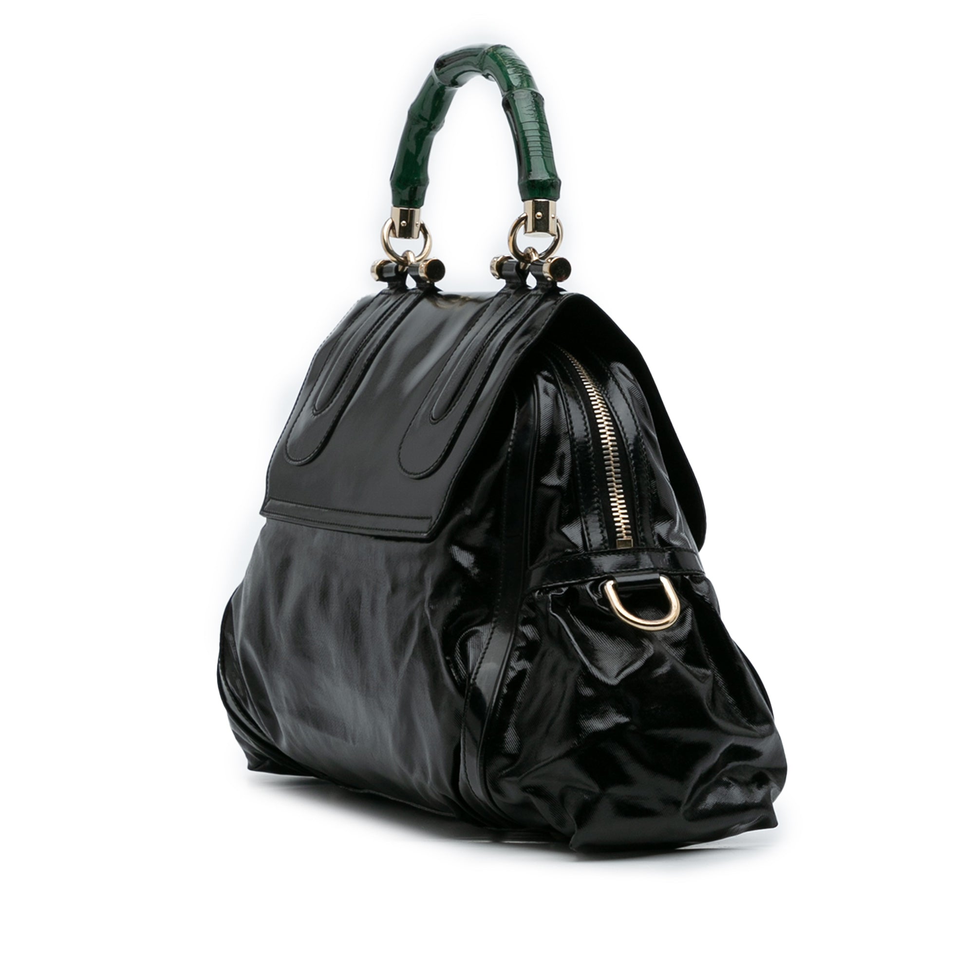 Green Gucci Dialux Pop Coated Canvas Bamboo Top Handle Bag Satchel