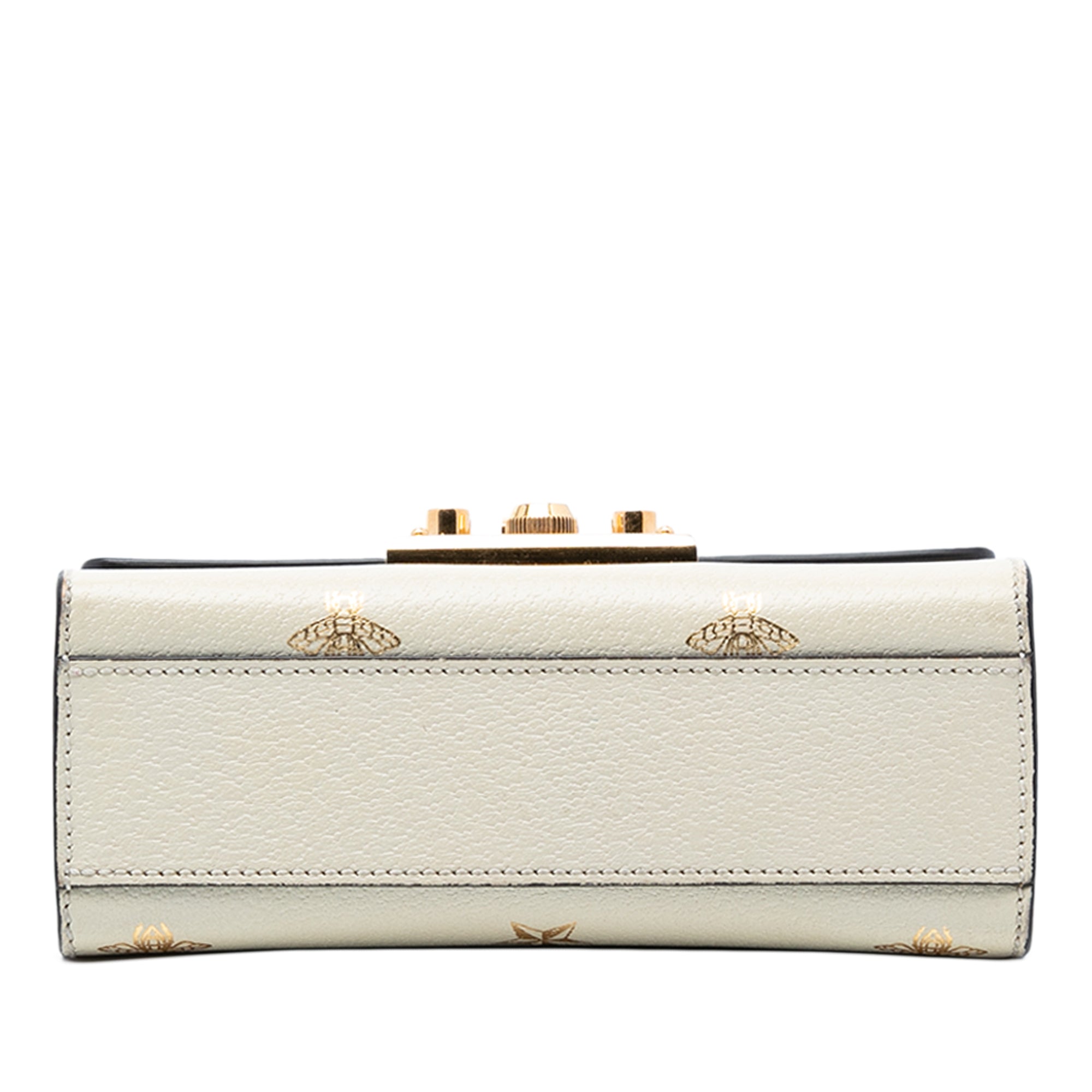 White Gucci Small Leather Bee Star Padlock Crossbody