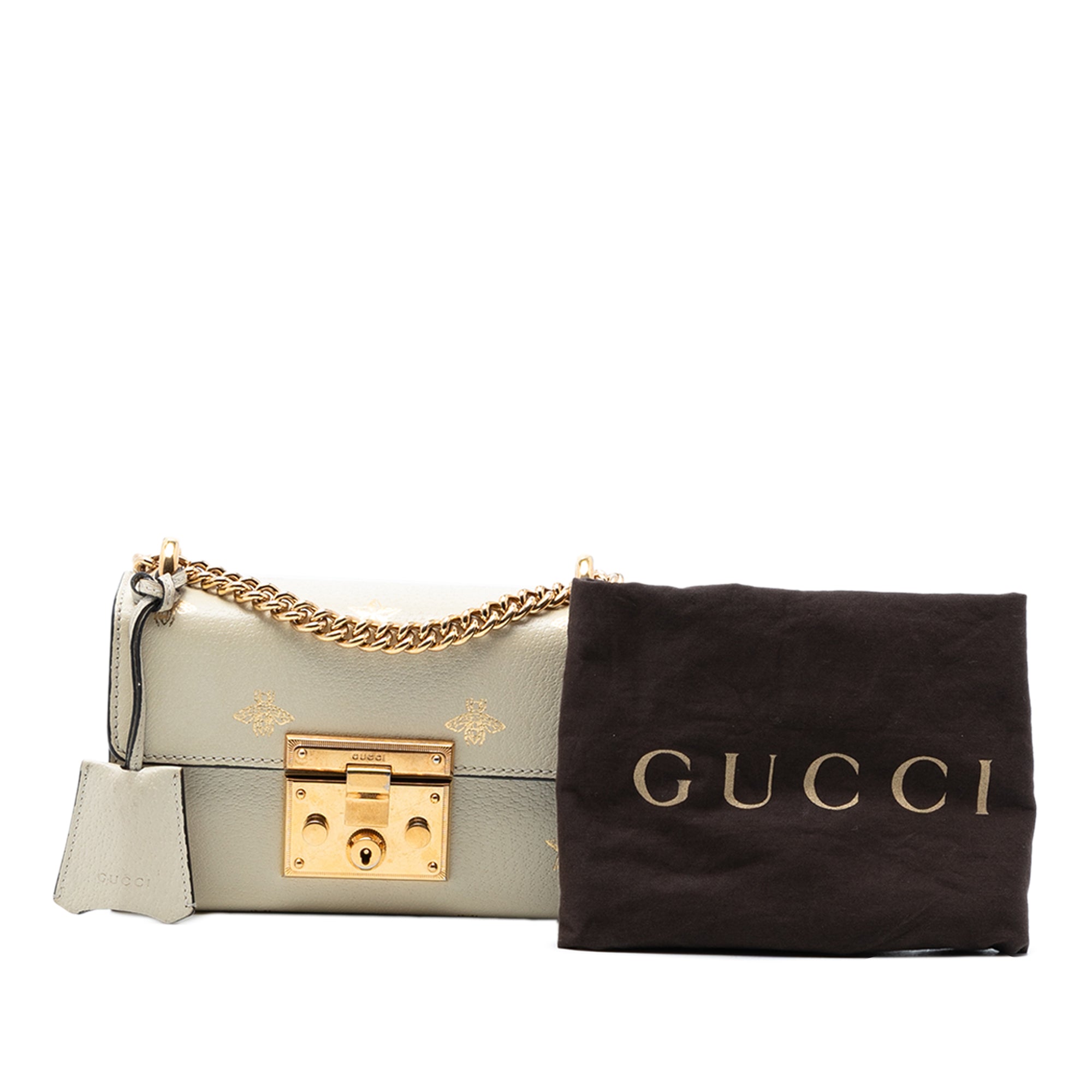 Please note this is a pre-owned item that may display signs of wear consistent with the condition listed above and shown in photos. Designer Revival guarantees this is an authentic White Gucci Small Leather Bee Star Padlock Crossbody or 100% of your money back. Learn more about our authentication process.