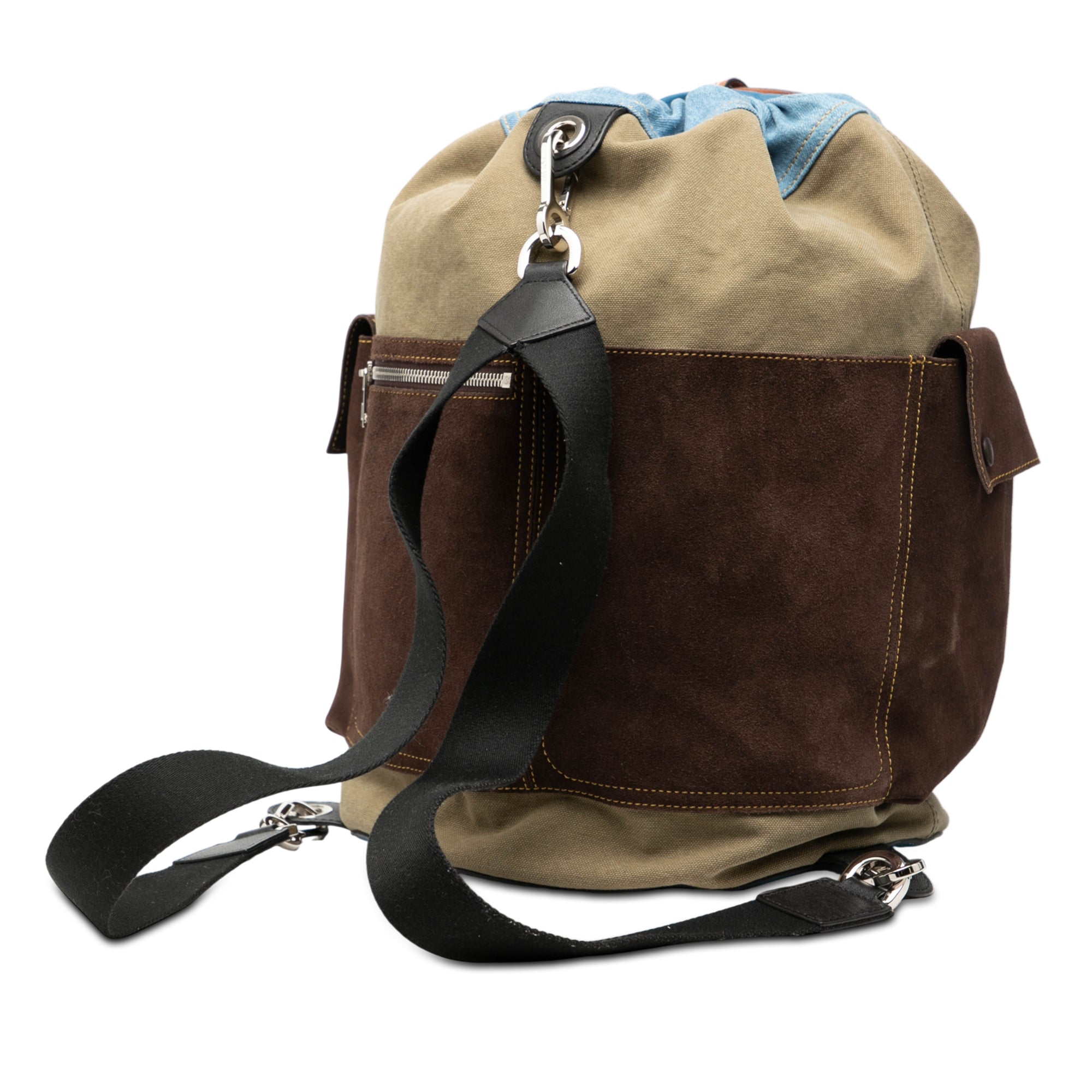 Brown LOEWE Cotton Suede And Denim Drawstring Reversible Backpack