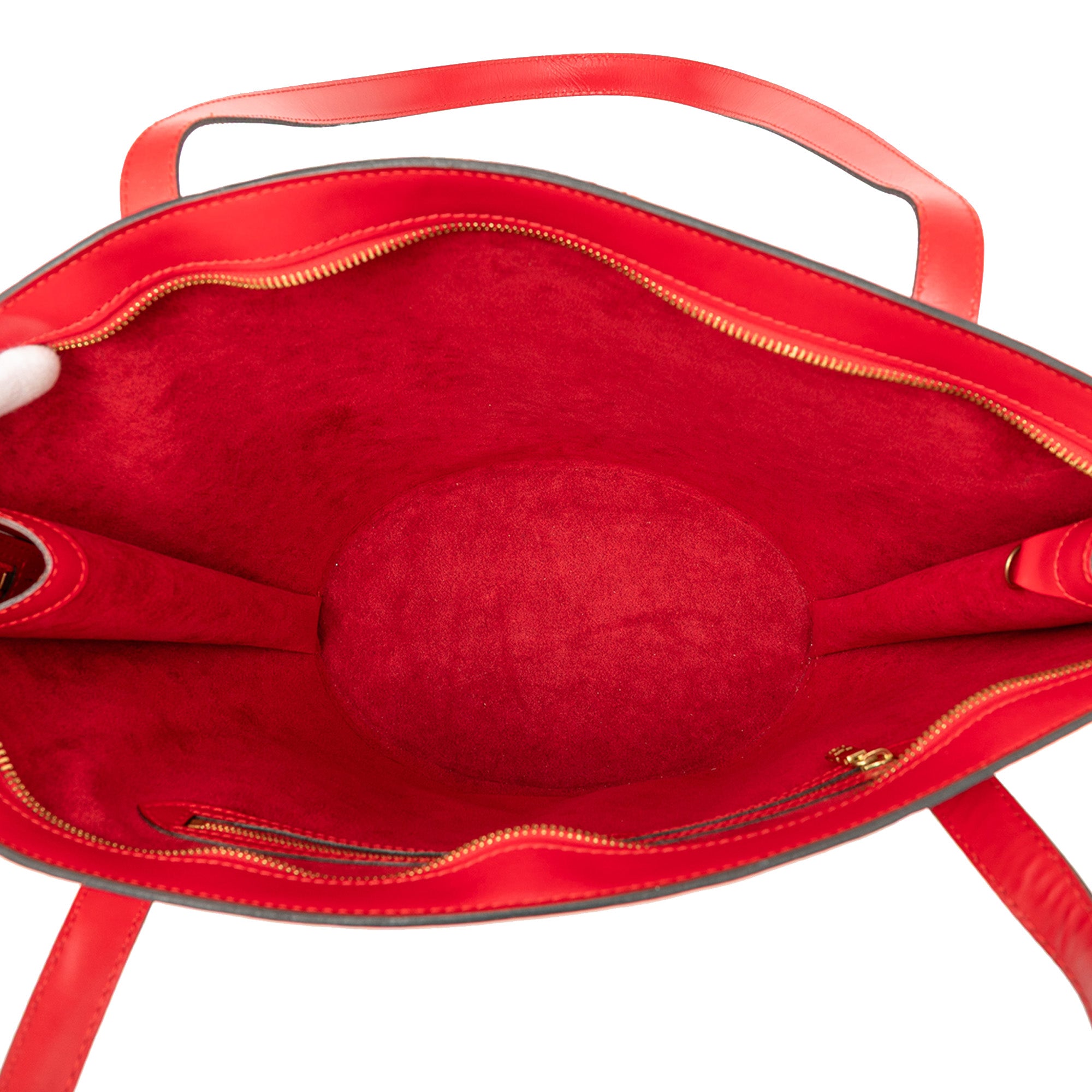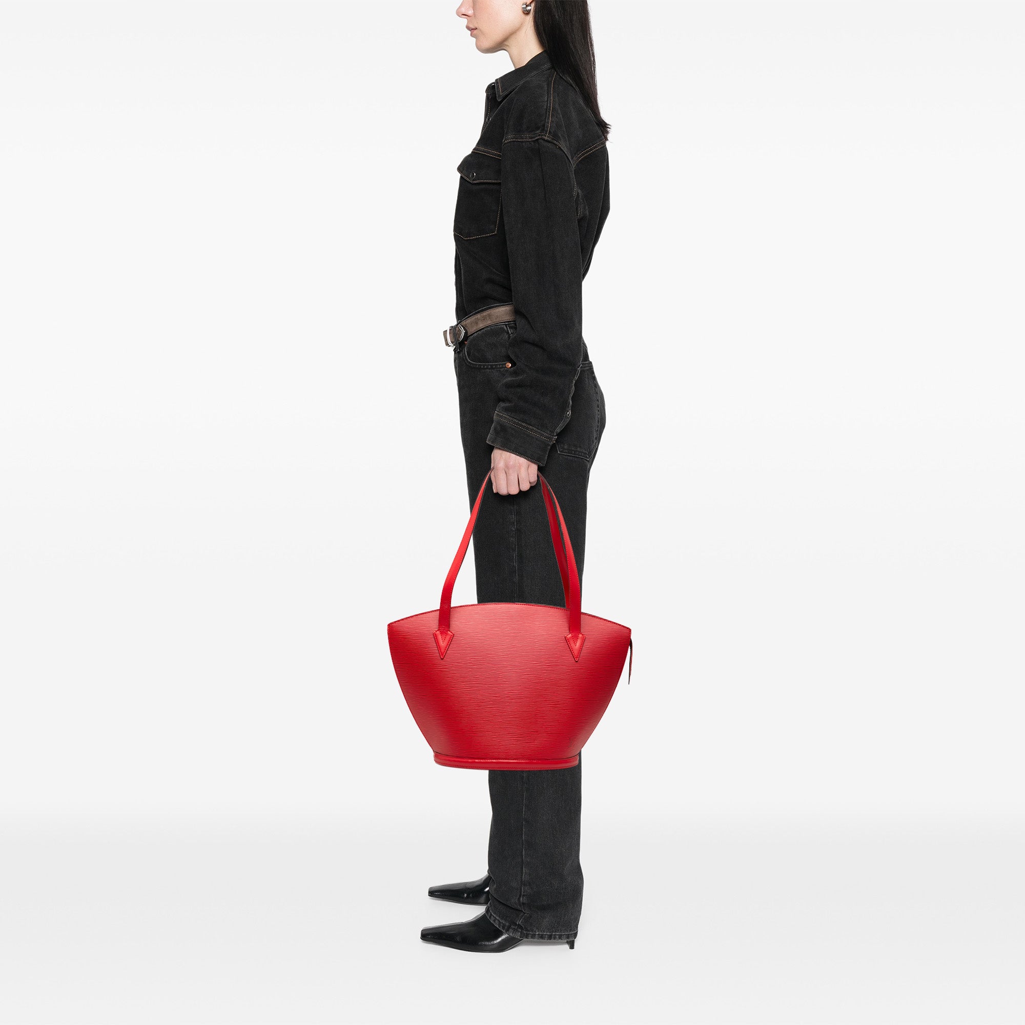 Product Details: Red Louis Vuitton Epi Saint Jacques GM Long Strap Shoulder Bag. The Saint Jacques GM features an epi leather body, flat leather handles, a top zip closure, and an interior zip pocket. 11.8" L x 10.2" W x 6.5" D, 10.2" drop. Serial number AS1915.