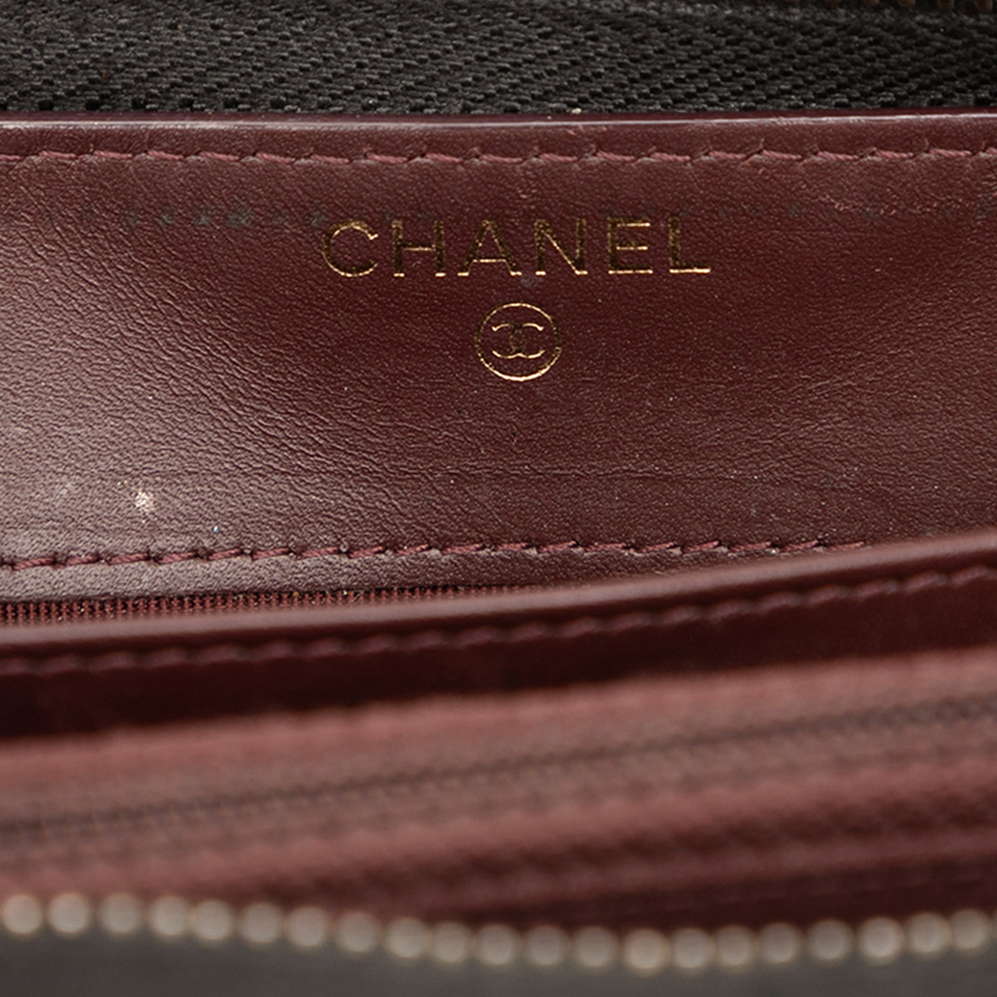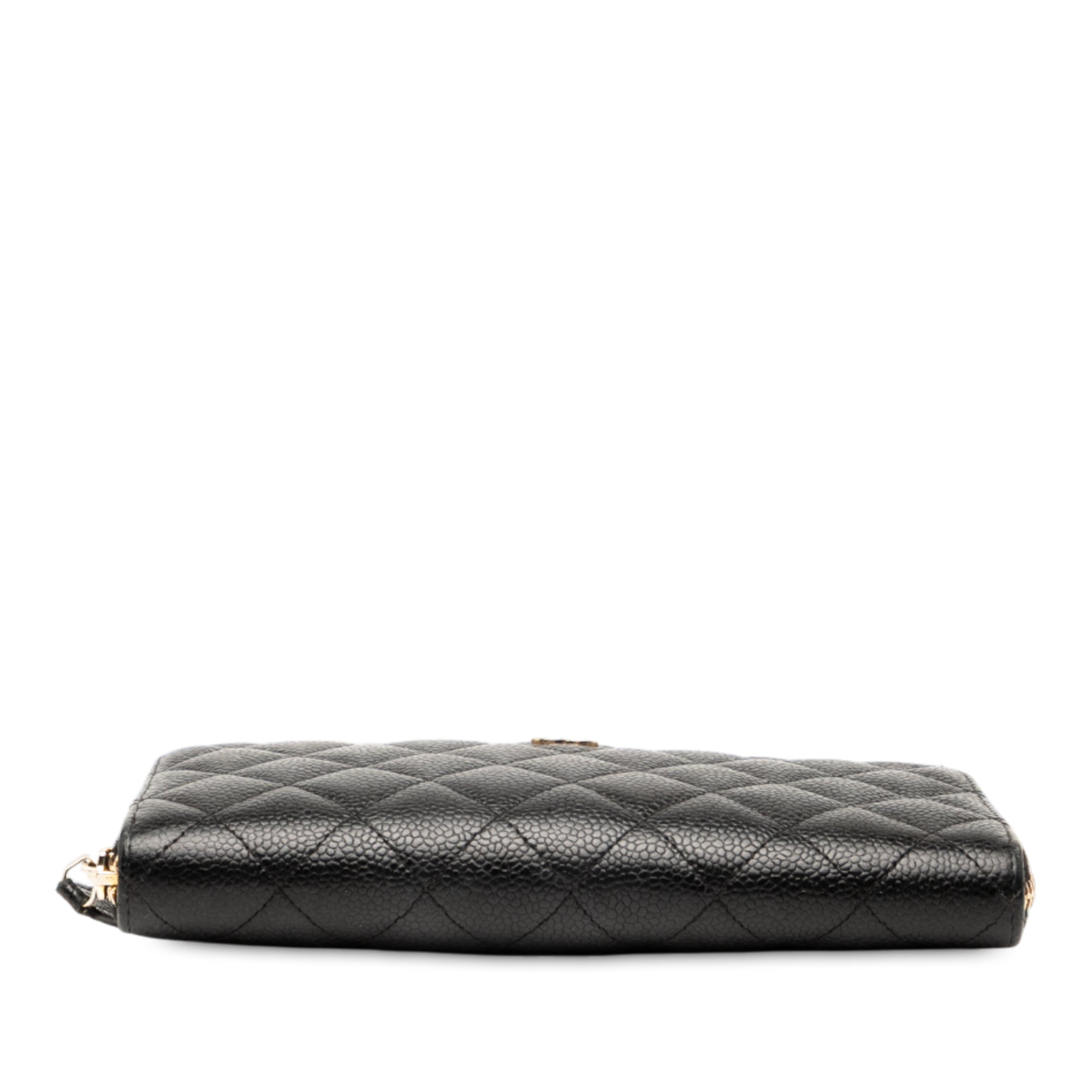 Black Chanel CC Quilted Caviar Zip Around Long Wallet