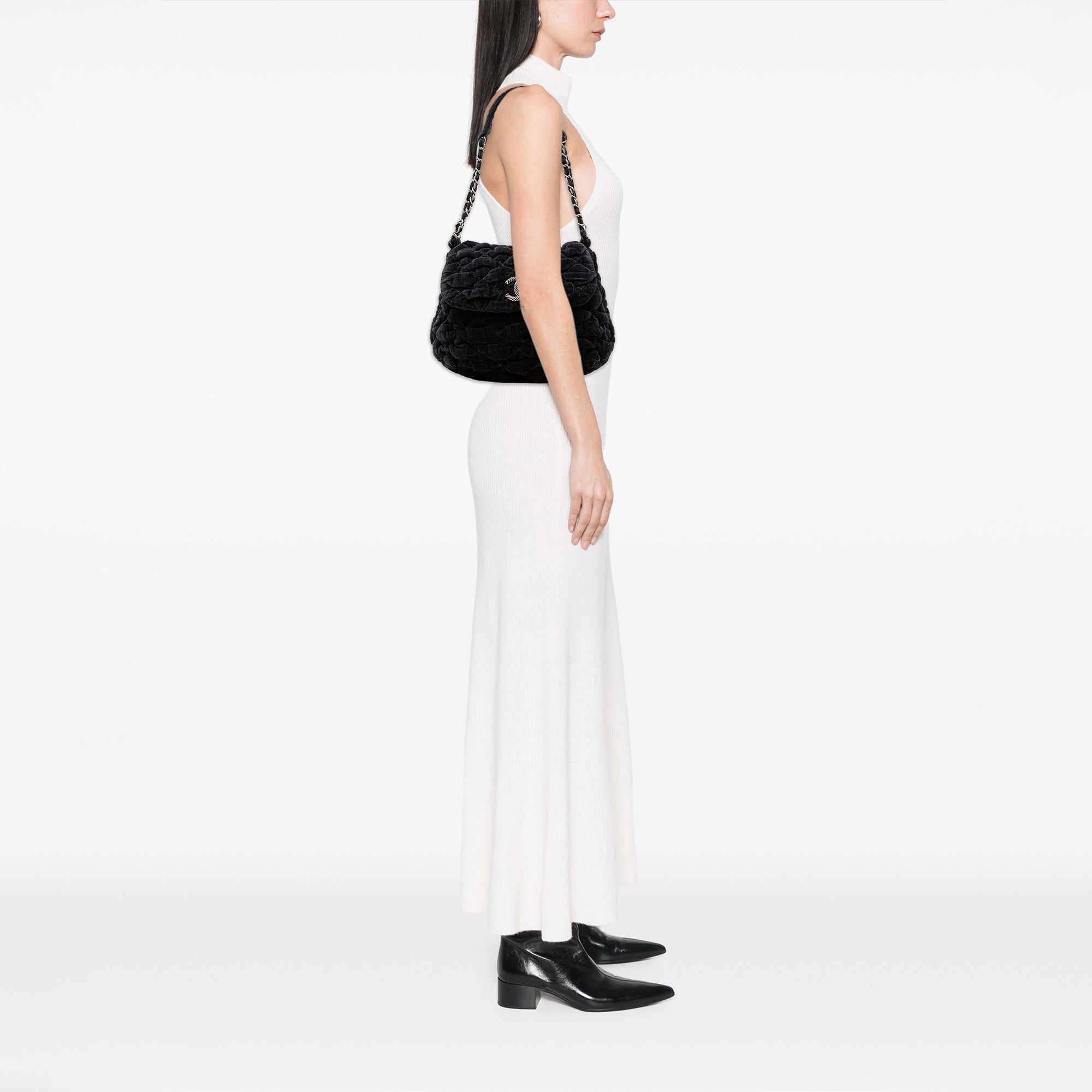 Black Chanel Paris Moscou Bubble Quilted Velvet Flap Shoulder Bag