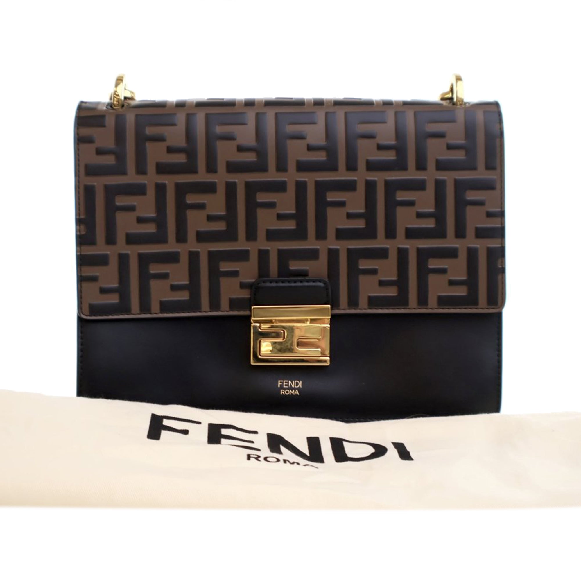 Brown Fendi Medium FF 1974 Embossed Leather Kan U Top Handle Bag Satchel