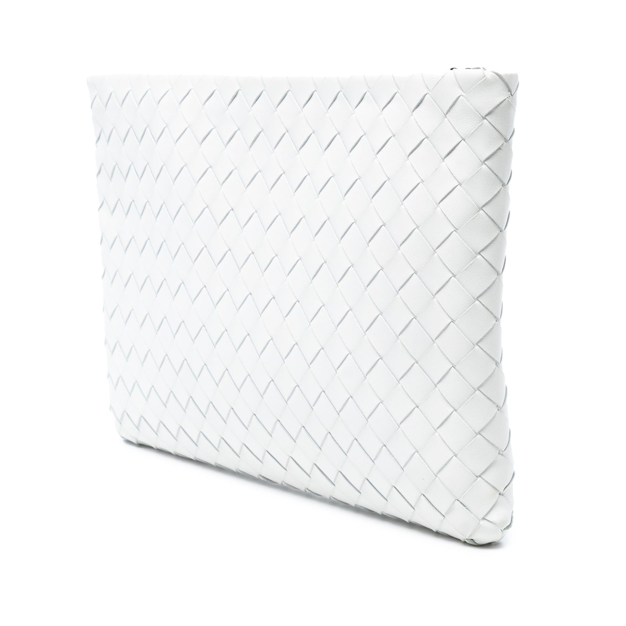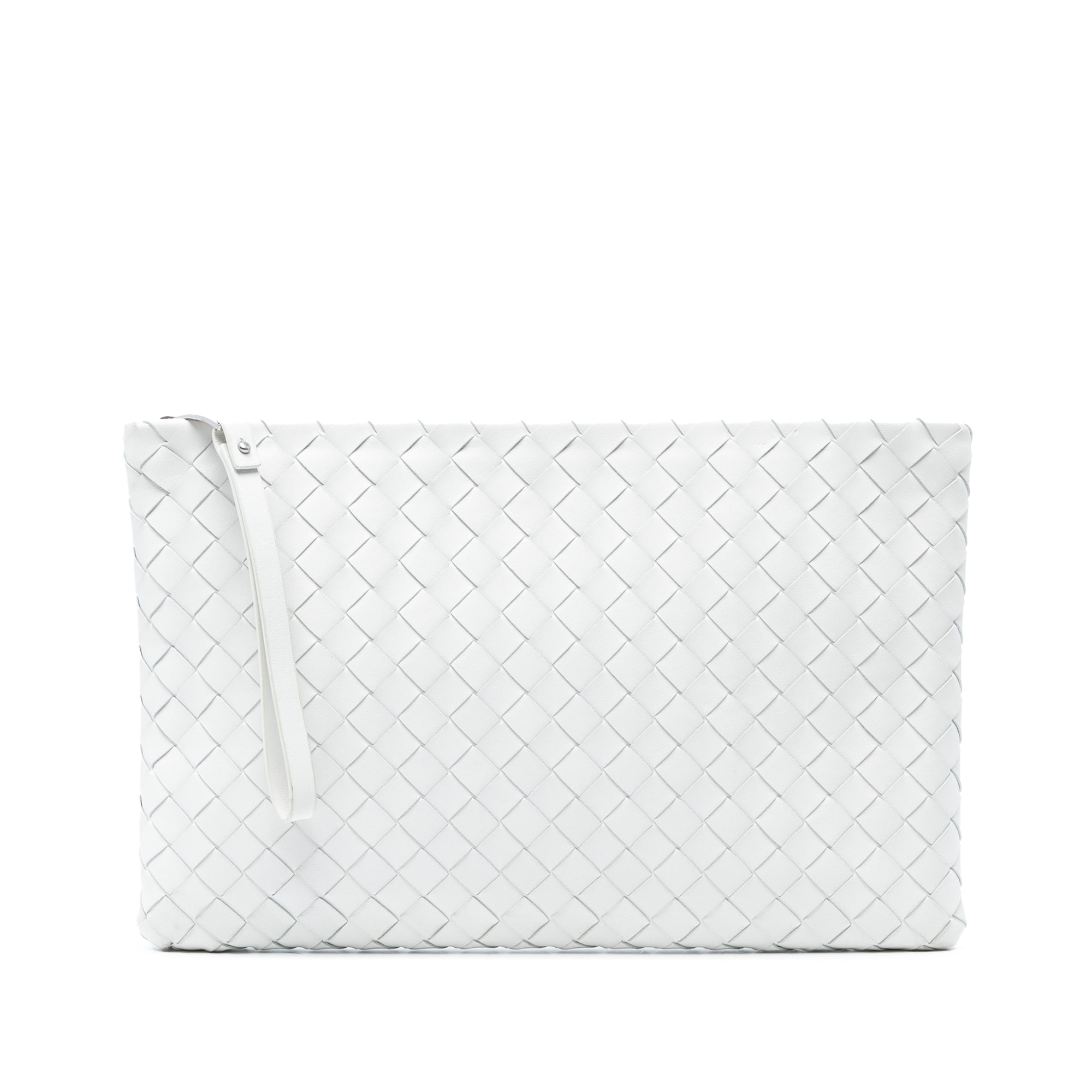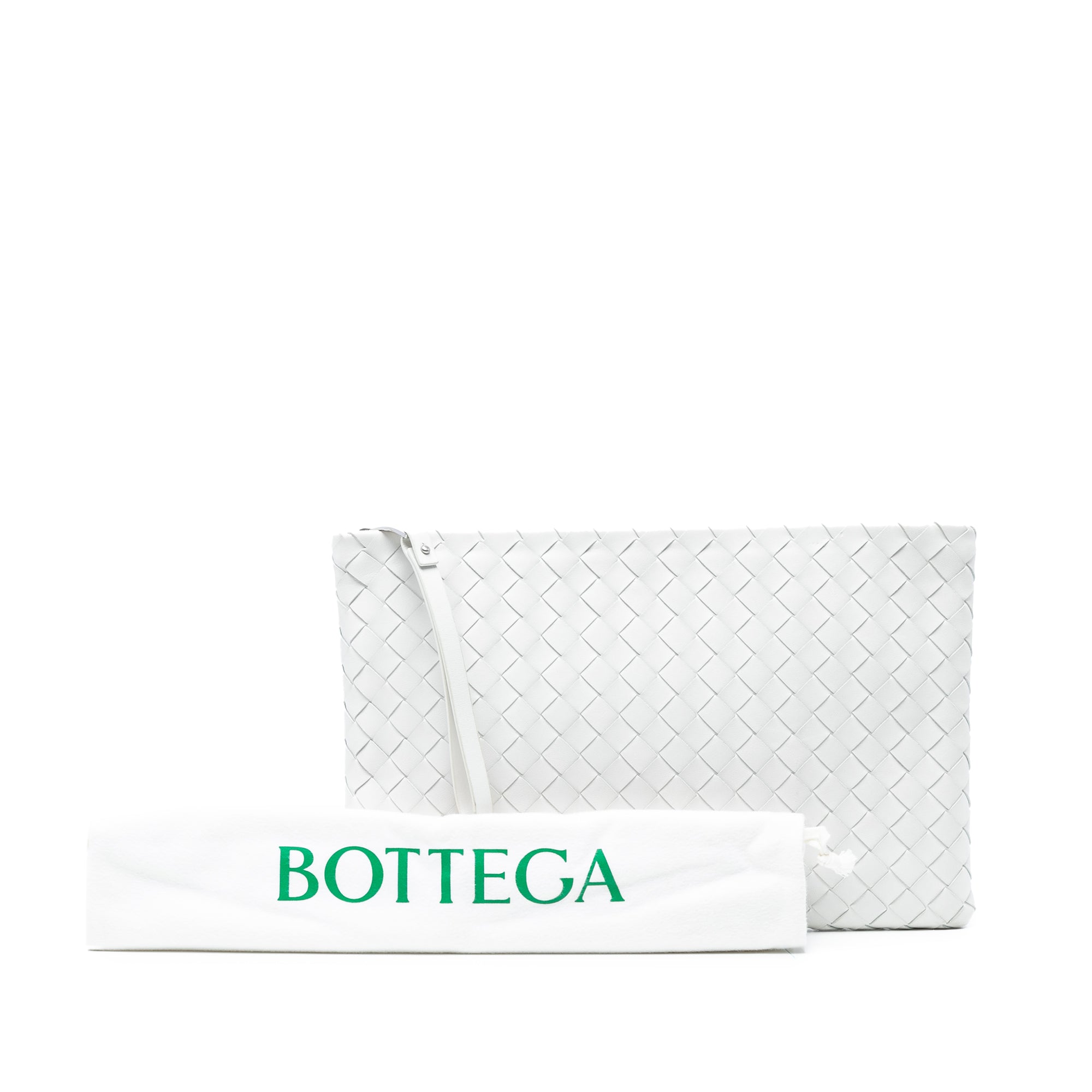 White Bottega Veneta Nappa Intrecciato Wristlet Clutch