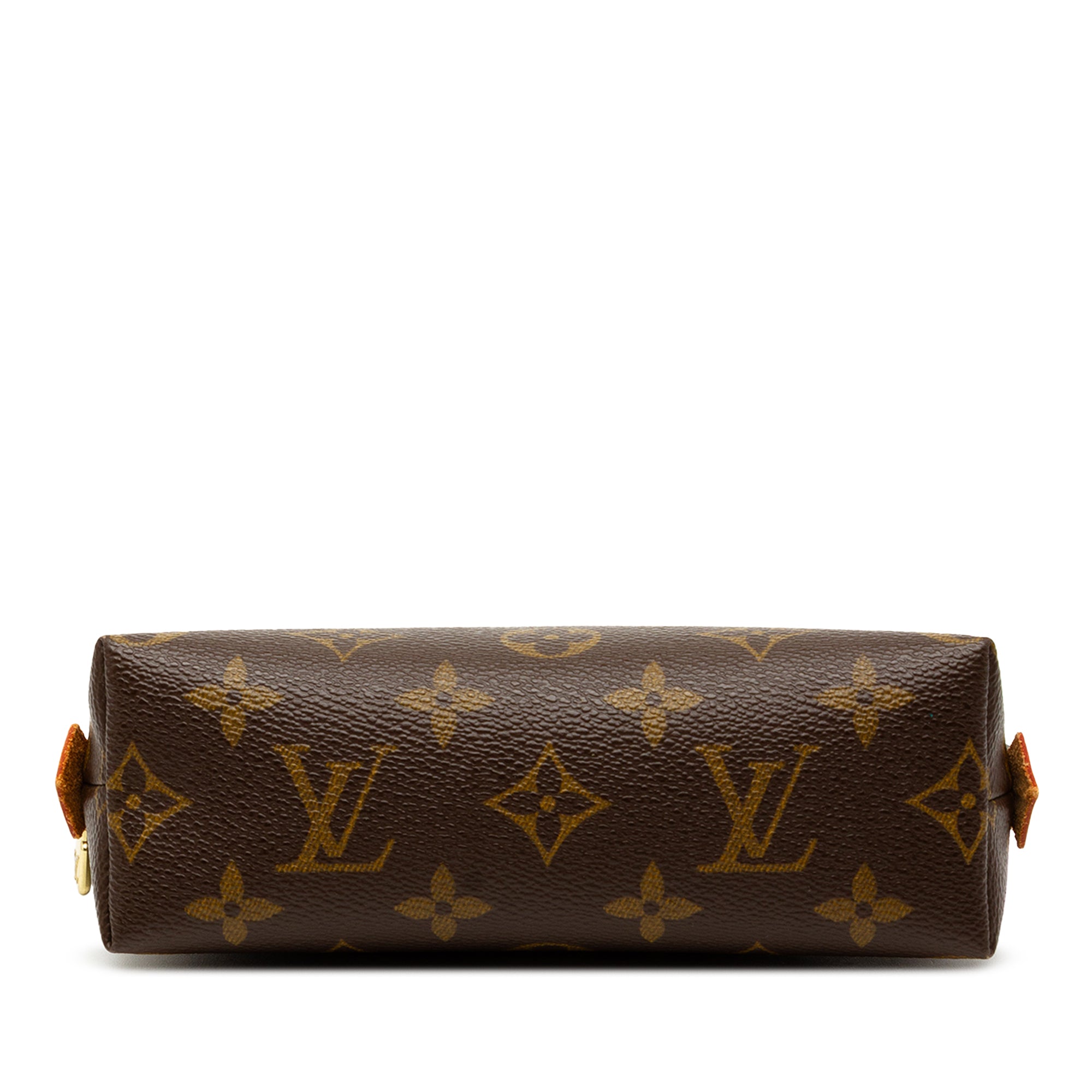 Product Details: Brown Louis Vuitton Monogram Cosmetic Pouch PM. This cosmetic pouch features a monogram canvas body, a top zip closure, and an interior slip pocket. 4.3" L x 6.7" W x 2.4" D. Serial number CA0024.