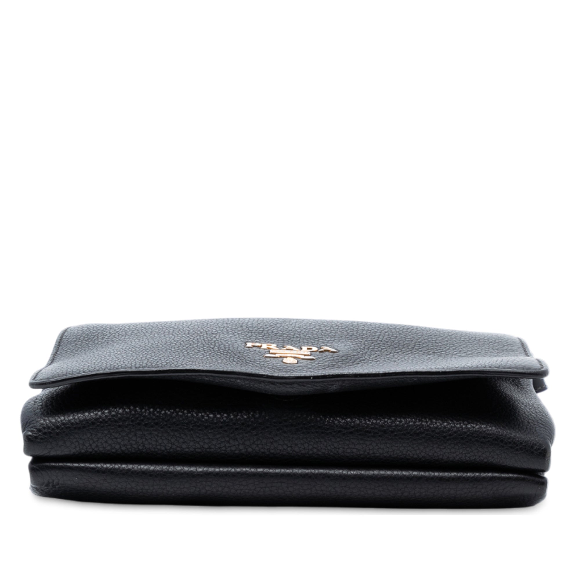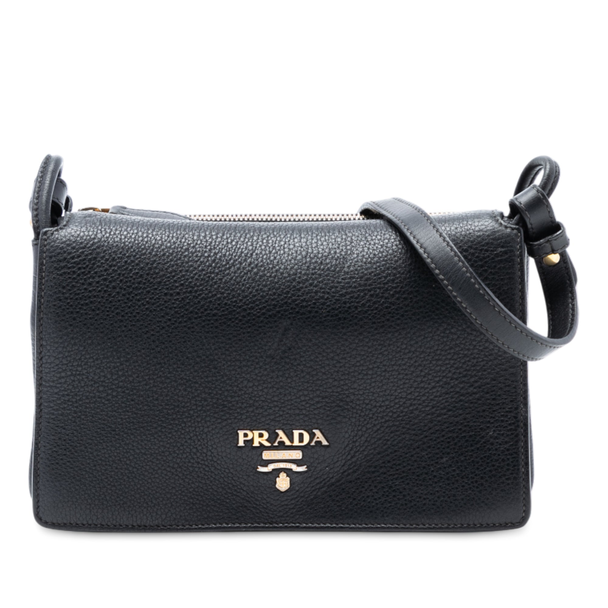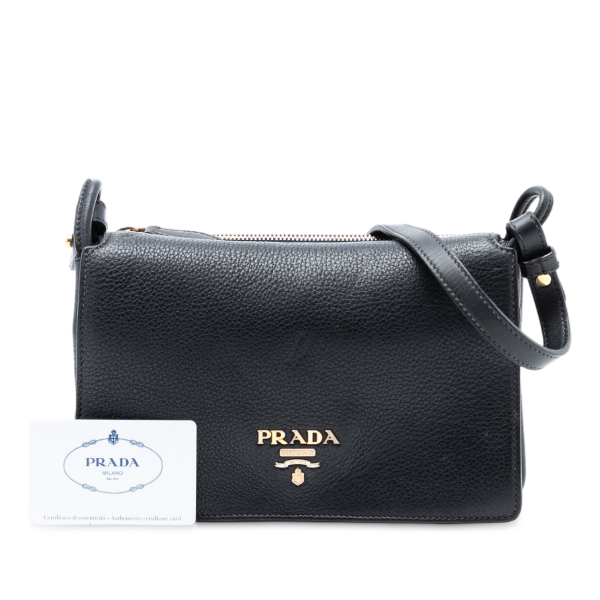 Please note this is a pre-owned item that may display signs of wear consistent with the condition listed above and shown in photos. Designer Revival guarantees this is an authentic Black Prada Vitello Daino Flap Crossbody or 100% of your money back. Learn more about our authentication process.