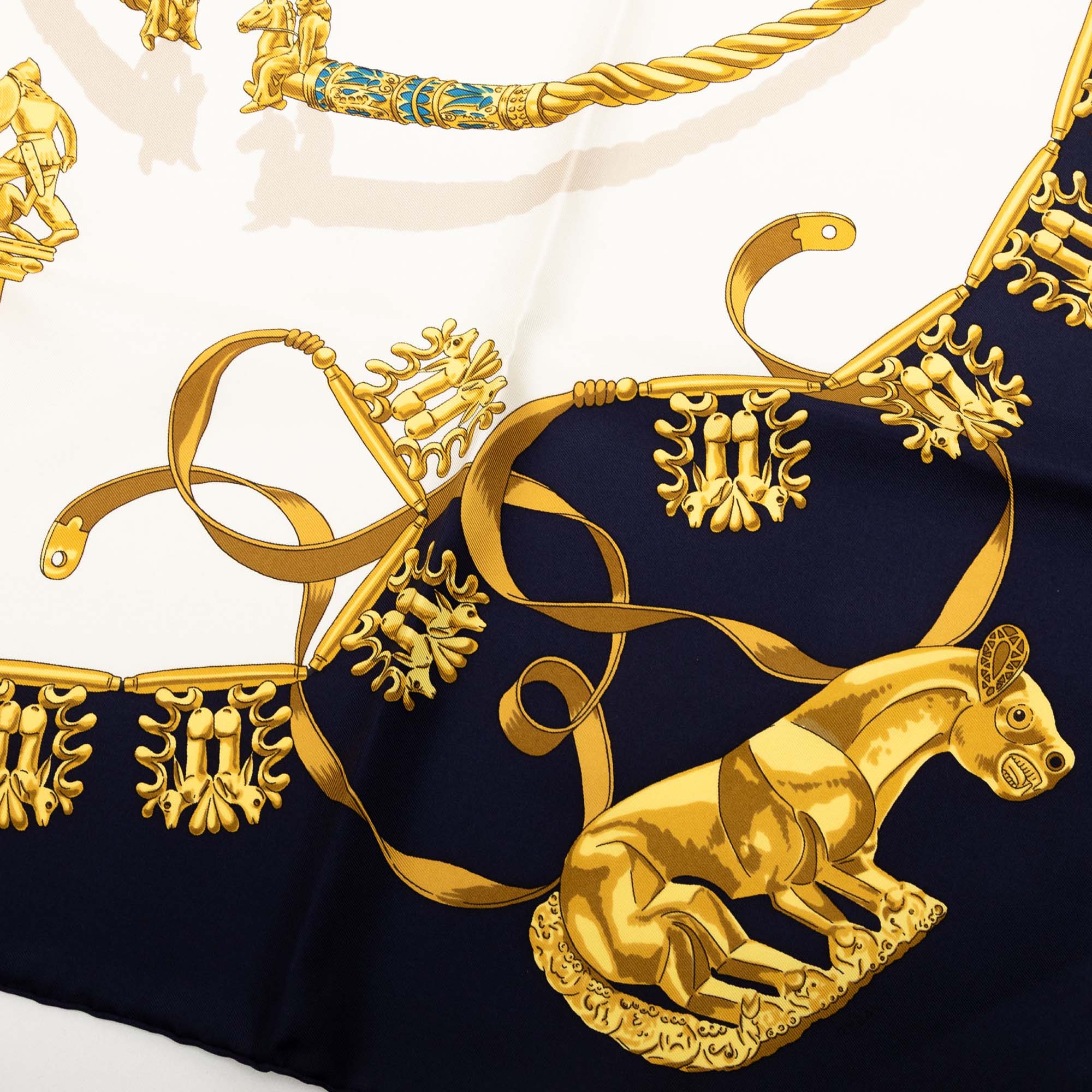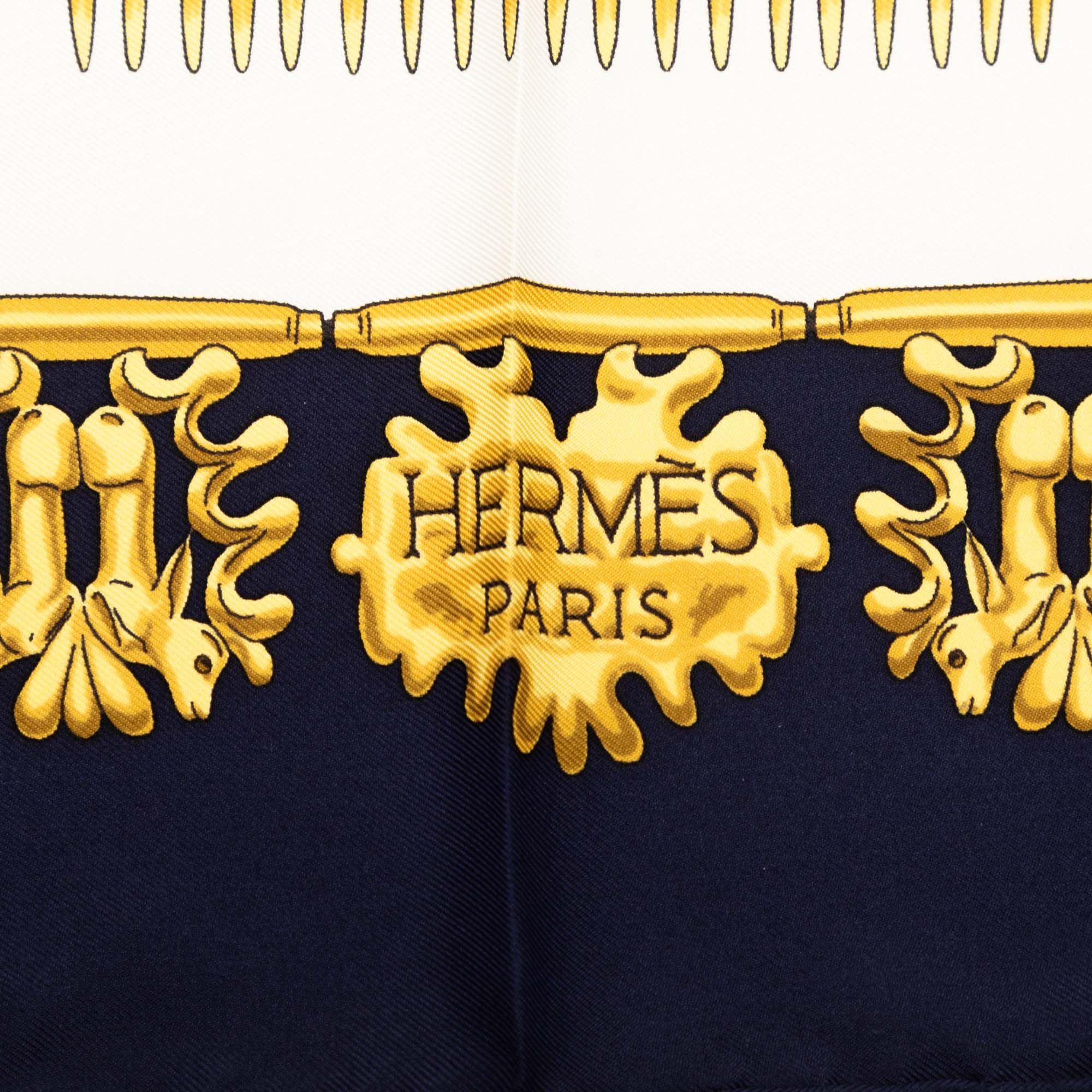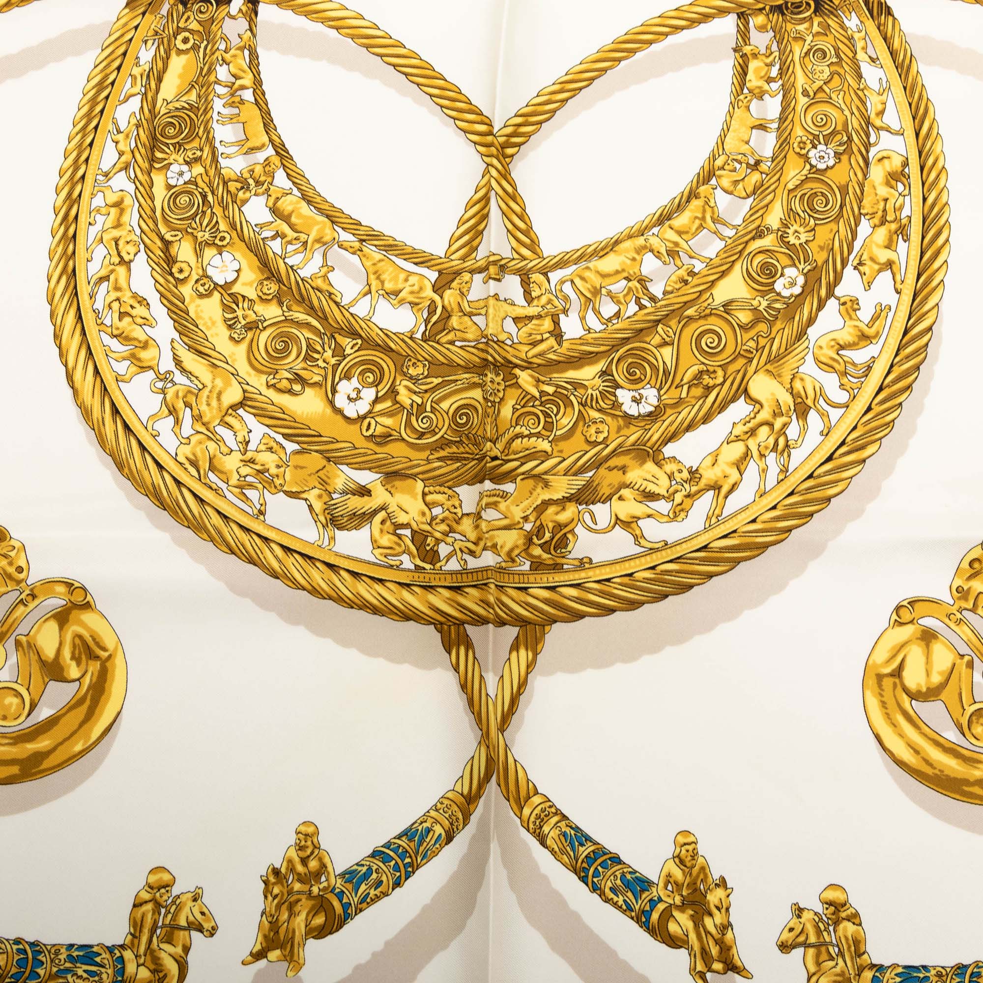 White Hermès Les Cavaliers d Or Silk Scarf Scarves