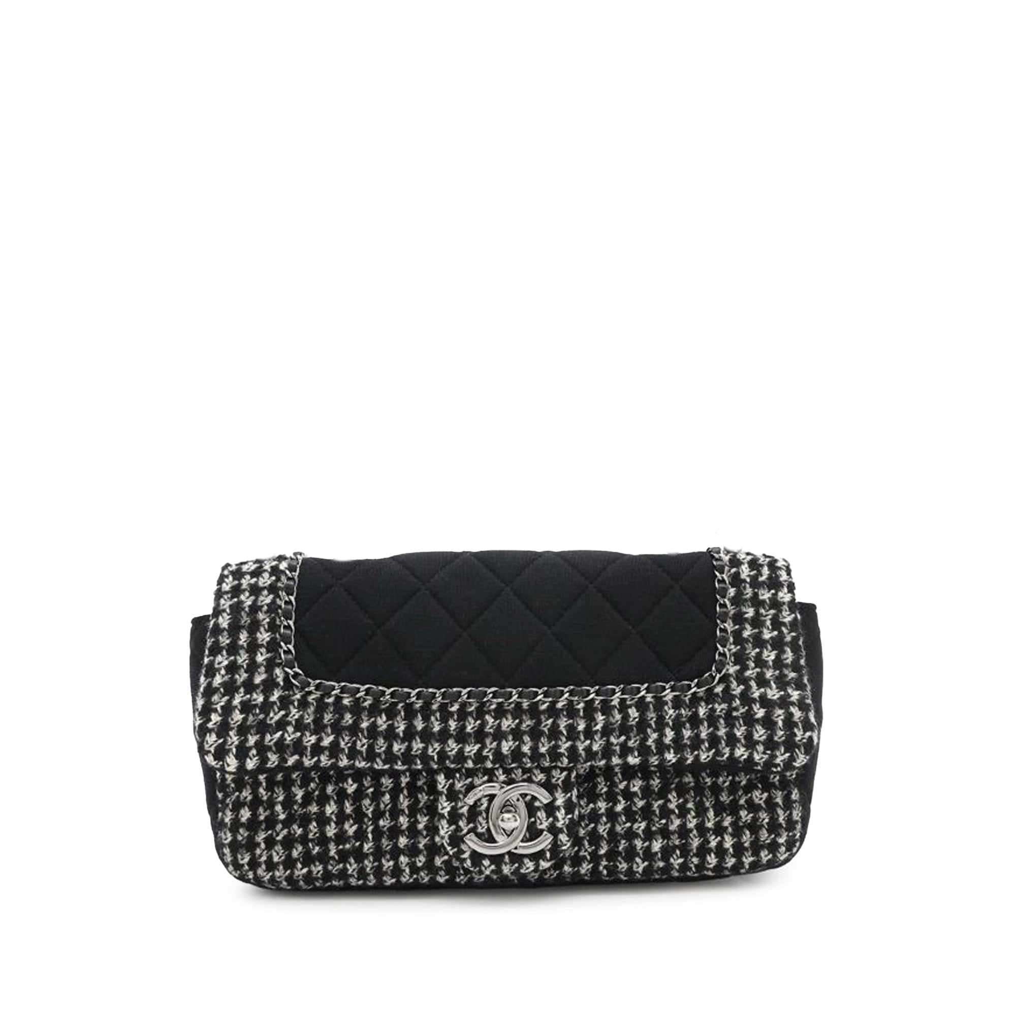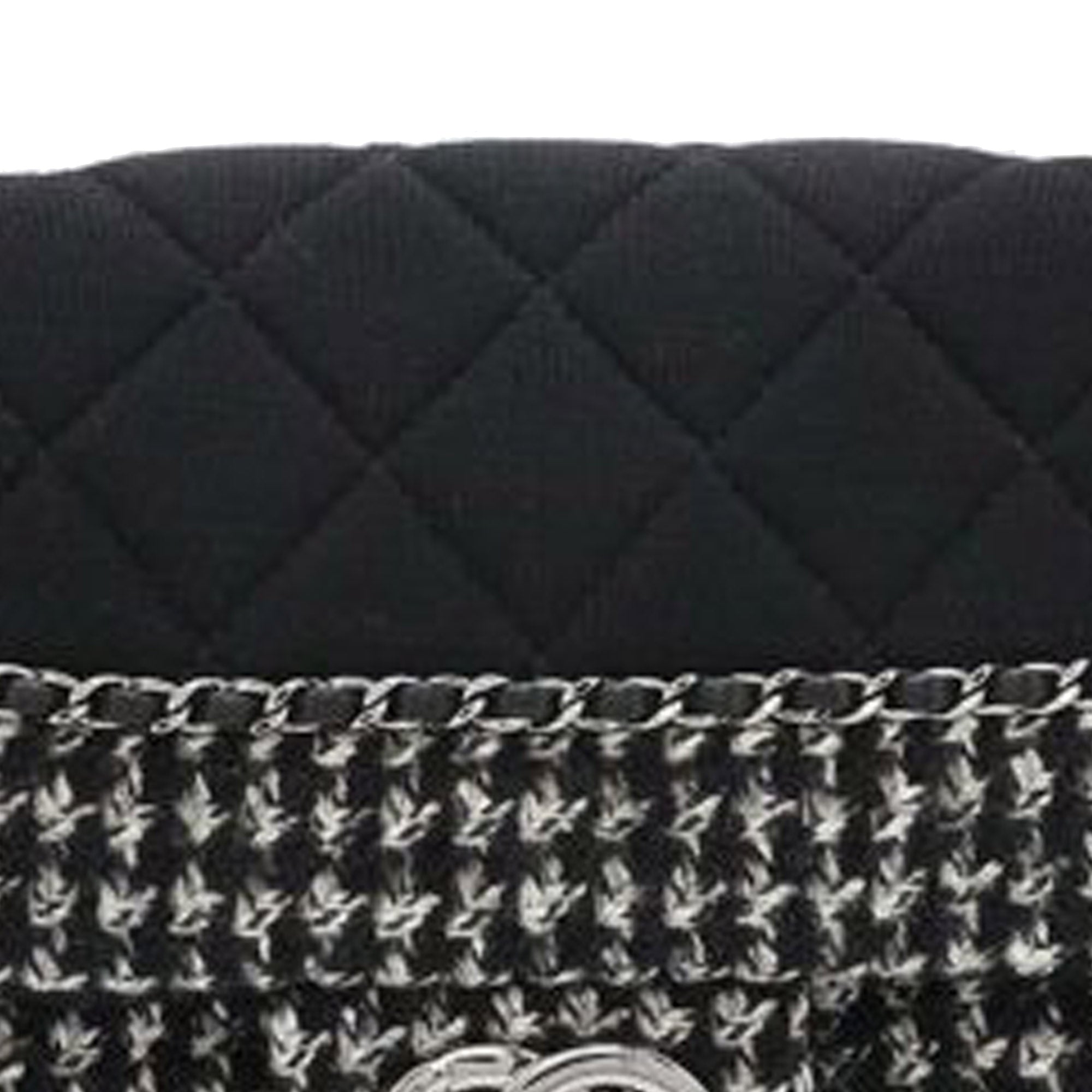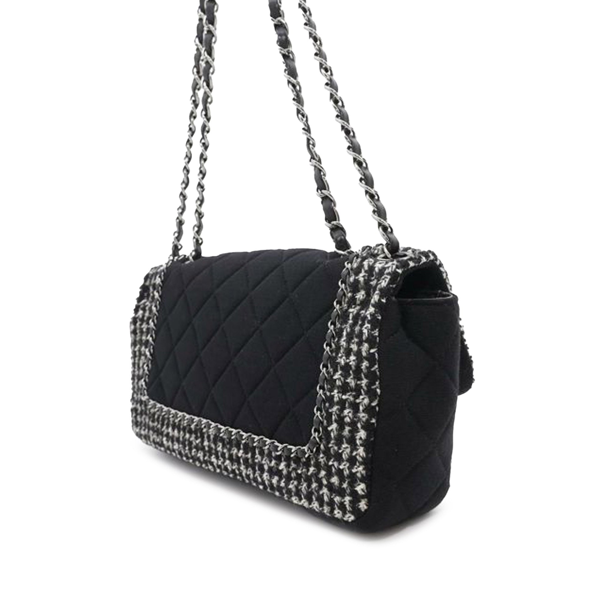 Black Chanel Medium Quilted Jersey and Tweed Chain Flap Shoulder Bag