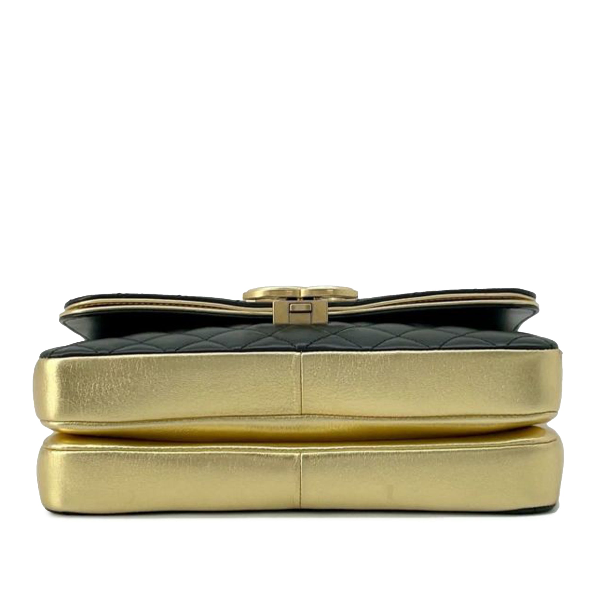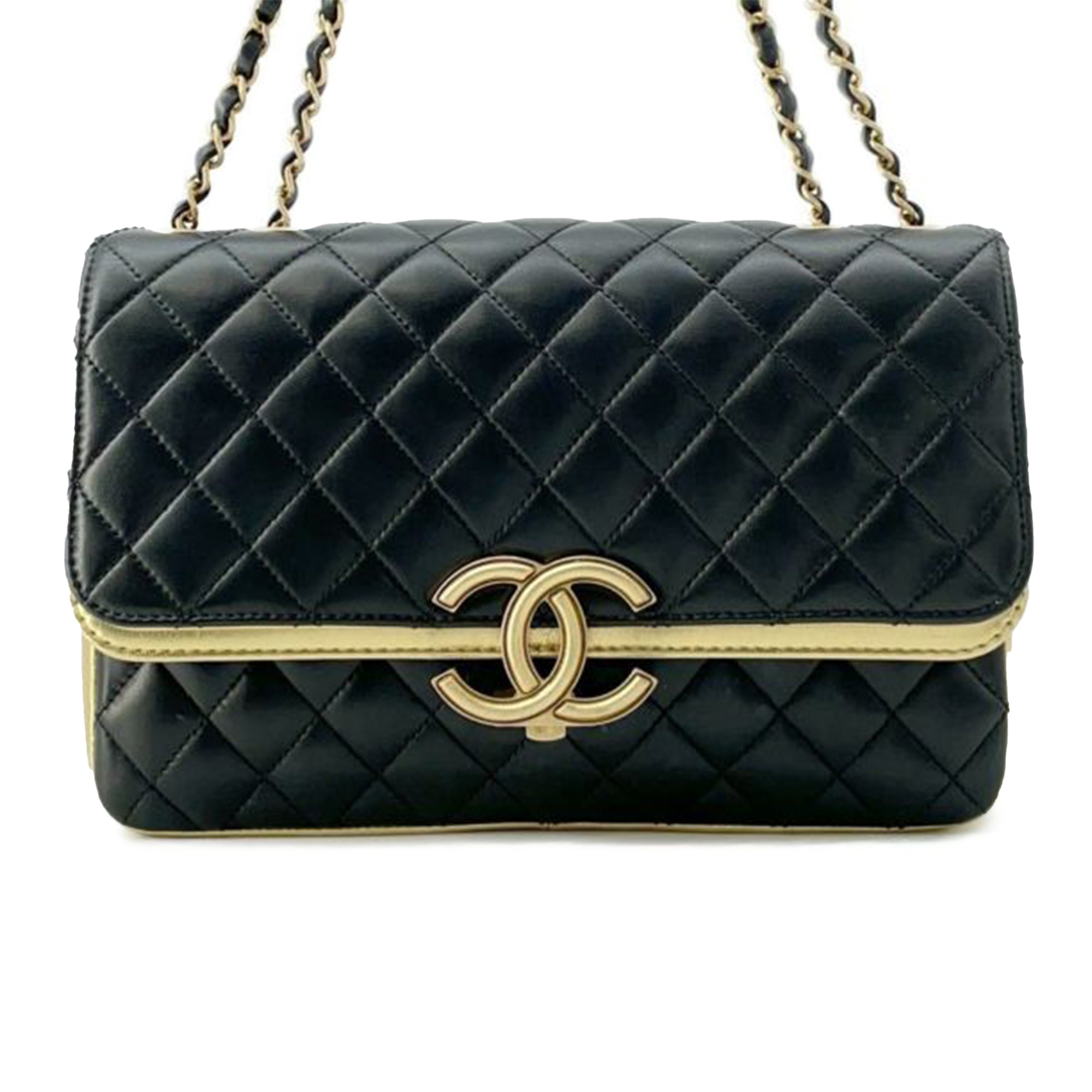 Black Chanel Medium Quilted Metallic Lambskin CC Chic Double Flap Shoulder Bag - Designer Revival Black Chanel Medium Quilted Metallic Lambskin CC Chic Double Flap Shoulder Bag - Designer Revival