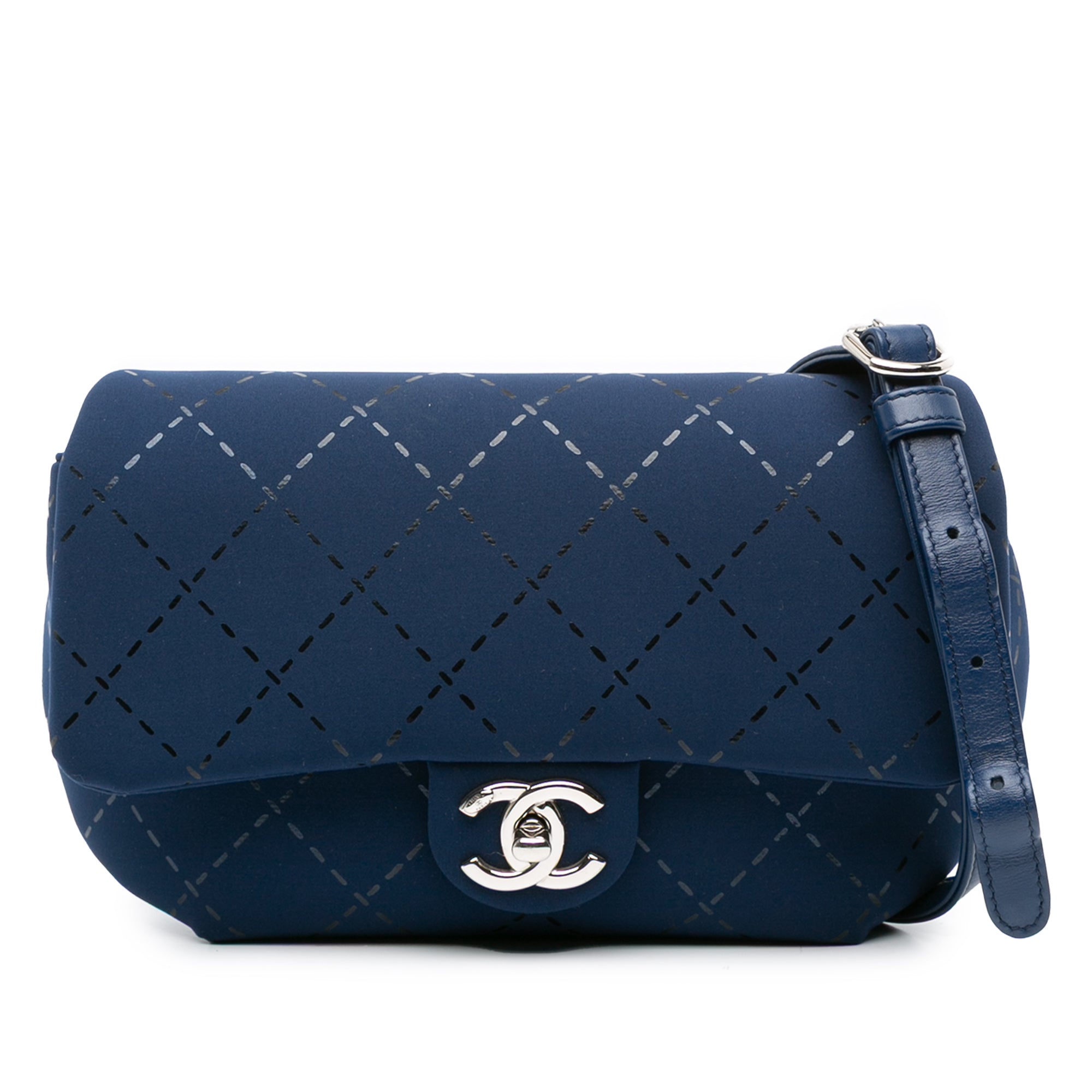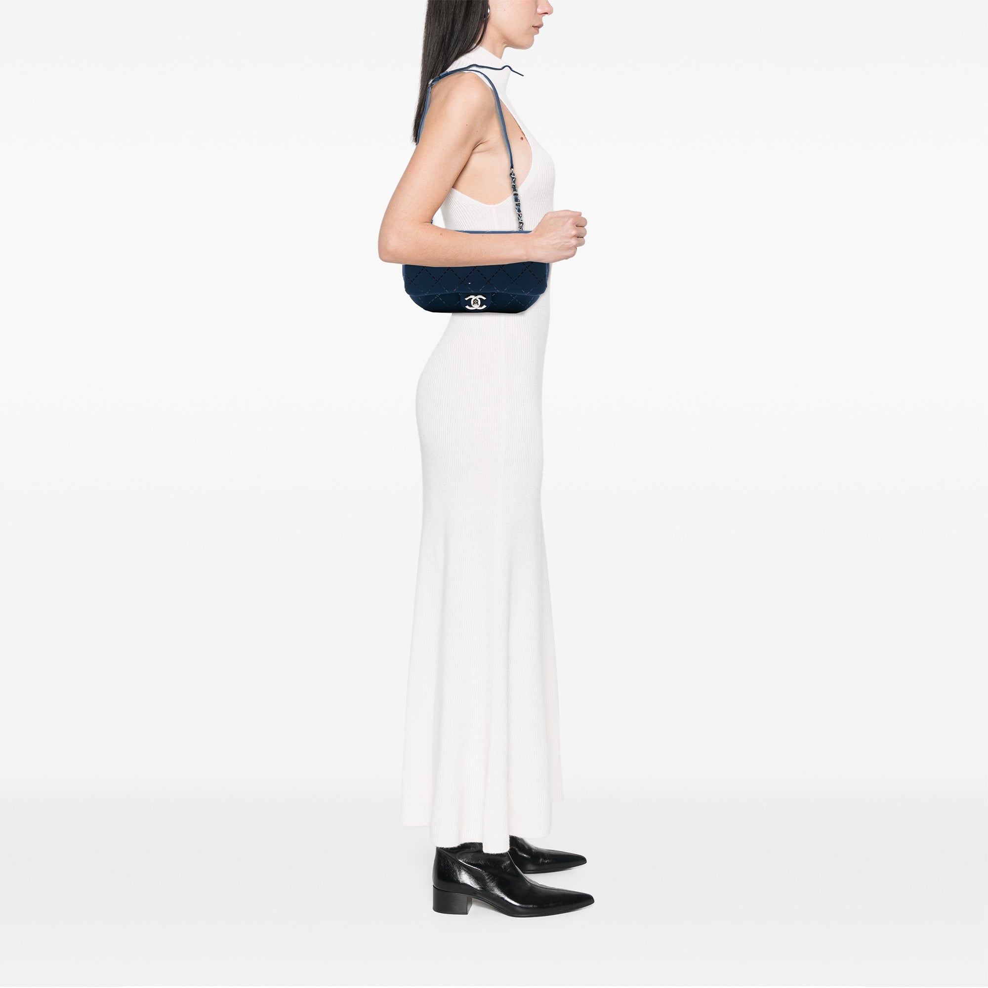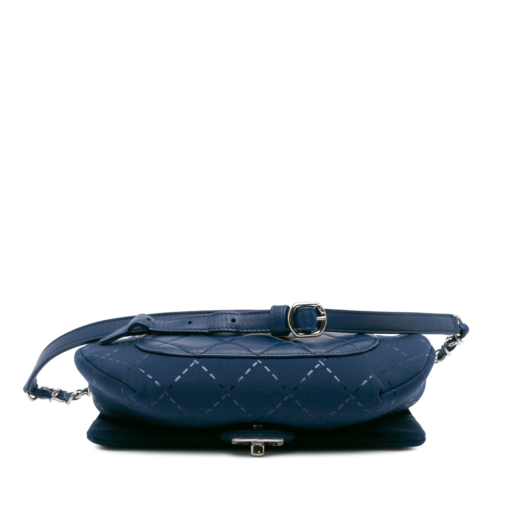 Blue Chanel Classic Jersey Single Flap Shoulder Bag - Designer Revival Blue Chanel Classic Jersey Single Flap Shoulder Bag - Designer Revival