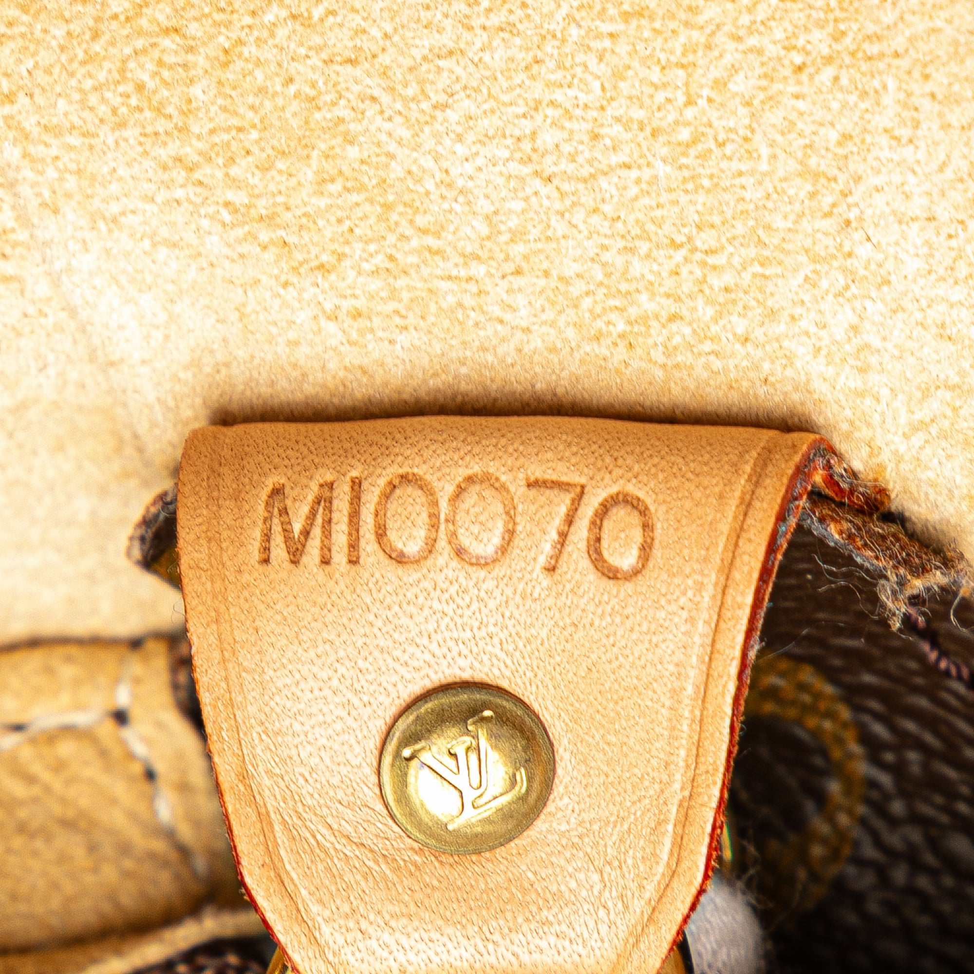 Product Details: Brown Louis Vuitton Monogram Looping GM Shoulder Bag. The Looping GM features a monogram canvas body, a rolled vachetta leather shoulder strap, a top zip closure, and interior zip and slip pockets. 12.2" L x 10.8" W x 4.1" D. Serial number MI0070.