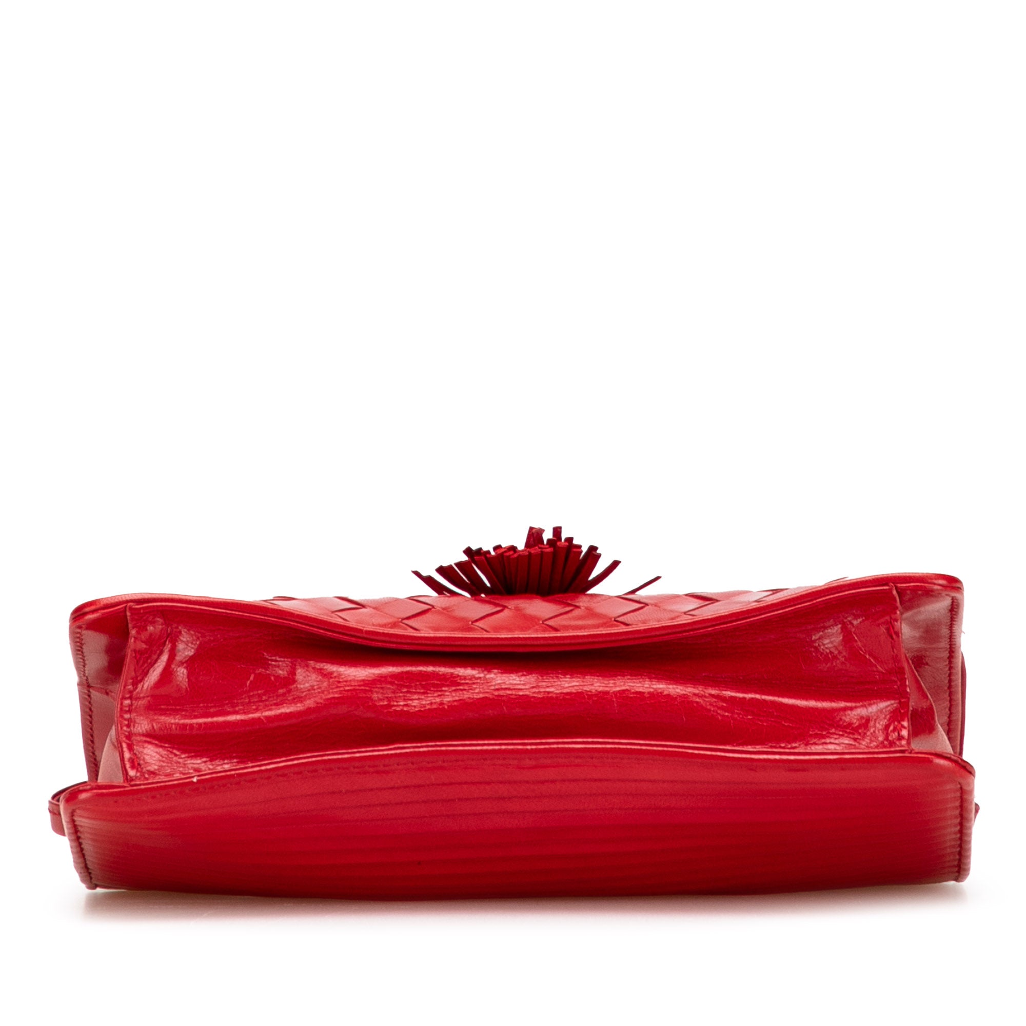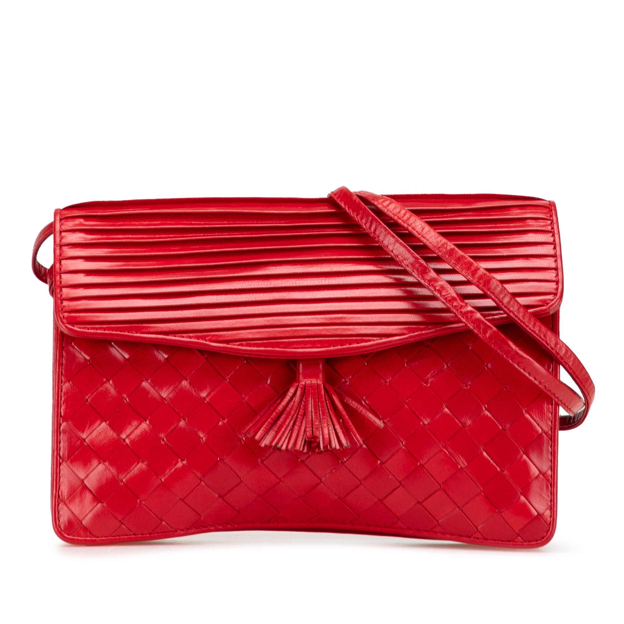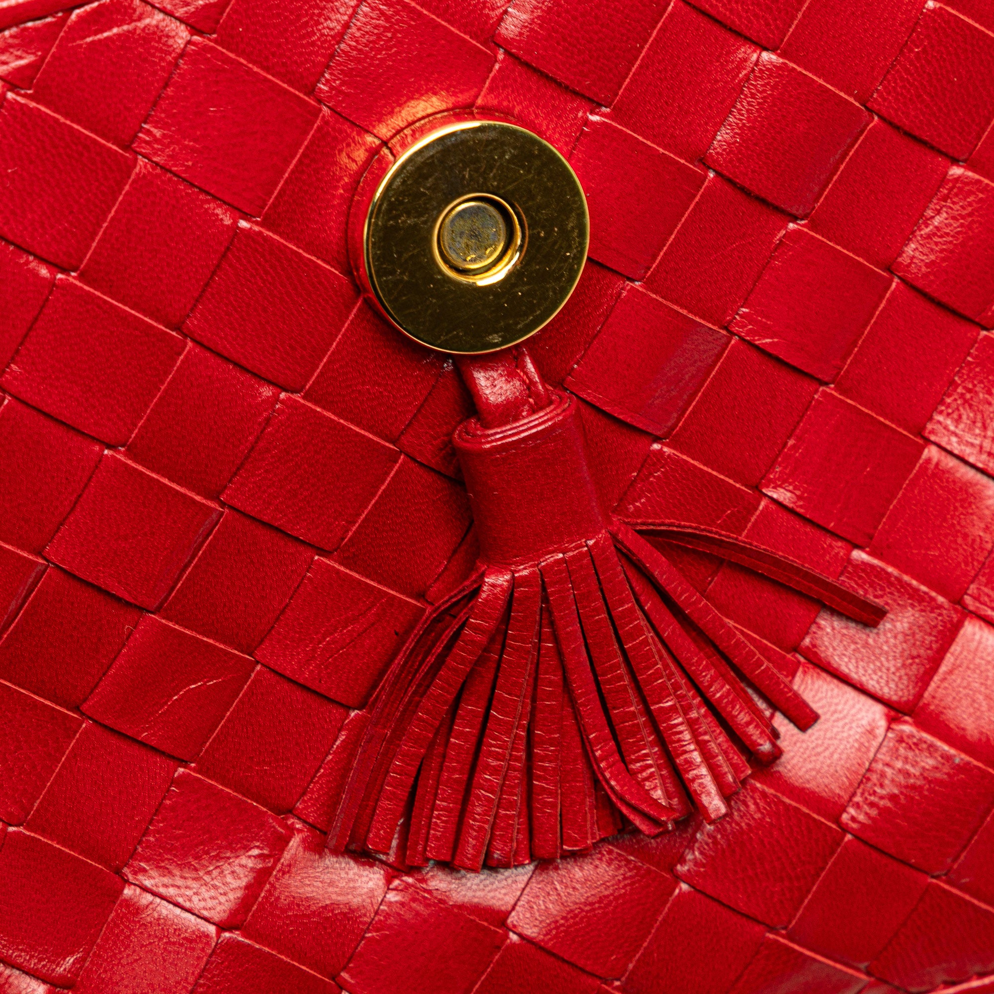 Red Bottega Veneta Nappa Intrecciato Tassel Shoulder Bag