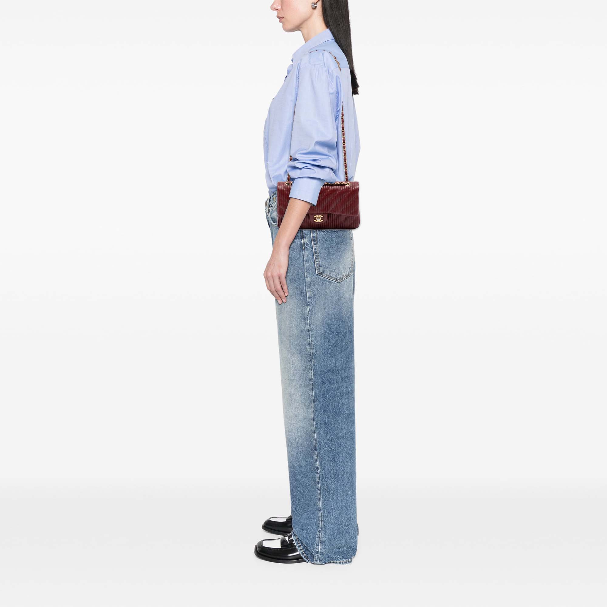 Please note this is a pre-owned item that may display signs of wear consistent with the condition listed above and shown in photos. Designer Revival guarantees this is an authentic Red Chanel Medium Classic Chevron Calfskin Pleated Double Flap Shoulder Bag or 100% of your money back. Learn more about our authentication process.