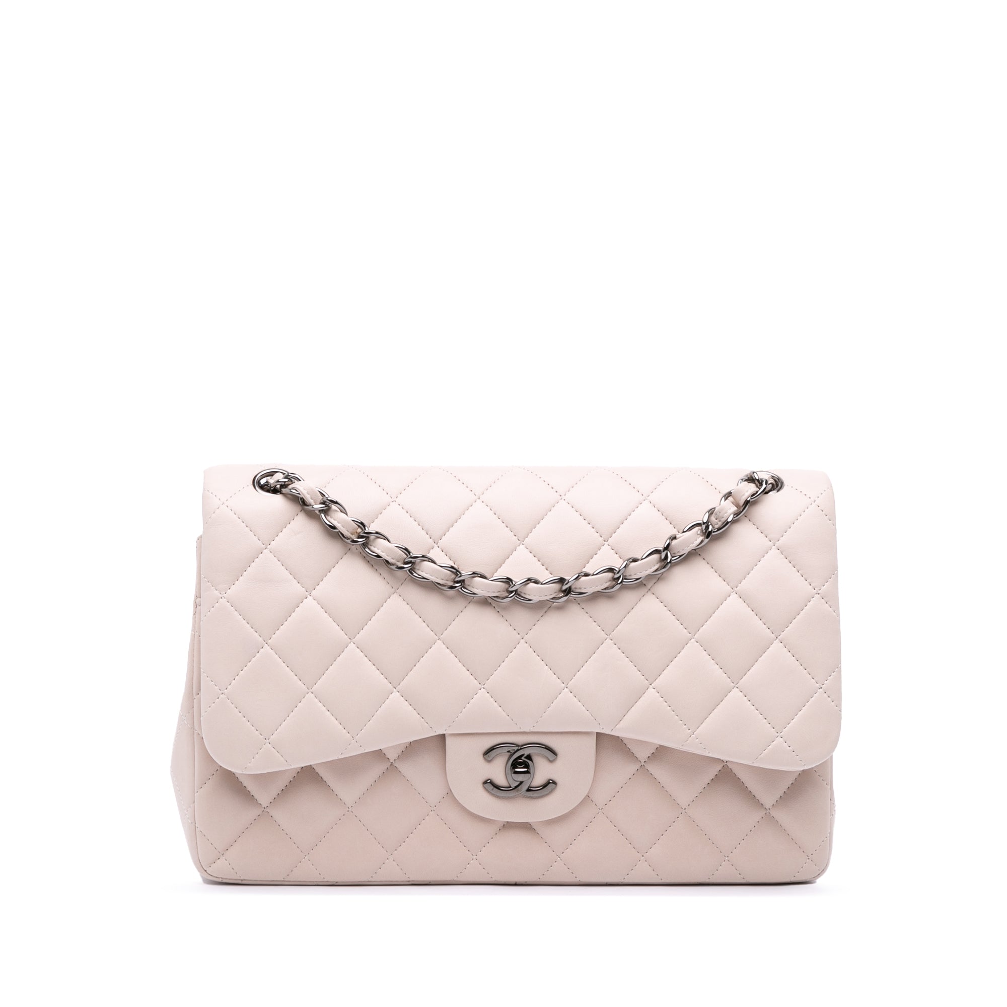 Creme Chanel Jumbo Classic Lambskin Double Flap Shoulder Bag - Designer Revival Creme Chanel Jumbo Classic Lambskin Double Flap Shoulder Bag - Designer Revival
