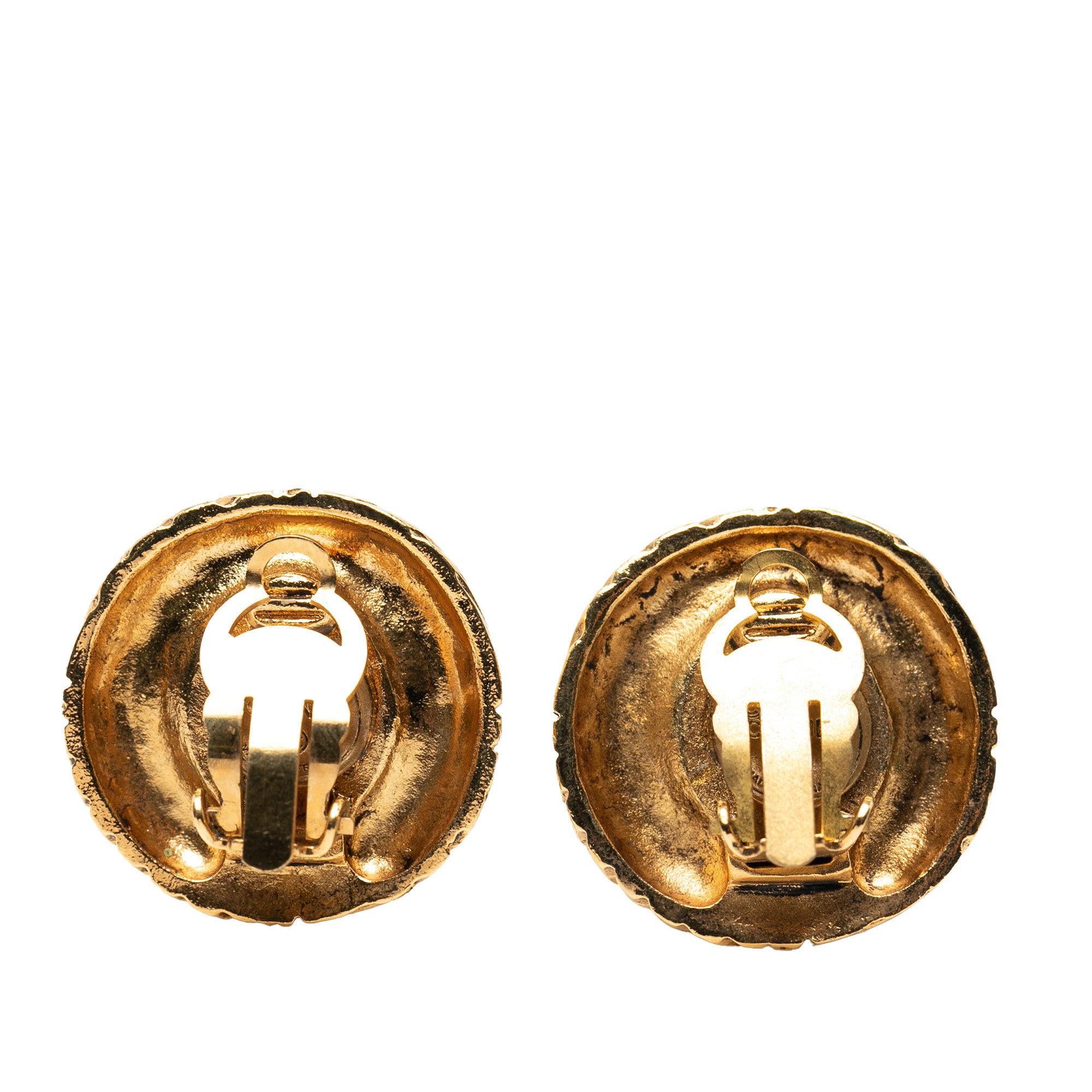 Gold Chanel Gold Plated Rhinestone Round Clip On Earrings