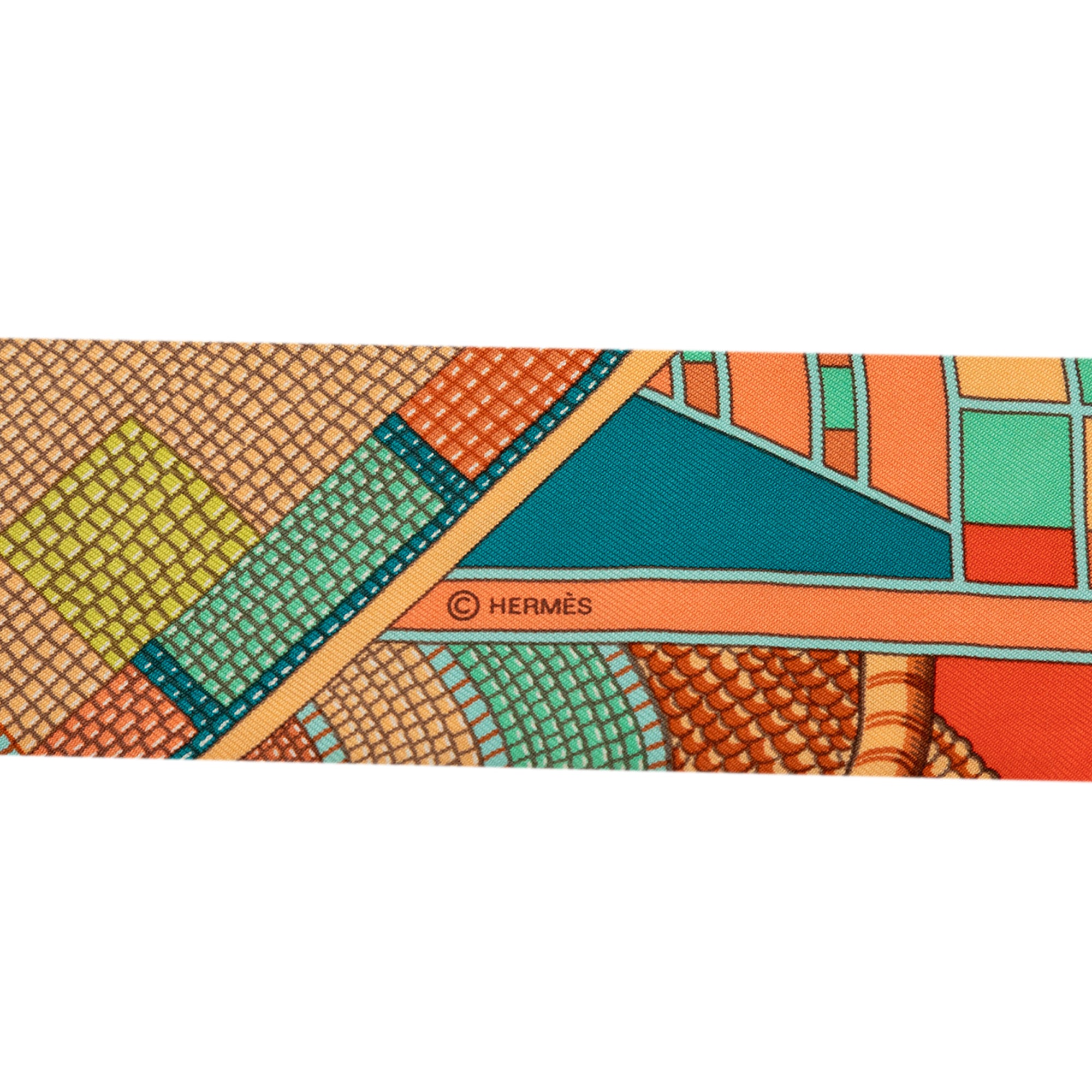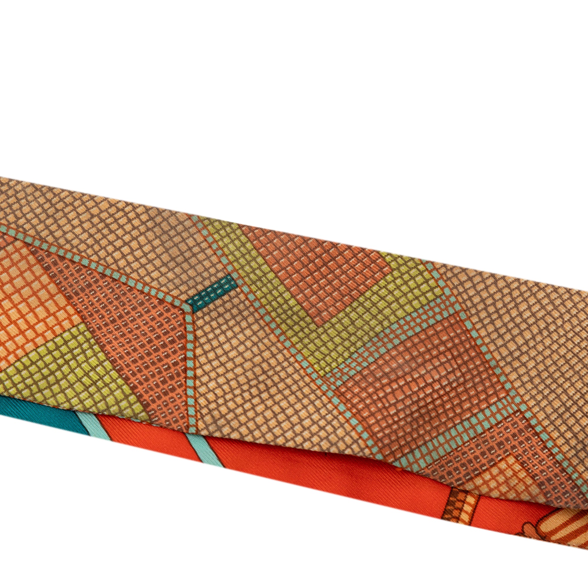 Product Details: Orange Hermès L Art Indien Des Plaines Silk Twilly Scarf Scarves. This twilly scarf features a L Art Indien Des Plaines print in 100% silk. 34.3" L x 2" W x 0" D.