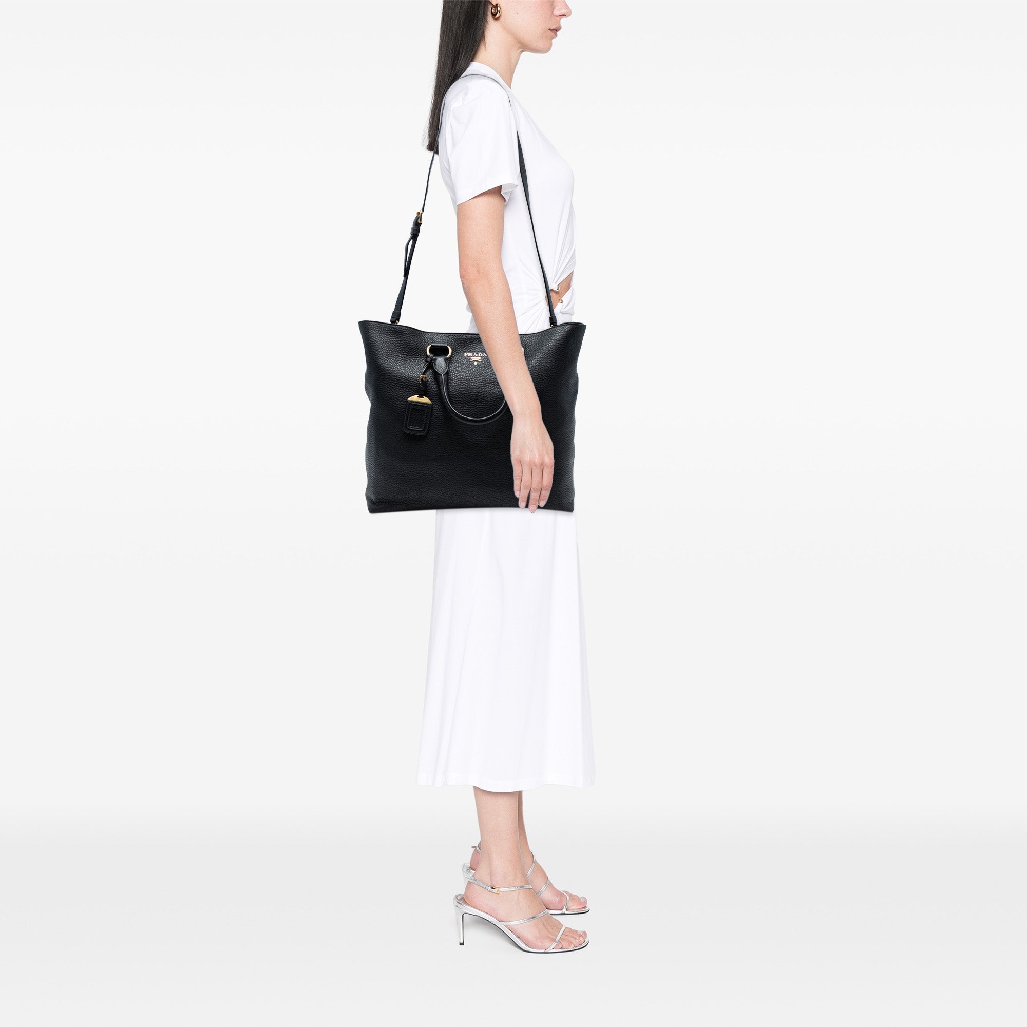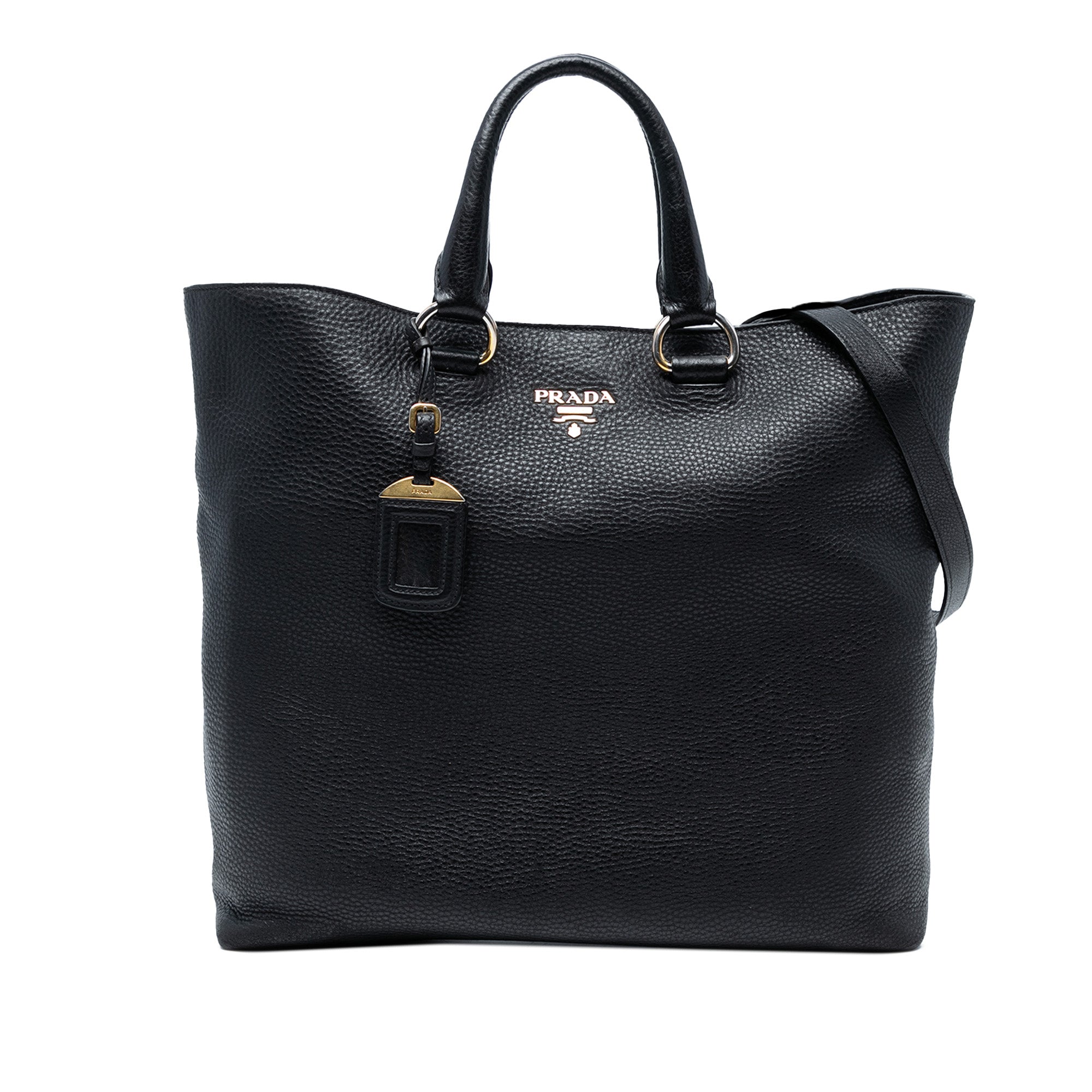 Black Prada Vitello Daino Open Convertible Tote Satchel