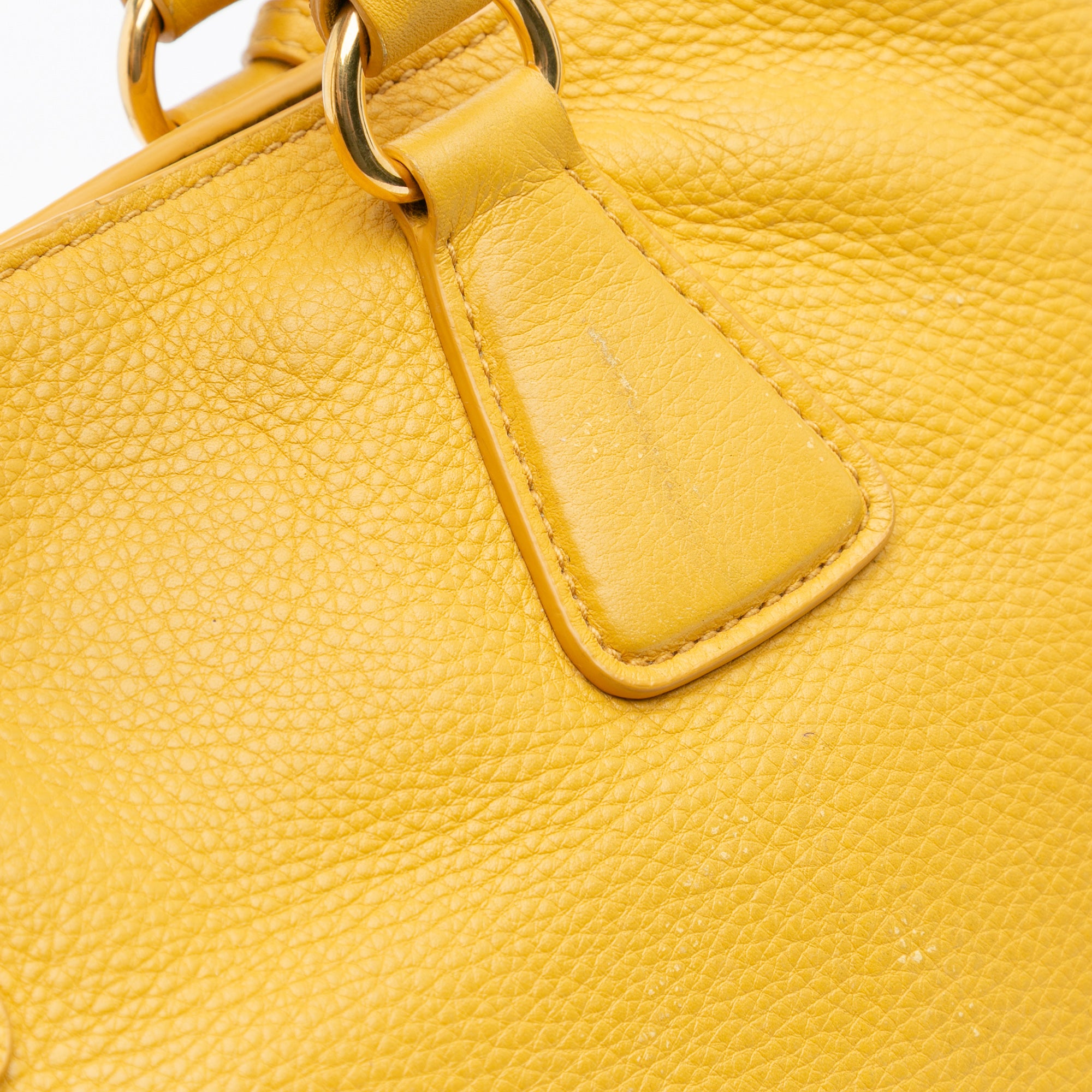 Please note this is a pre-owned item that may display signs of wear consistent with the condition listed above and shown in photos. Designer Revival guarantees this is an authentic Yellow Prada Vitello Daino Side Zip Open Convertible Tote Satchel or 100% of your money back. Learn more about our authentication process.