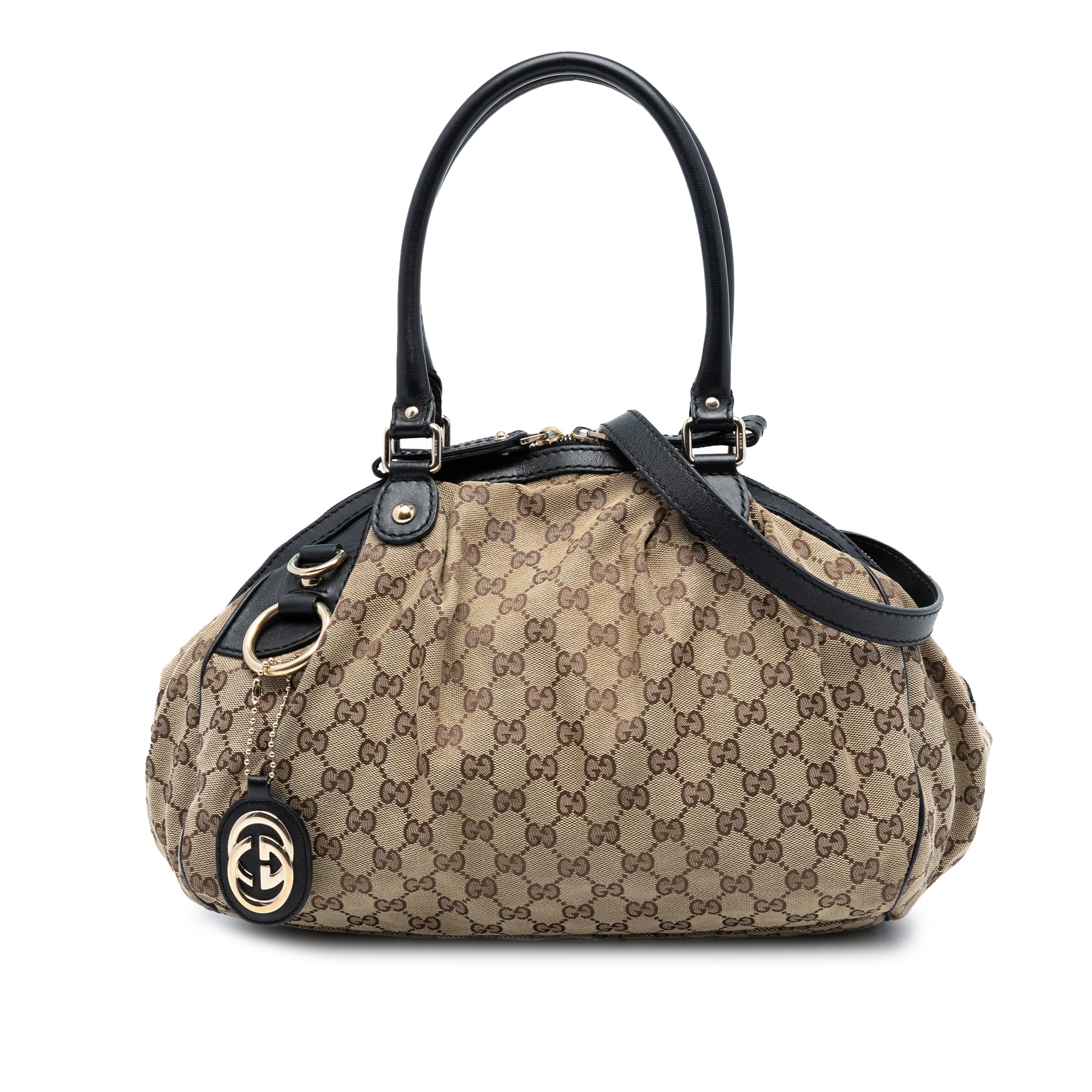Please note this is a pre-owned item that may display signs of wear consistent with the condition listed above and shown in photos. Designer Revival guarantees this is an authentic Brown Gucci GG Canvas Sukey Satchel or 100% of your money back. Learn more about our authentication process.