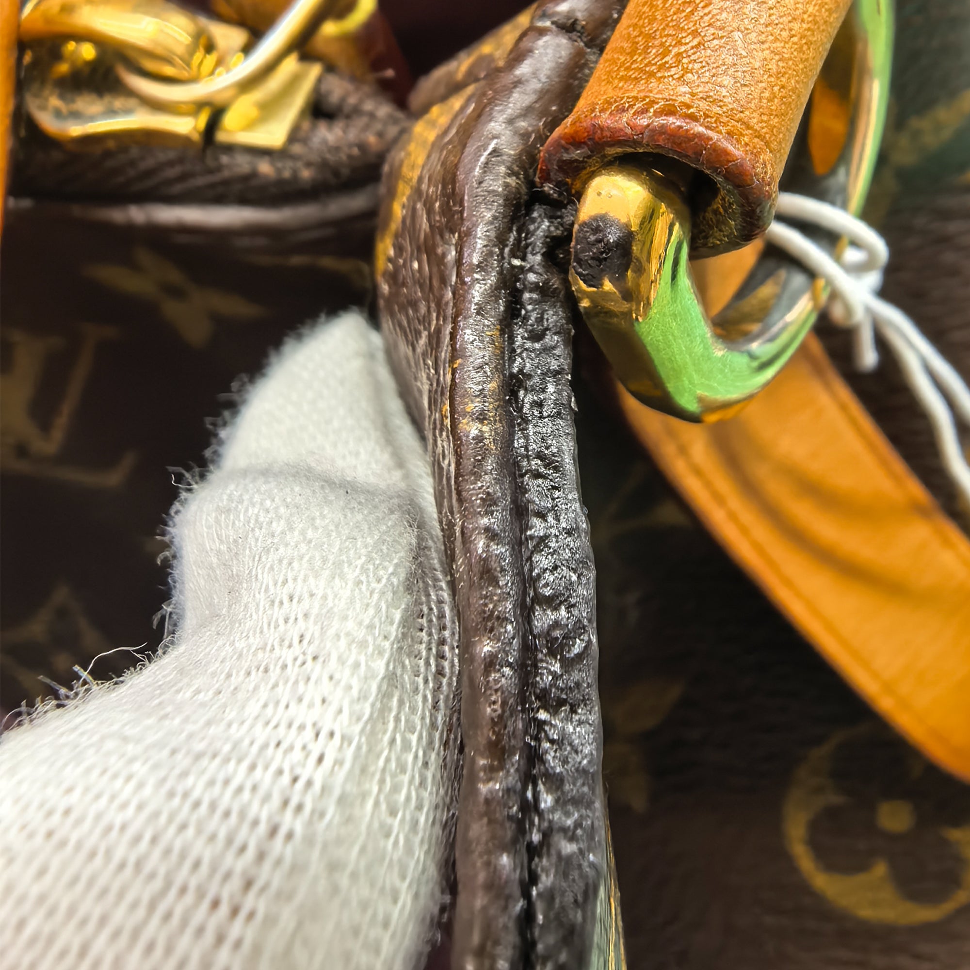 Condition: Pre-owned. Used. Exterior Bottom stained with Other. Lock Scratched. Exterior Corners Worn. Exterior Front Out Of Shape, Repainted. Exterior Handle Split, Sticky, Worn. Interior Lining Worn. Practical Attachment Scratched. Exterior Top Sticky. Zipper Scratched.