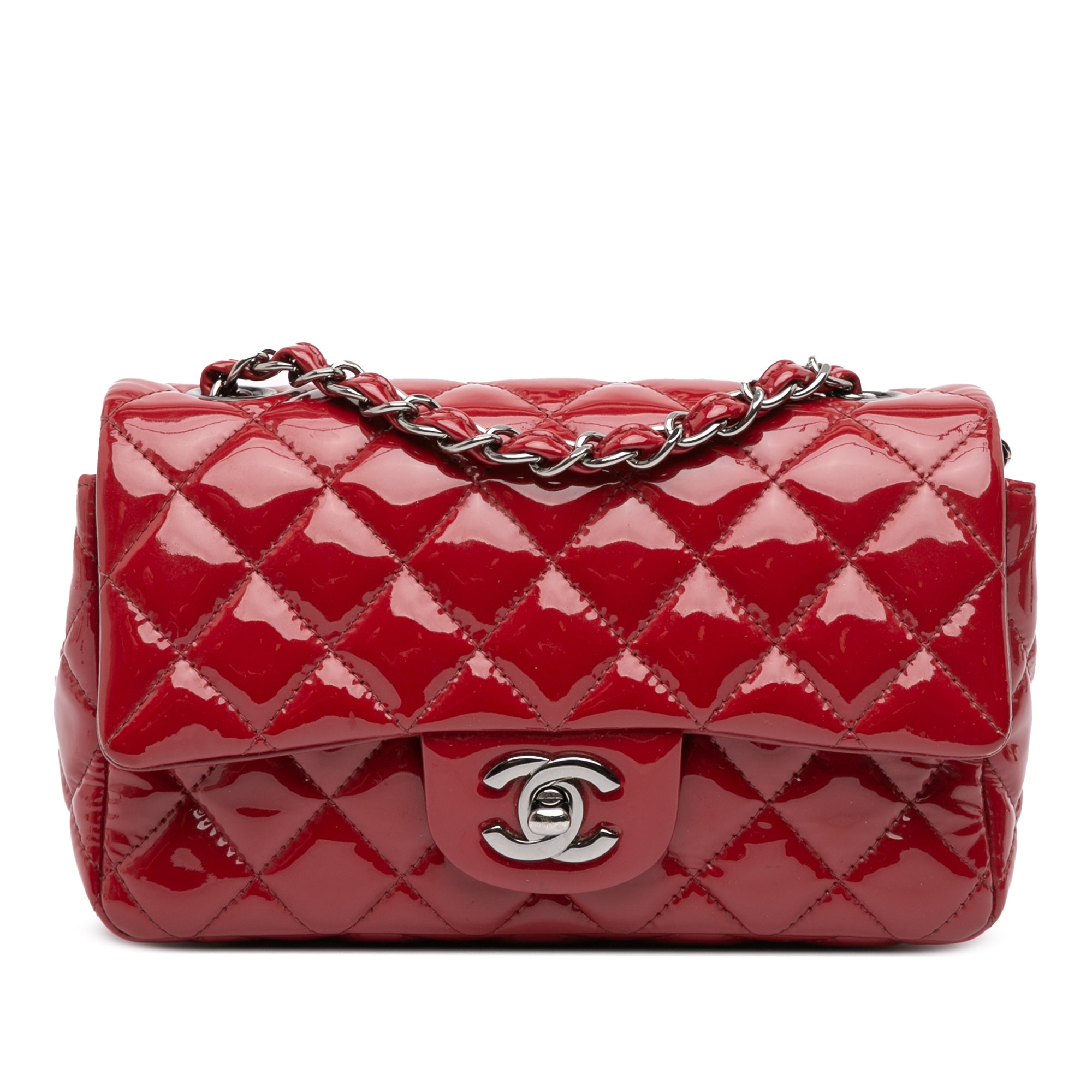 Red Chanel Mini Rectangular Classic Patent Single Flap Crossbody Bag