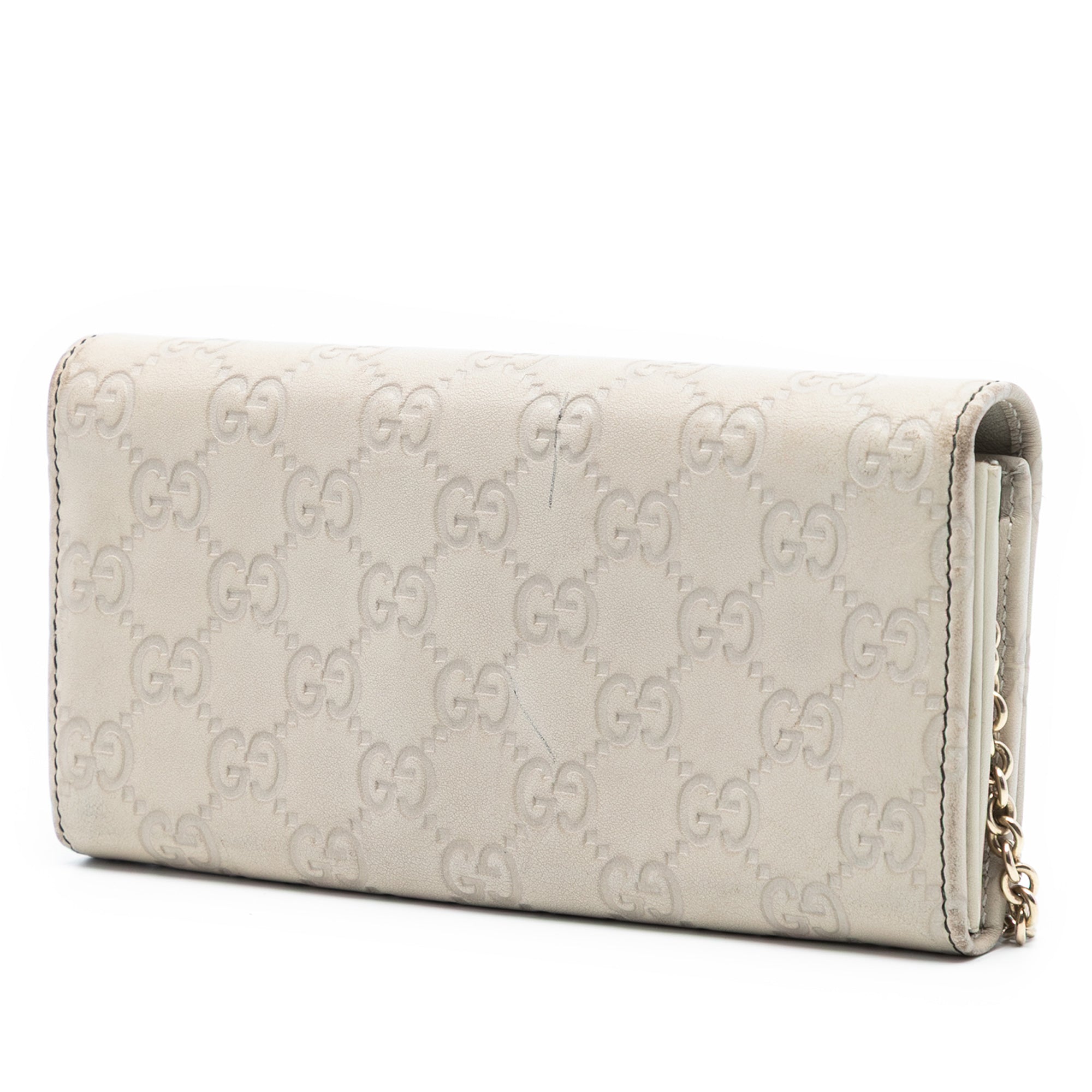 Please note this is a pre-owned item that may display signs of wear consistent with the condition listed above and shown in photos. Designer Revival guarantees this is an authentic Gray Gucci Guccissima Emily Wallet On Chain Shoulder Bag or 100% of your money back. Learn more about our authentication process.