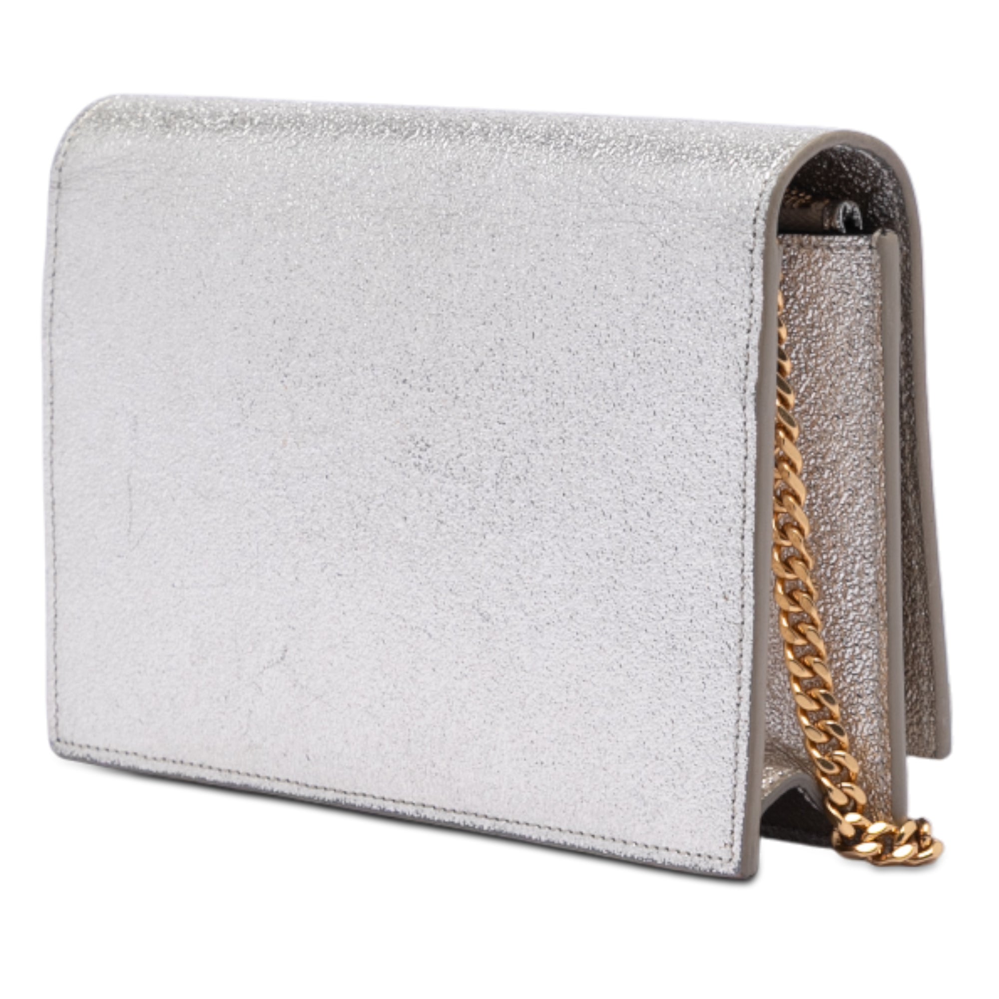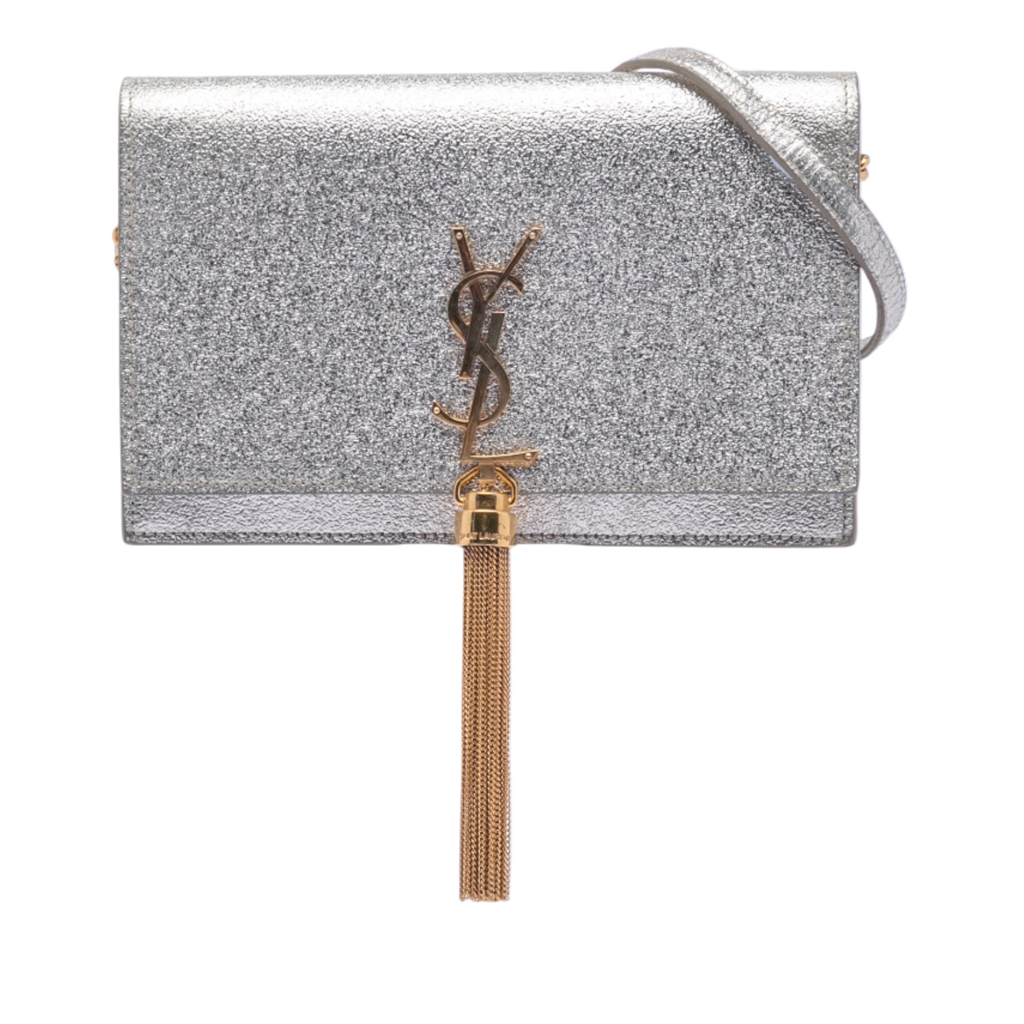 Silver Saint Laurent Metallic Calfskin Monogram Kate Tassel Wallet on Chain Crossbody Bag