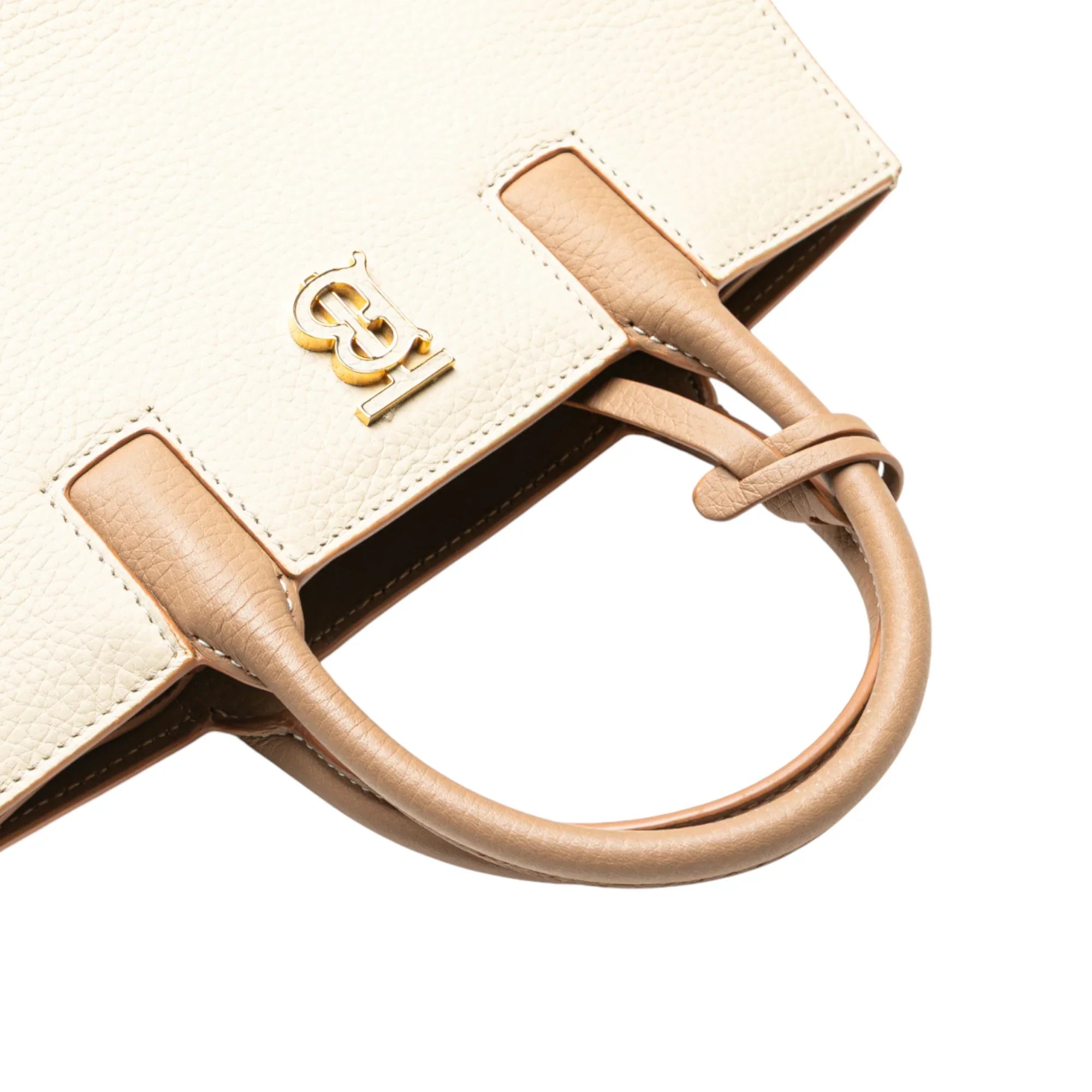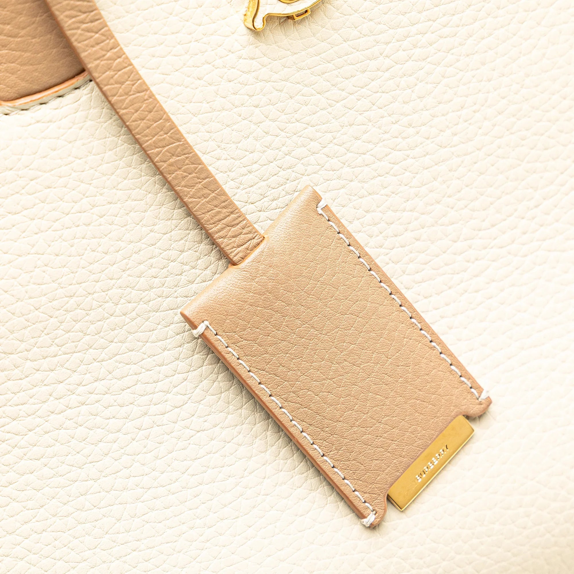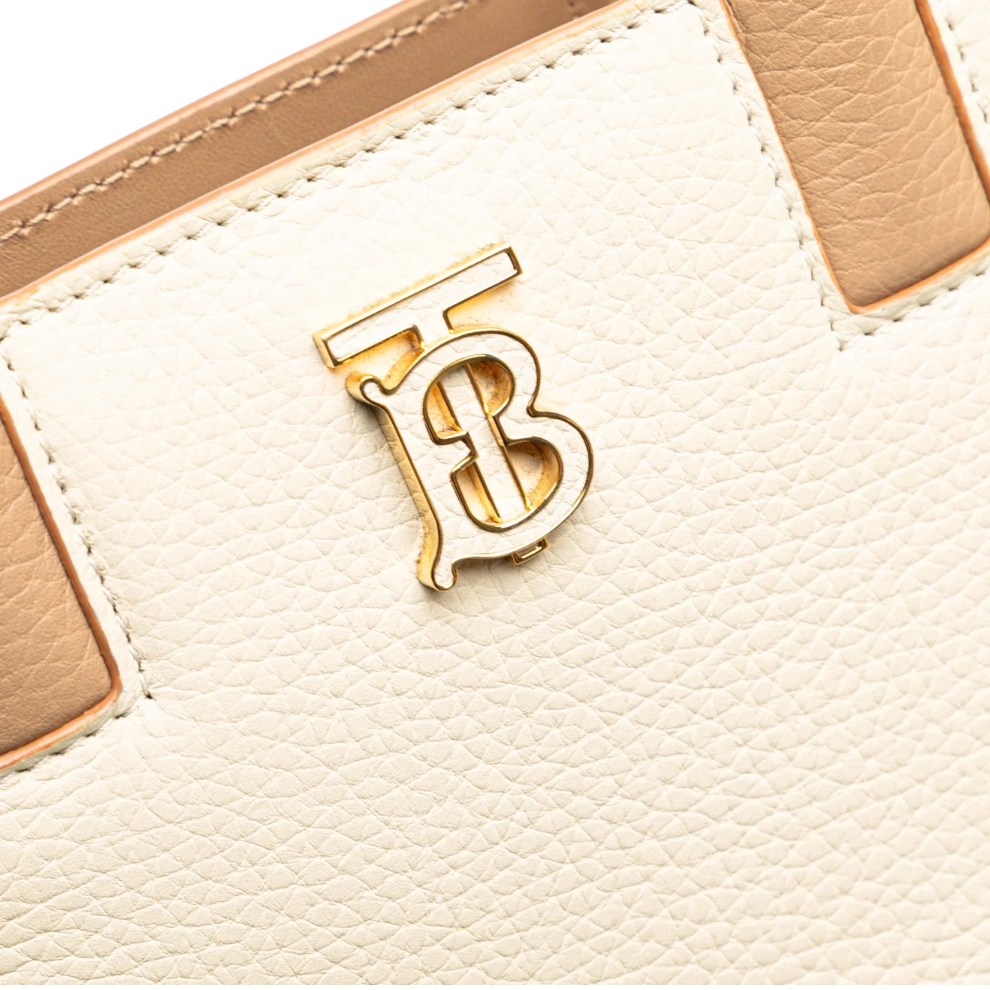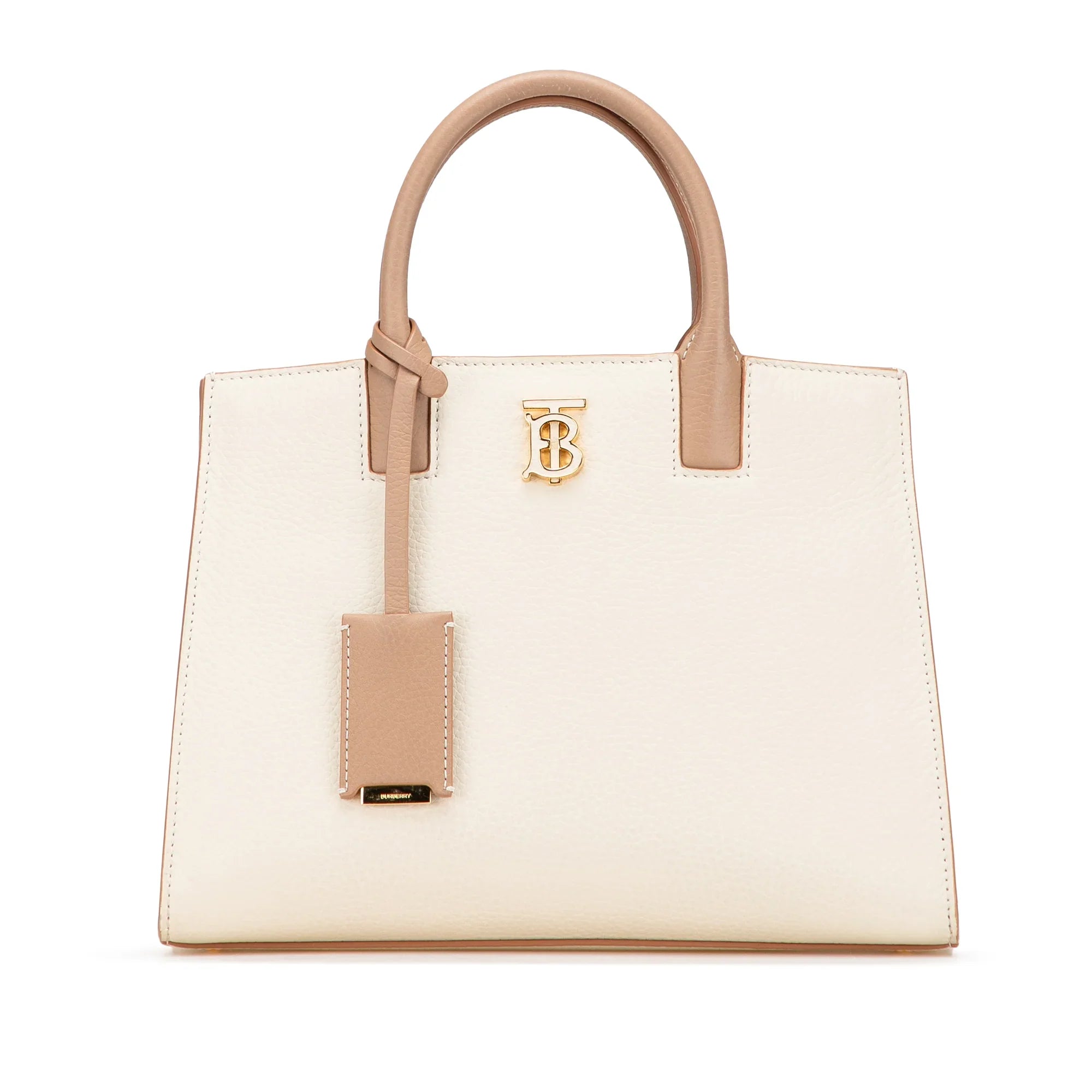 Beige Burberry Mini Bicolor Leather Frances Tote Satchel