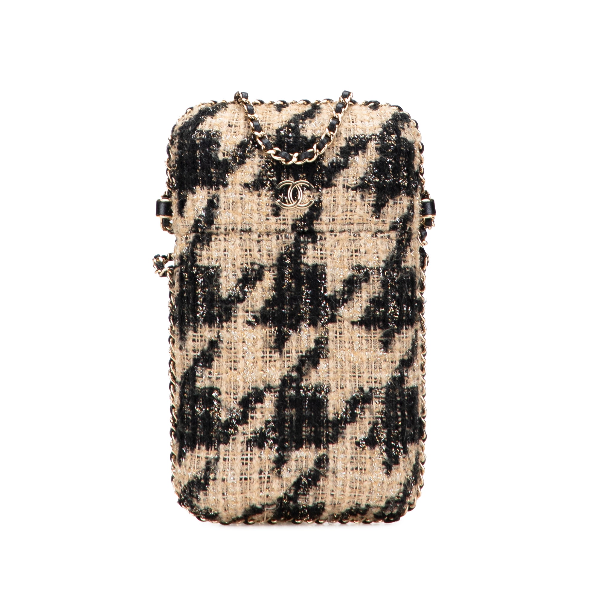 Beige Chanel Tweed Chain Around Phone Holder Crossbody Bag