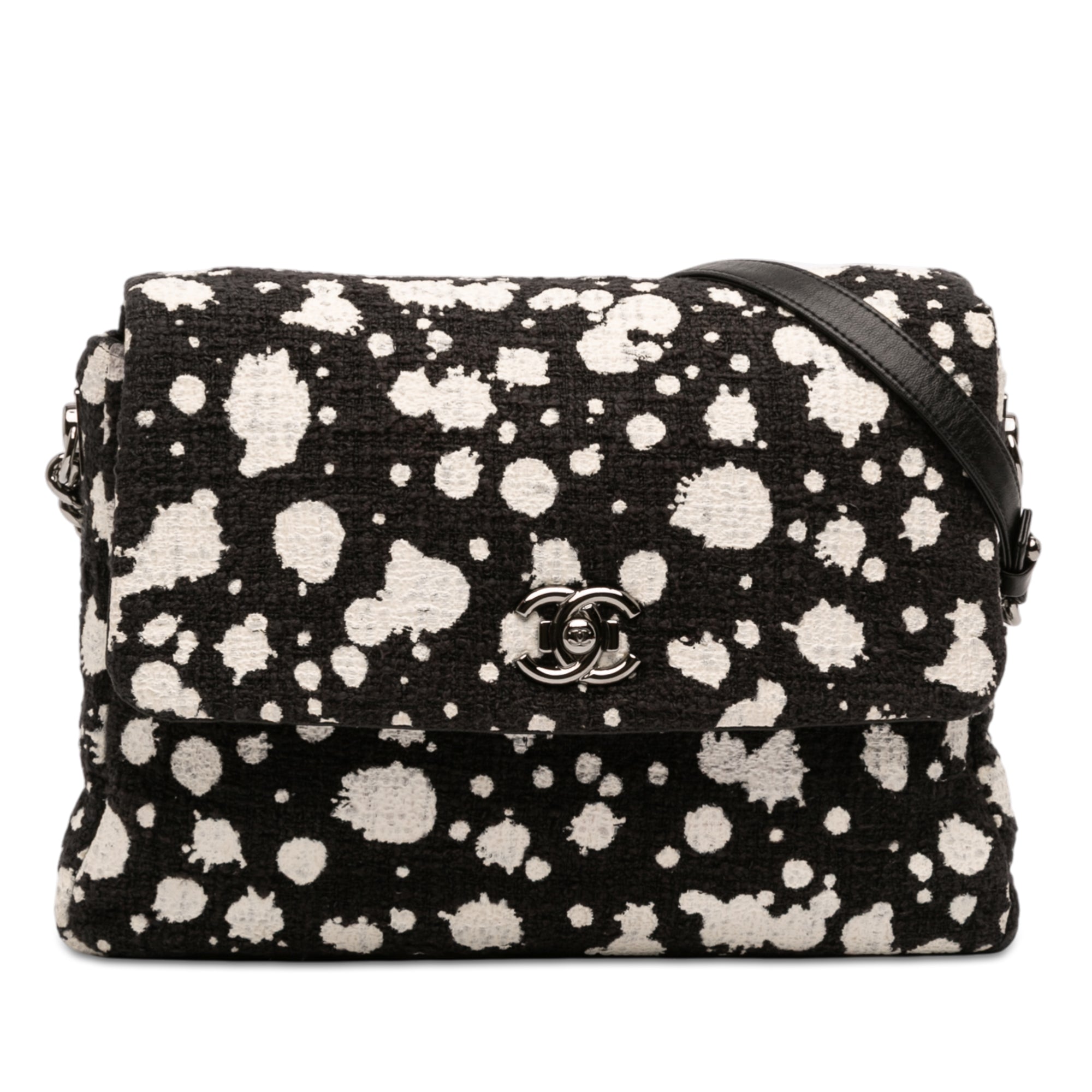 Black Chanel CC Tweed Paint Splatter Flap Crossbody Bag