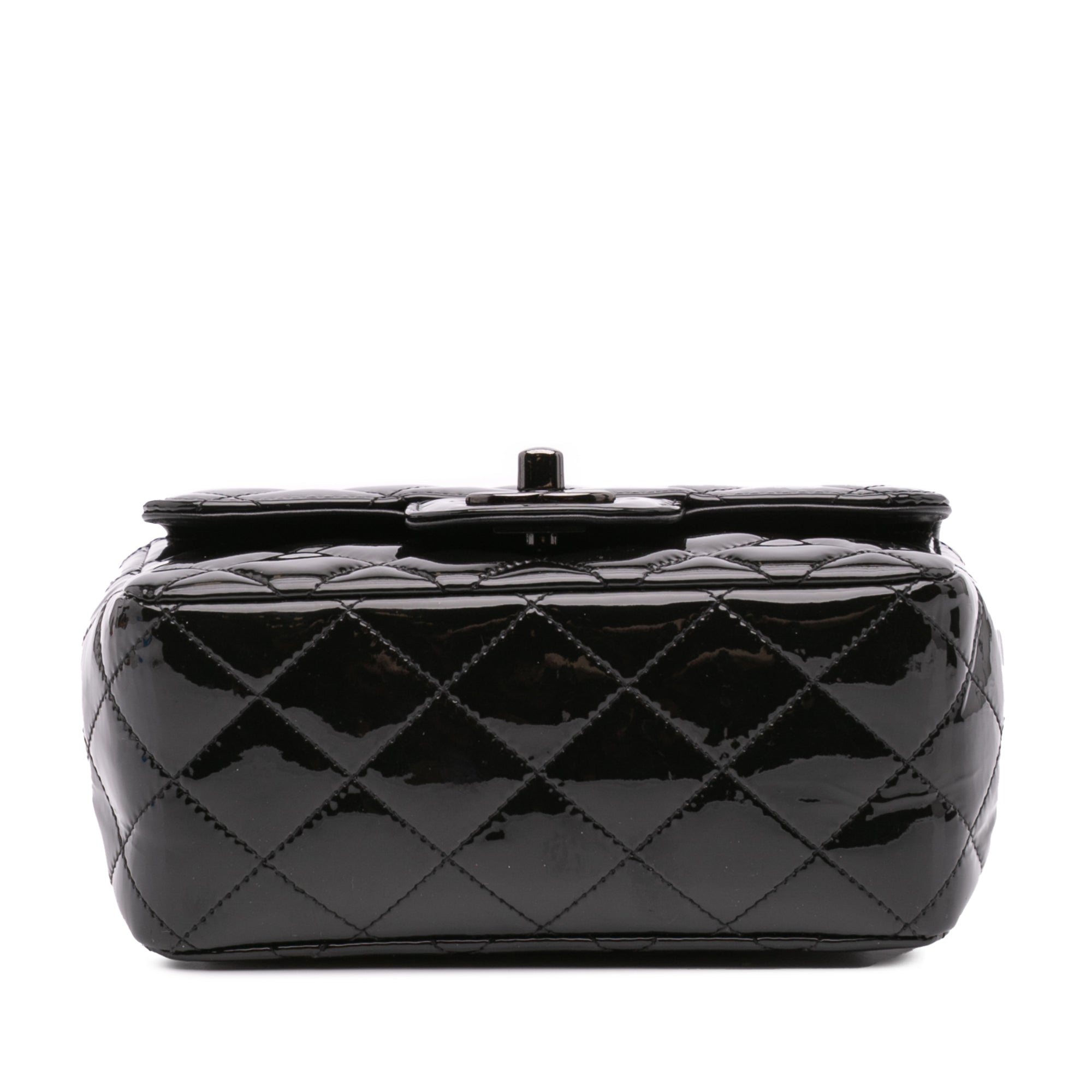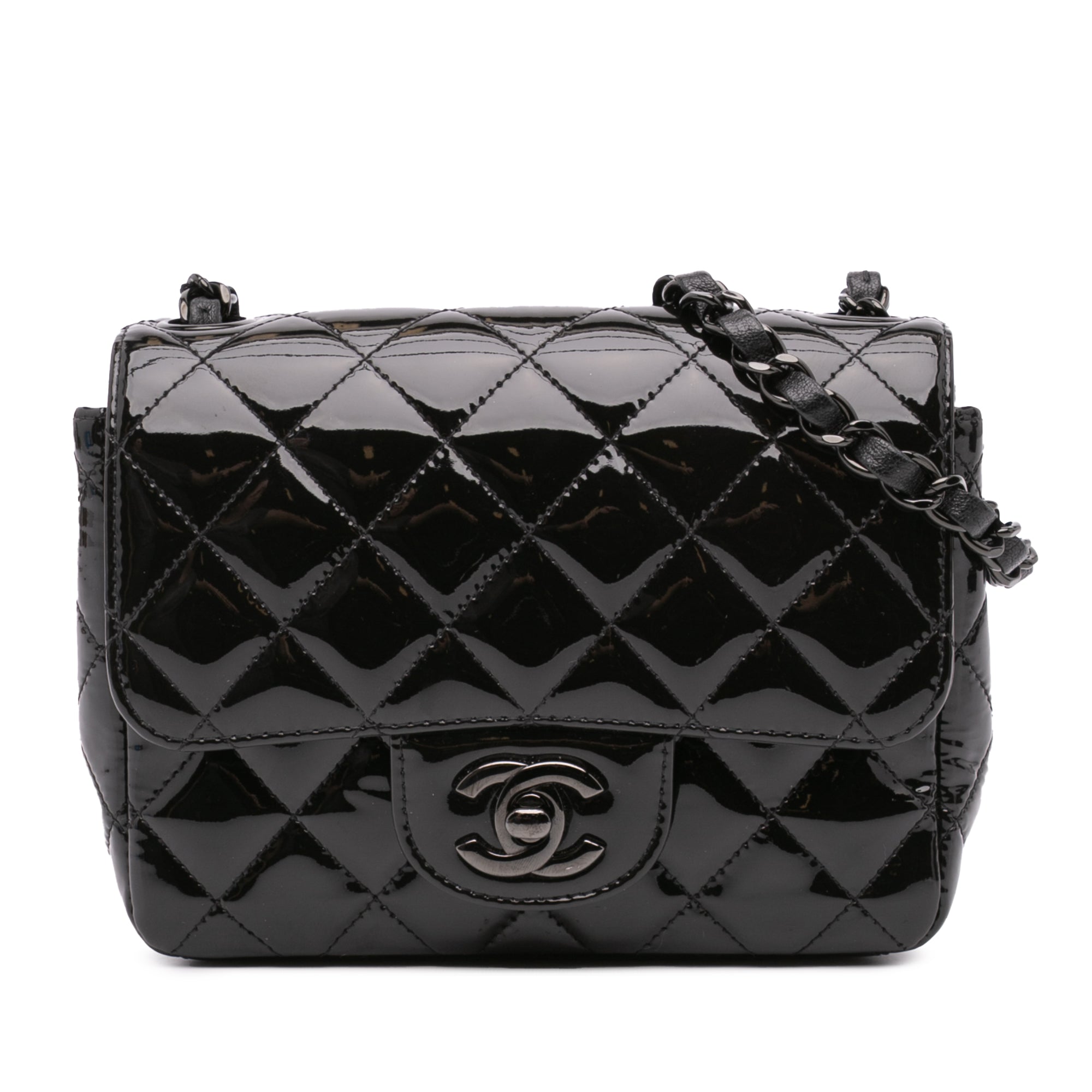 Black Chanel Mini Square Classic Patent So Black Single Flap Crossbody Bag - Designer Revival Black Chanel Mini Square Classic Patent So Black Single Flap Crossbody Bag - Designer Revival