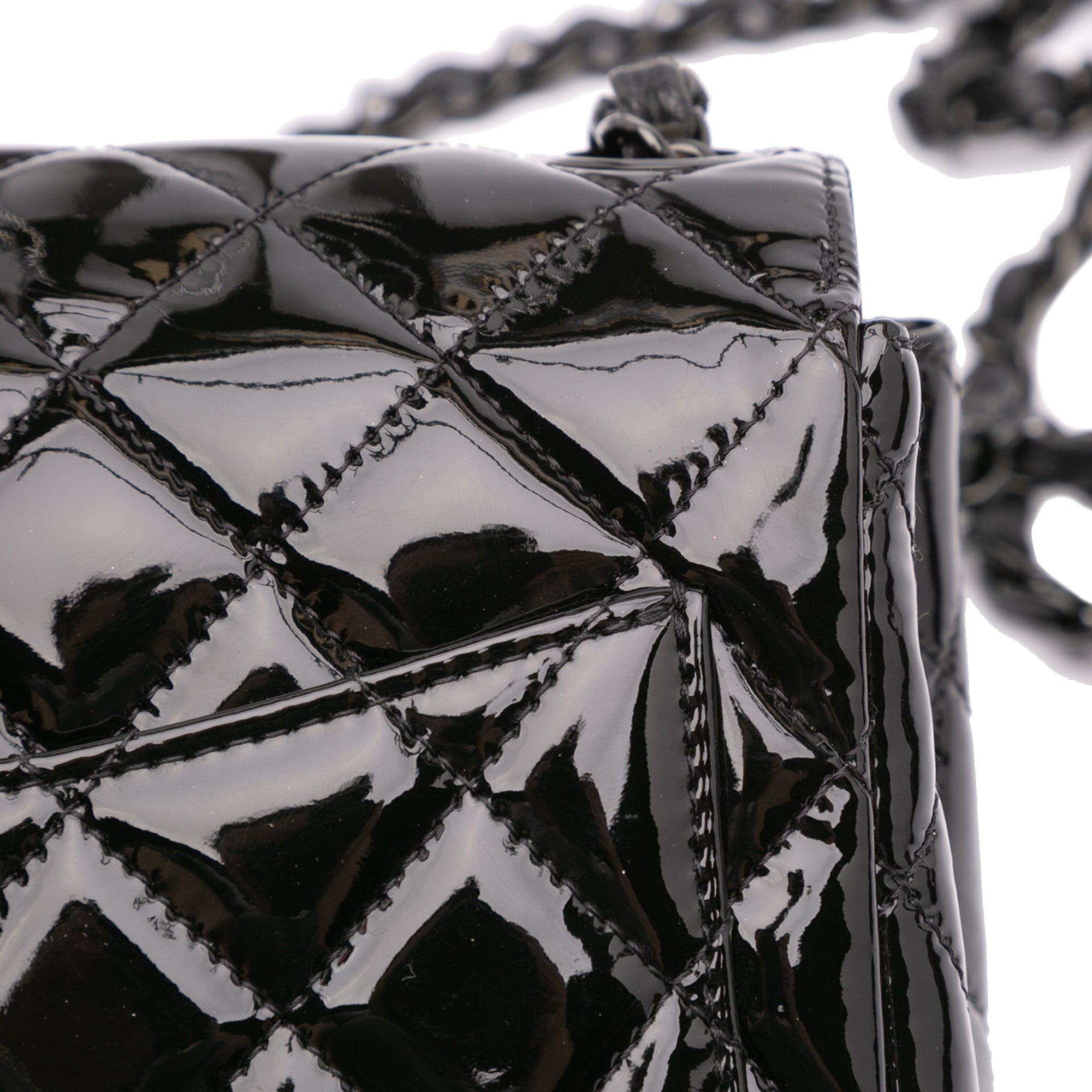 Black Chanel Mini Square Classic Patent So Black Single Flap Crossbody Bag