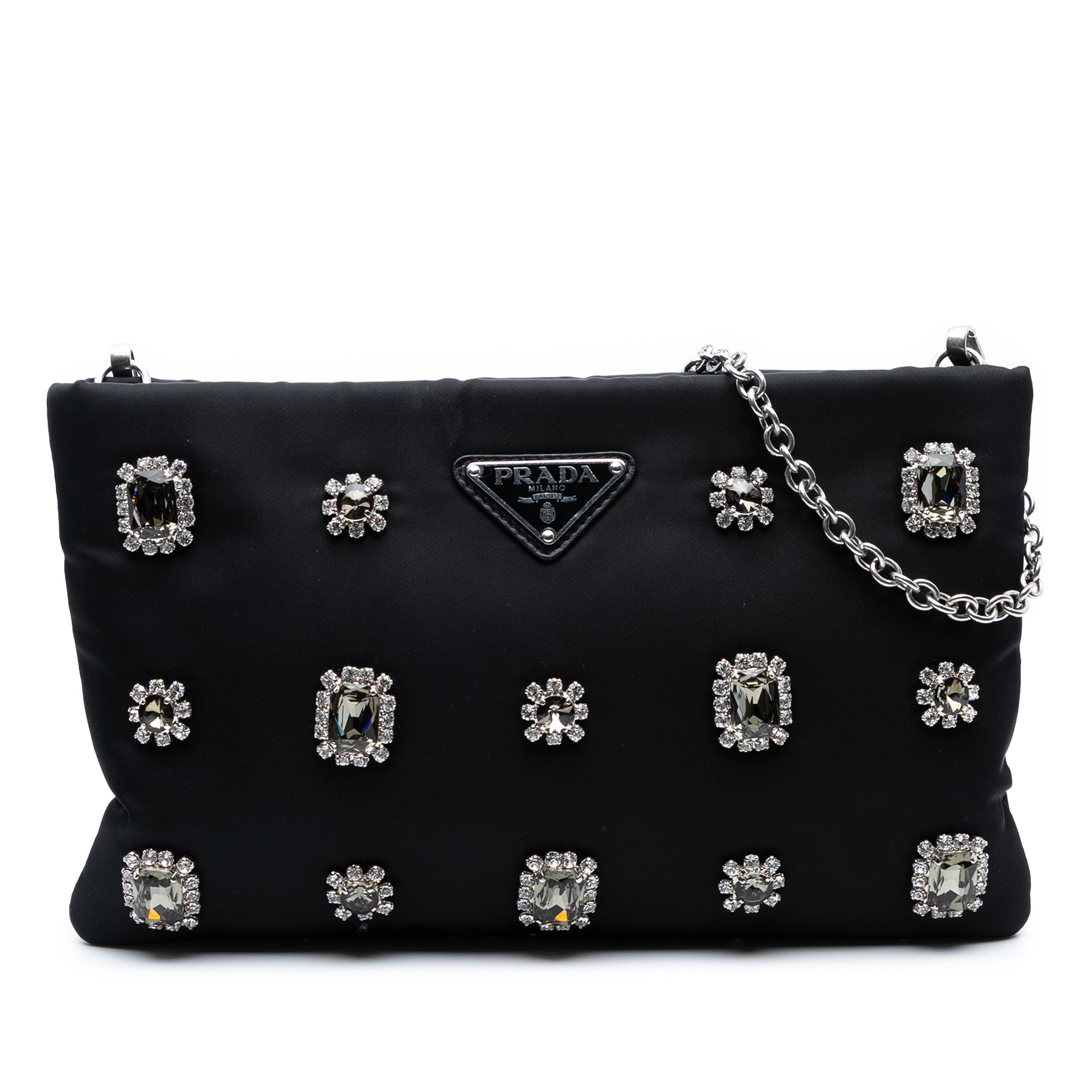 Black Prada Tessuto Catene Crystal Embellished Chain Crossbody