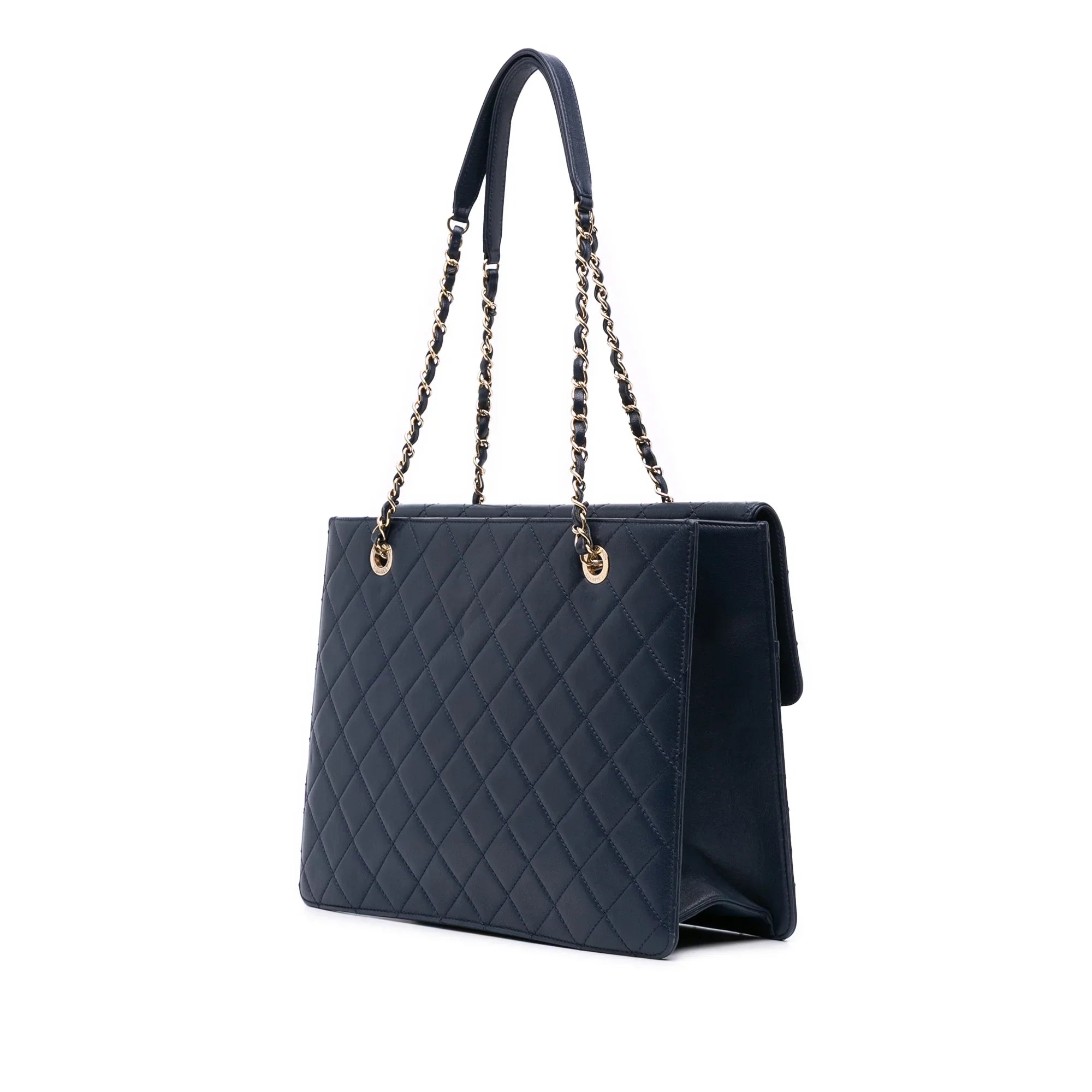 Blue Chanel Quilted Sheepskin Beauty Lock Shopping Tote