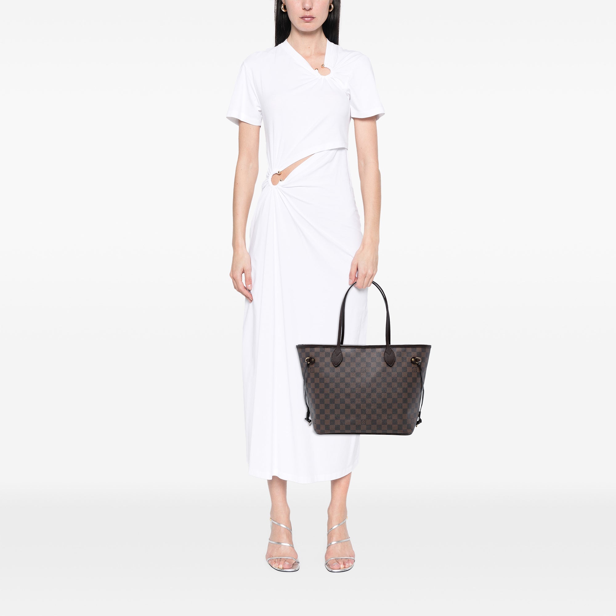 Please note this is a pre-owned item that may display signs of wear consistent with the condition listed above and shown in photos. Designer Revival guarantees this is an authentic Brown Louis Vuitton Damier Ebene Neverfull MM Tote Bag or 100% of your money back. Learn more about our authentication process.
