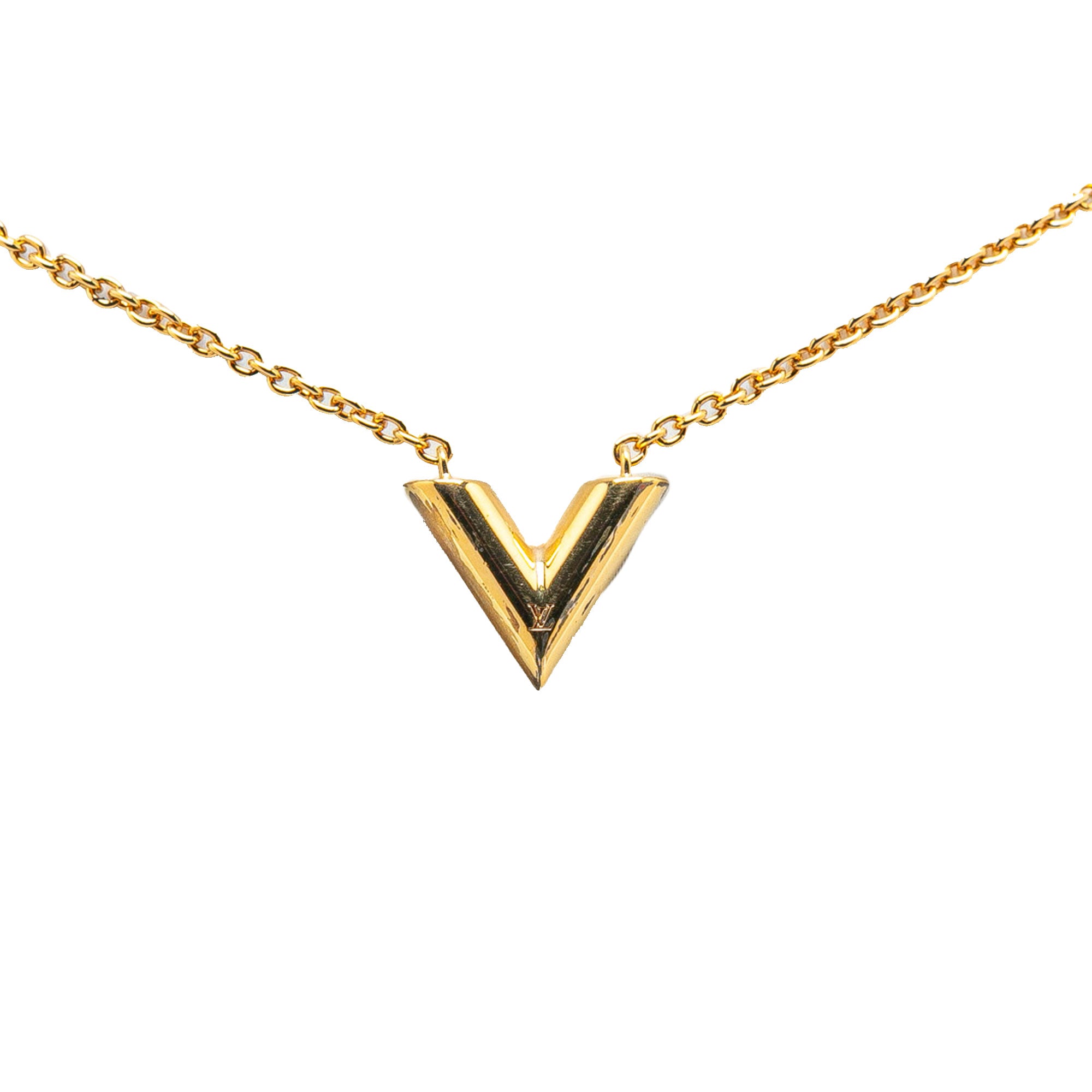 Gold Louis Vuitton Gold Plated Essential V Necklace - Designer Revival Gold Louis Vuitton Gold Plated Essential V Necklace - Designer Revival
