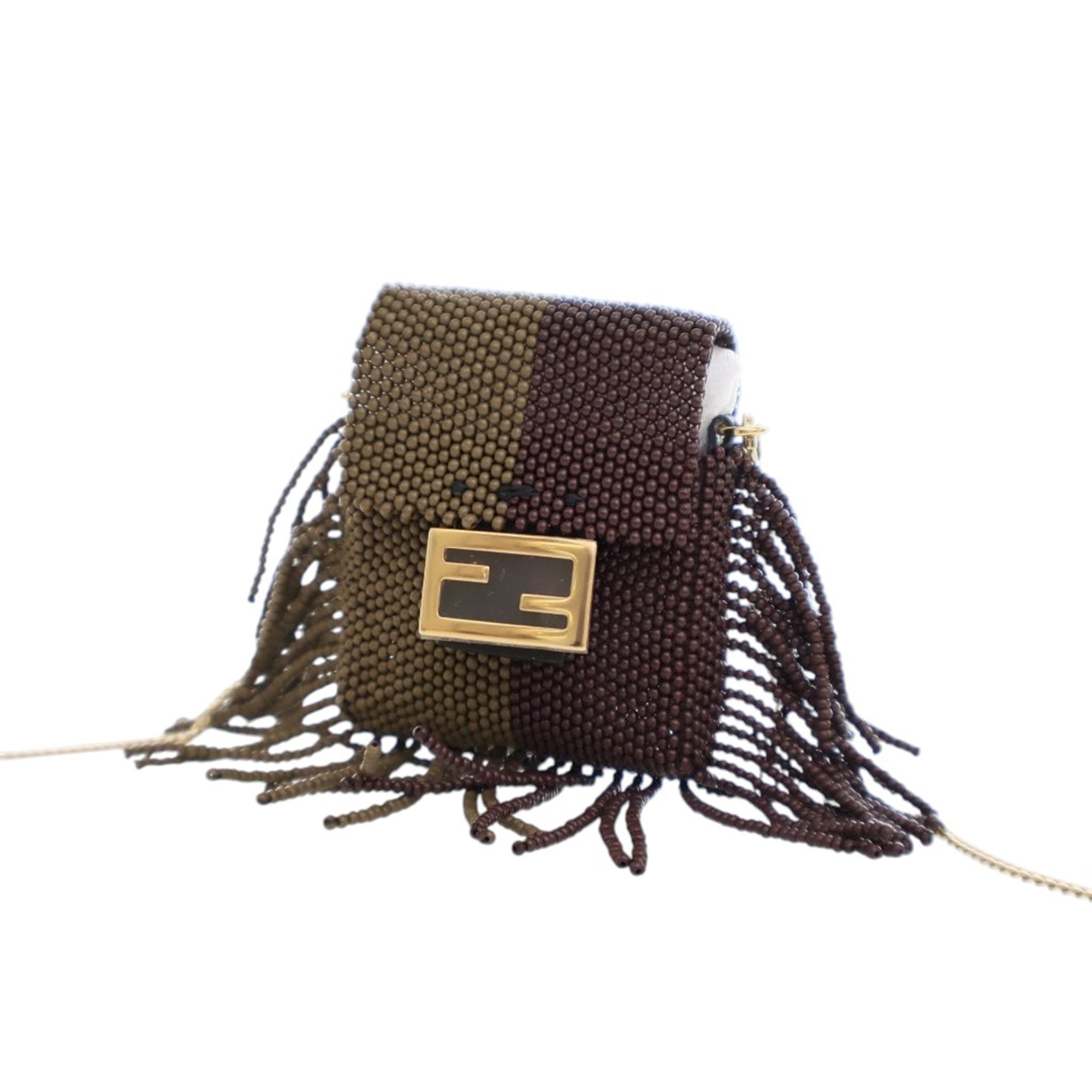 Green Fendi Beaded Pequin Pico Baguette Charm Crossbody